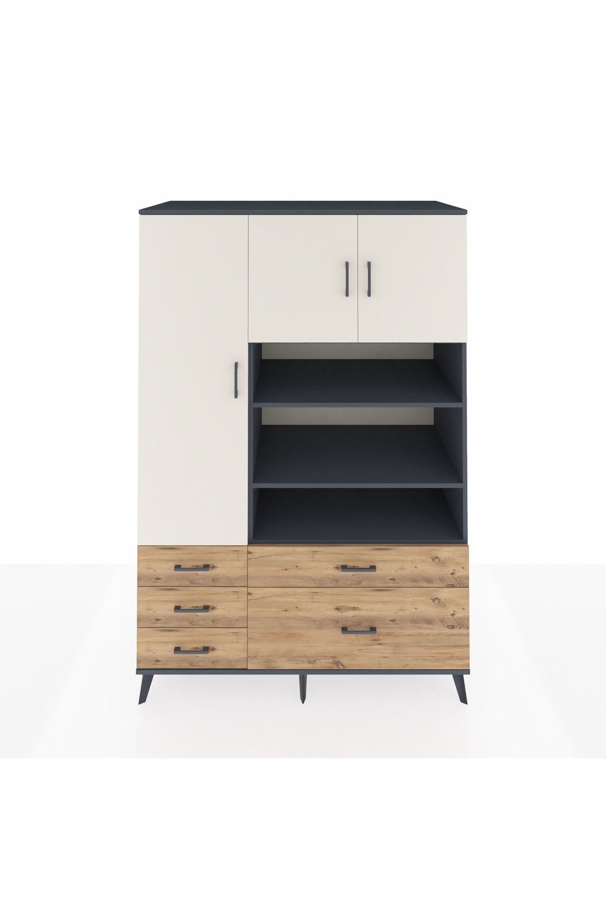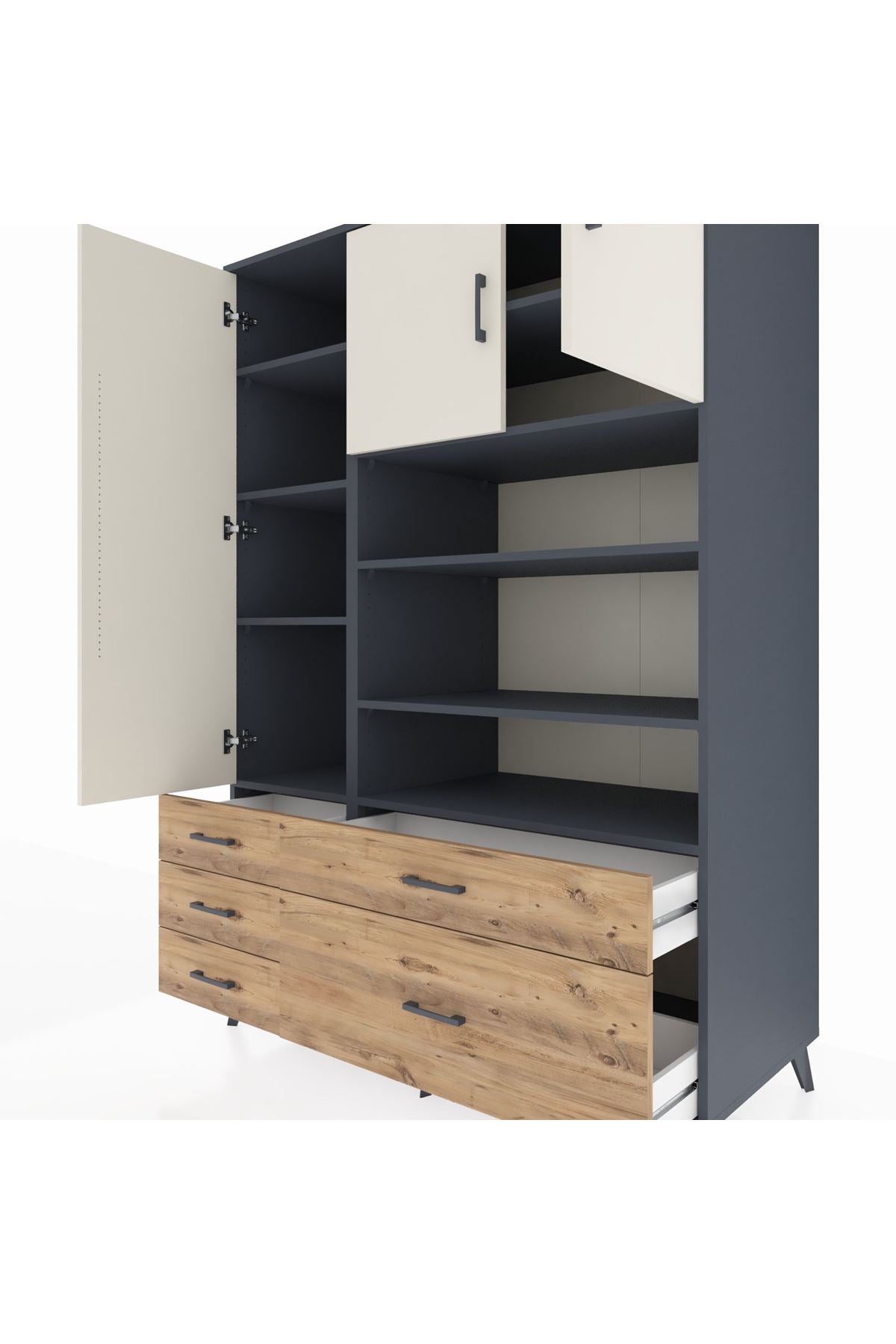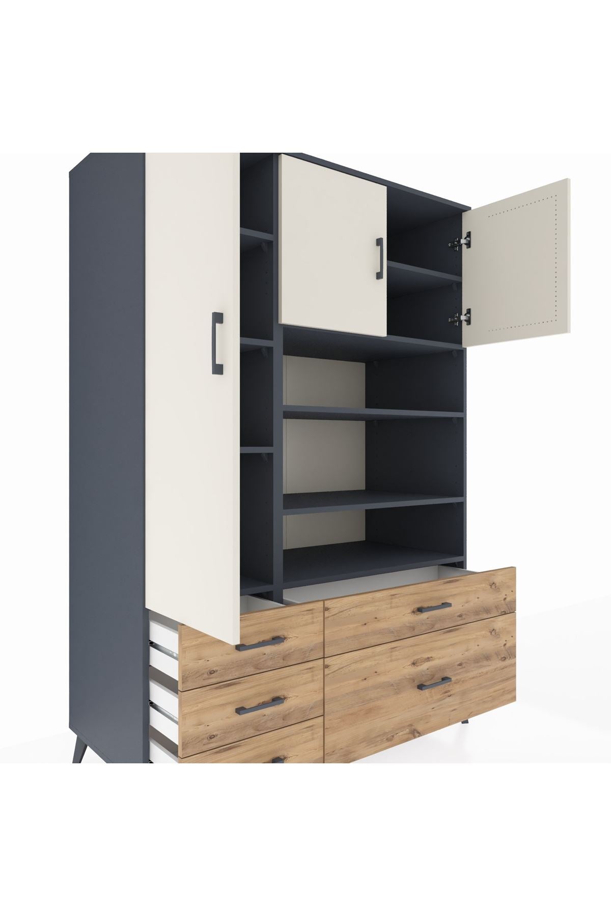 Kronos Dolap 9 Raflı 5 Çekmeceli 3 Kapaklı 132x59x195 Antrasit-Aytaşı/Çam