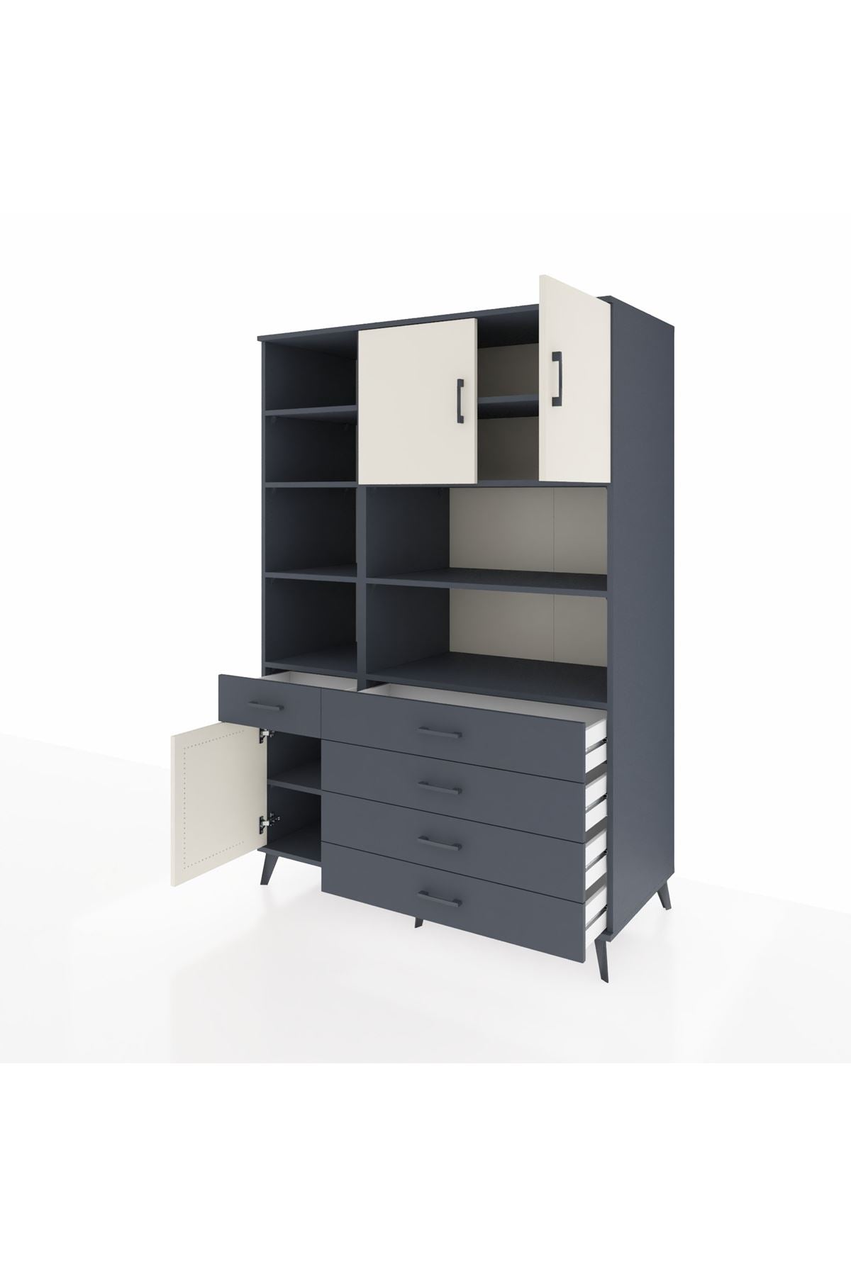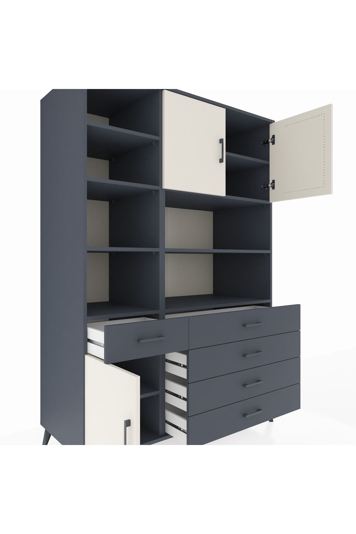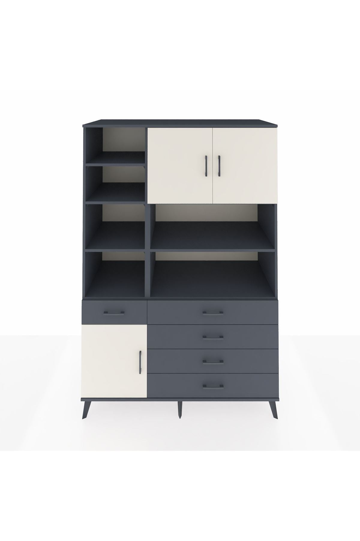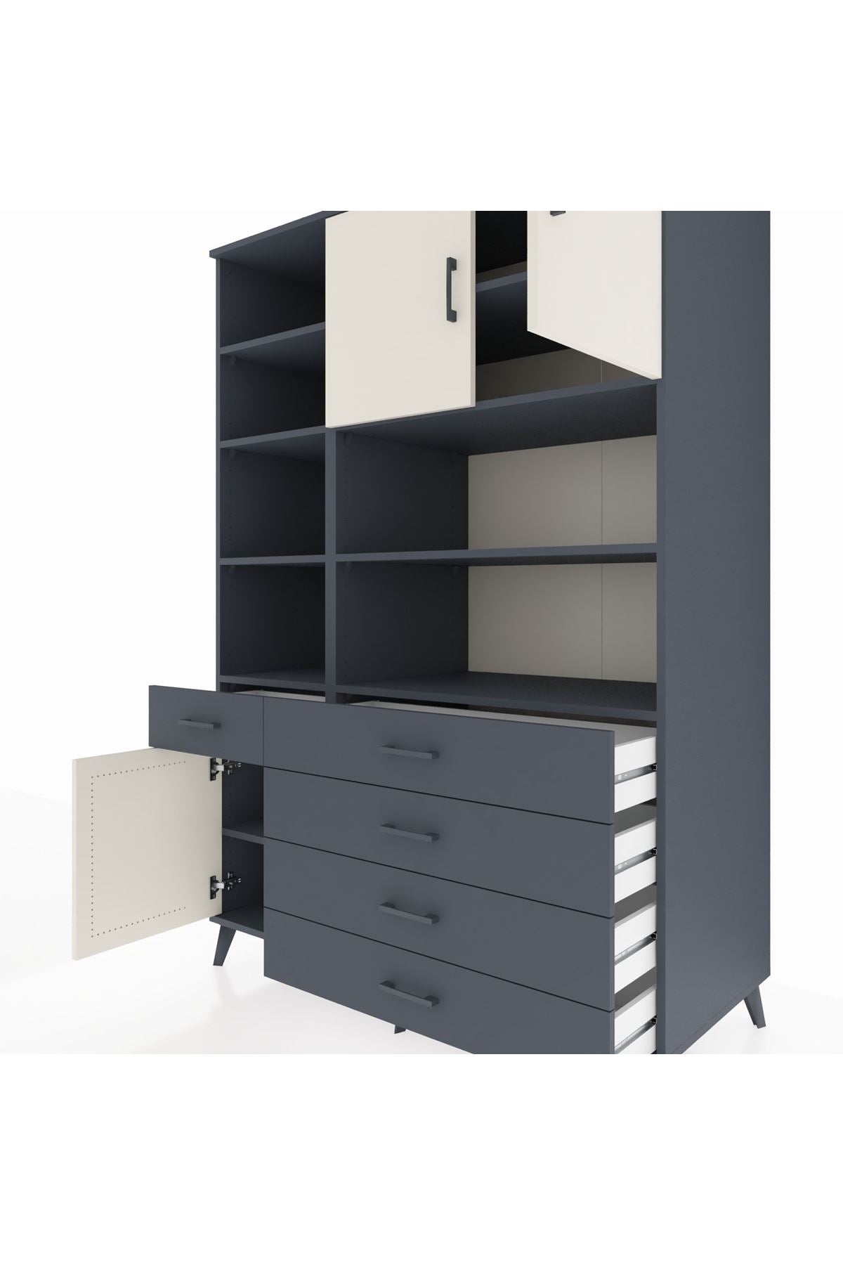 Kronos Dolap 9 Raflı 5 Çekmeceli 3 Kapaklı 132x59x195 Antrasit-Aytaşı/Antrasit