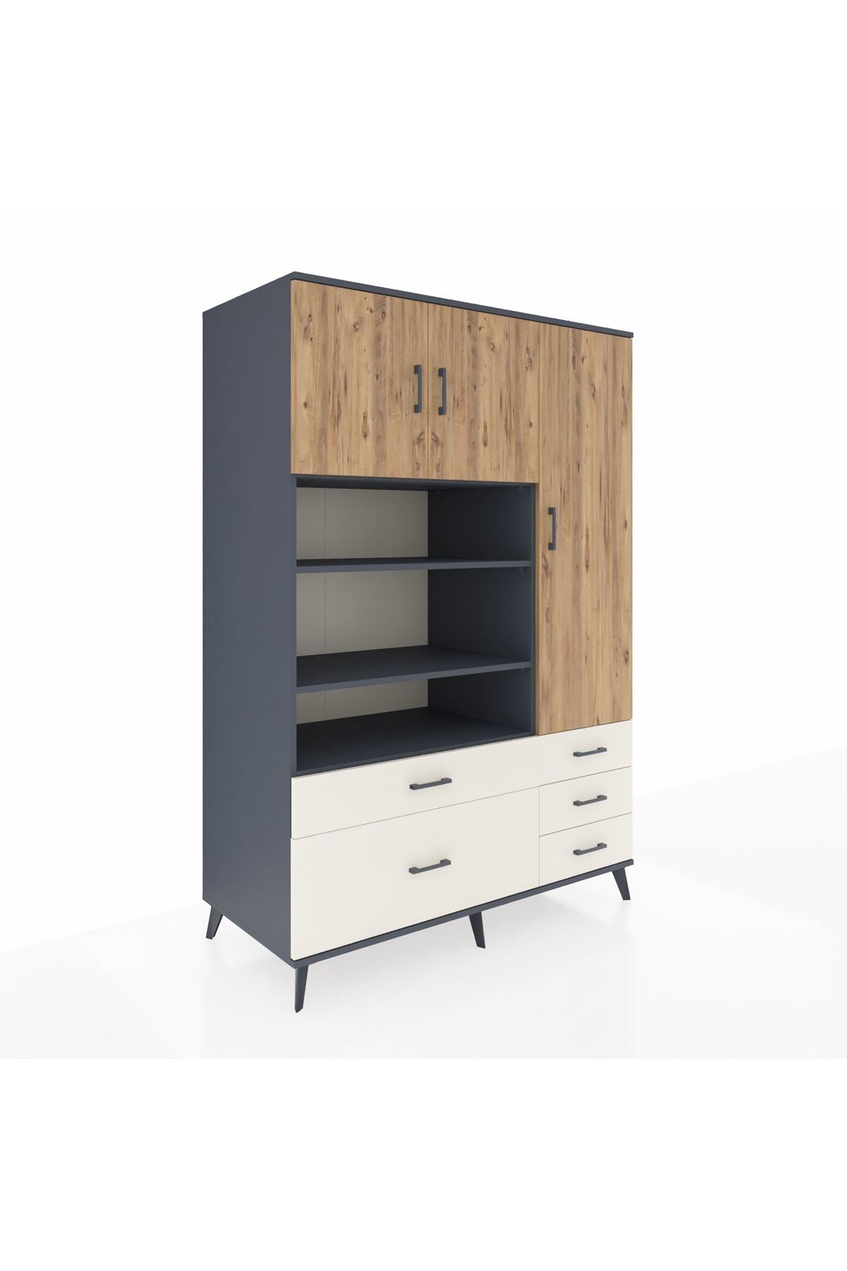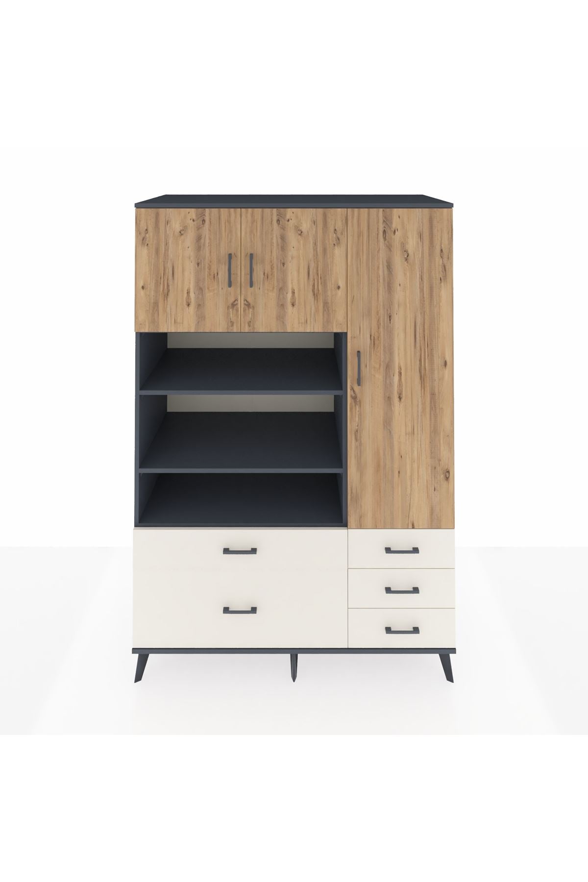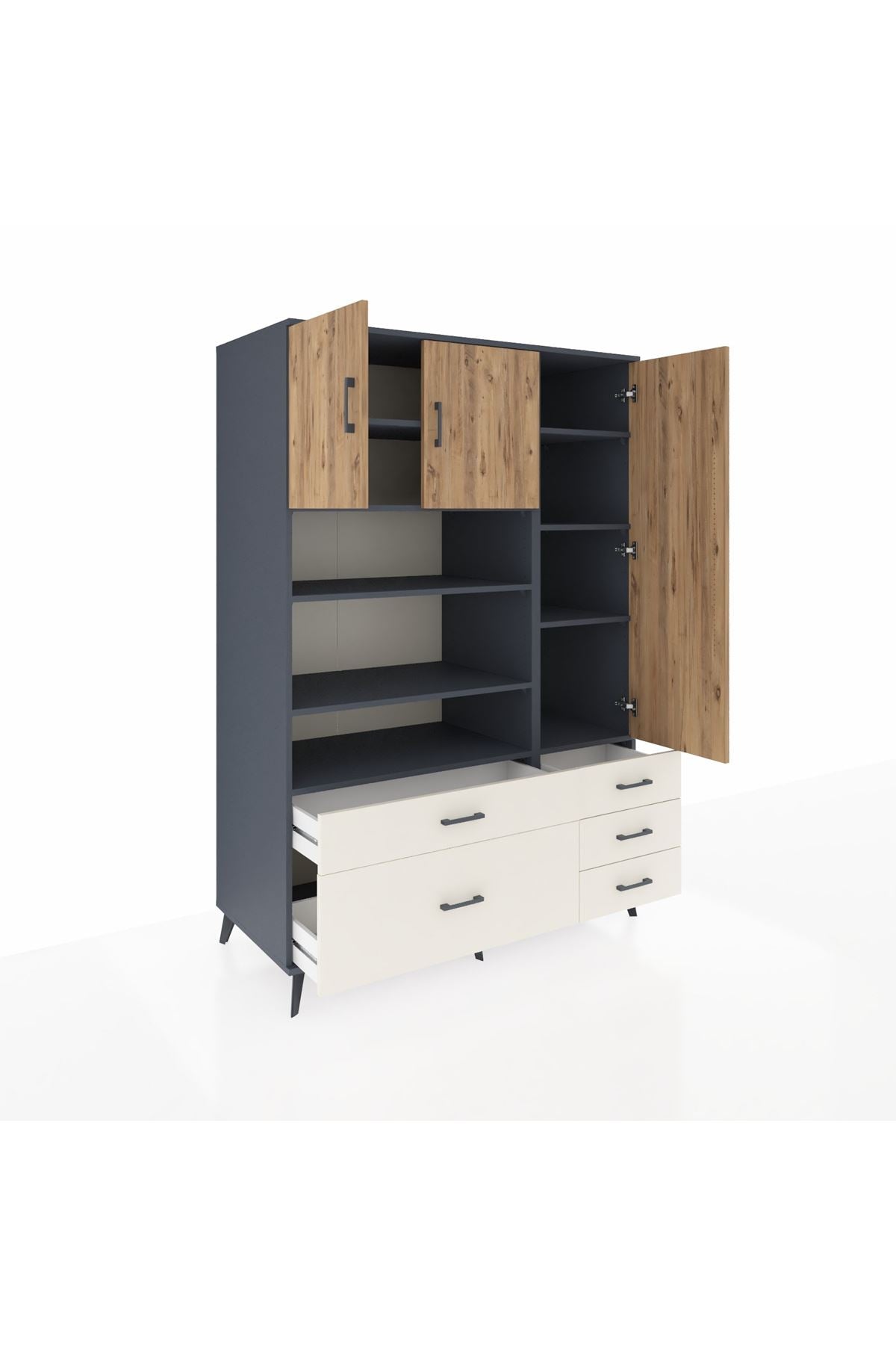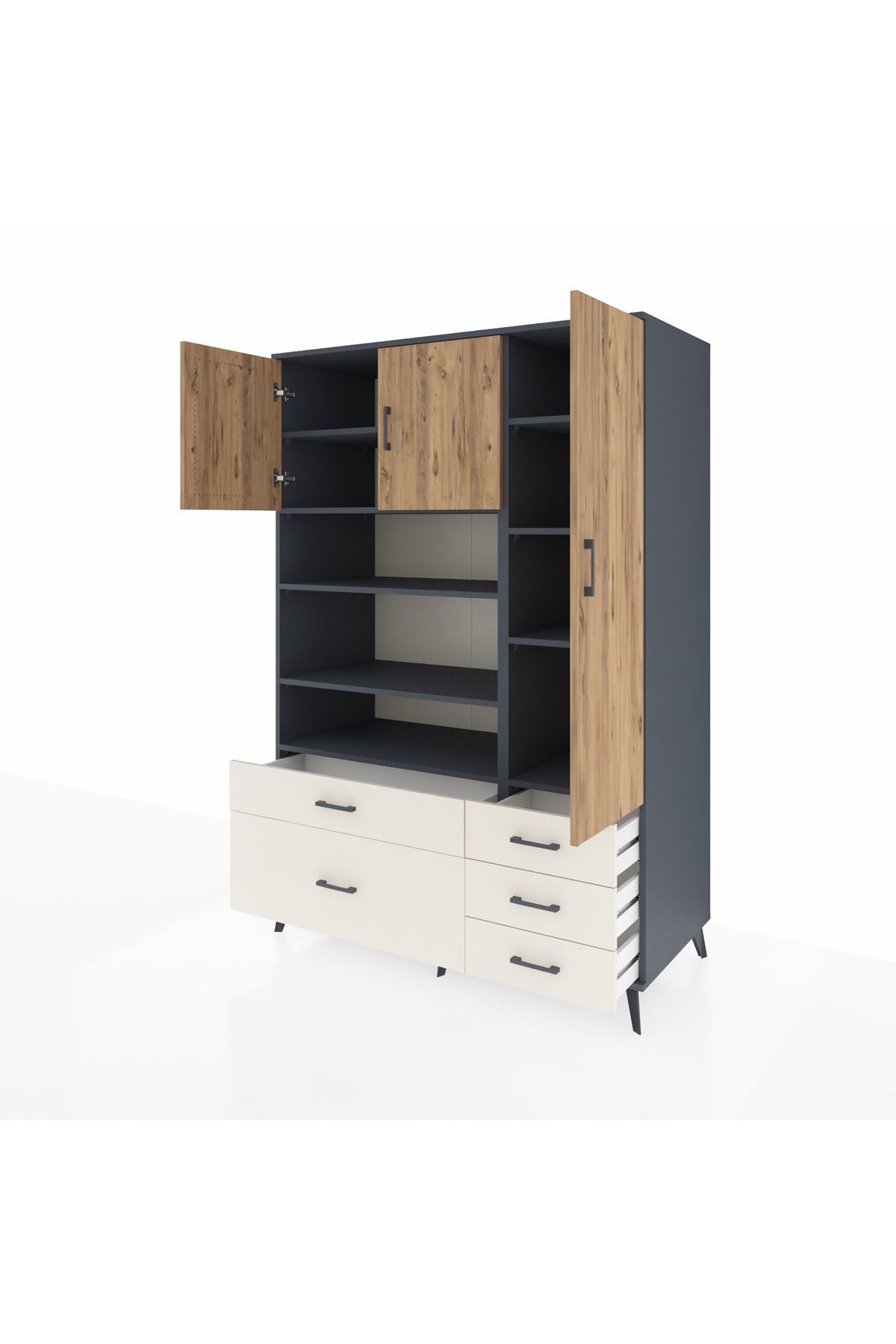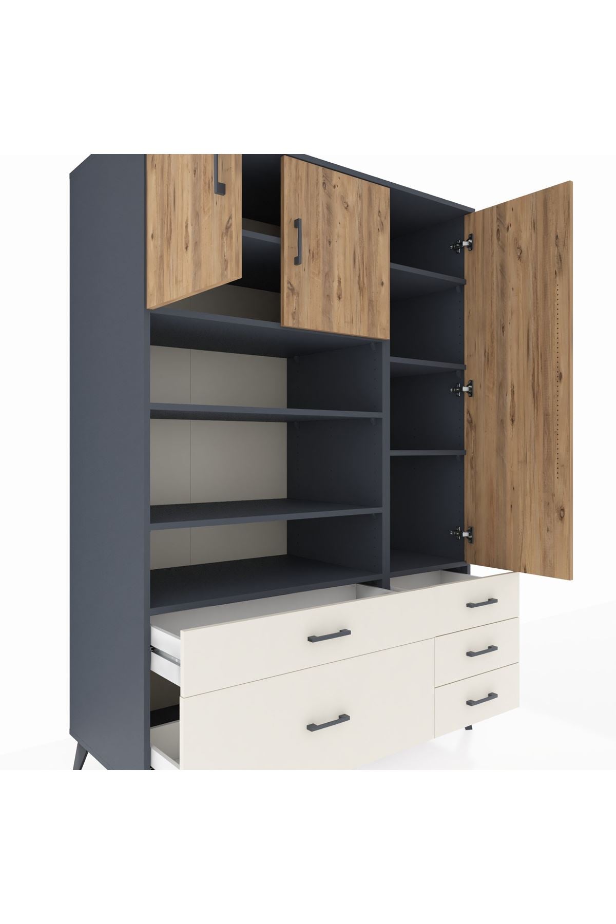 Kronos Dolap 9 Raflı 5 Çekmeceli 3 Kapaklı 132x59x195 Antrasit-Çam/Aytaşı