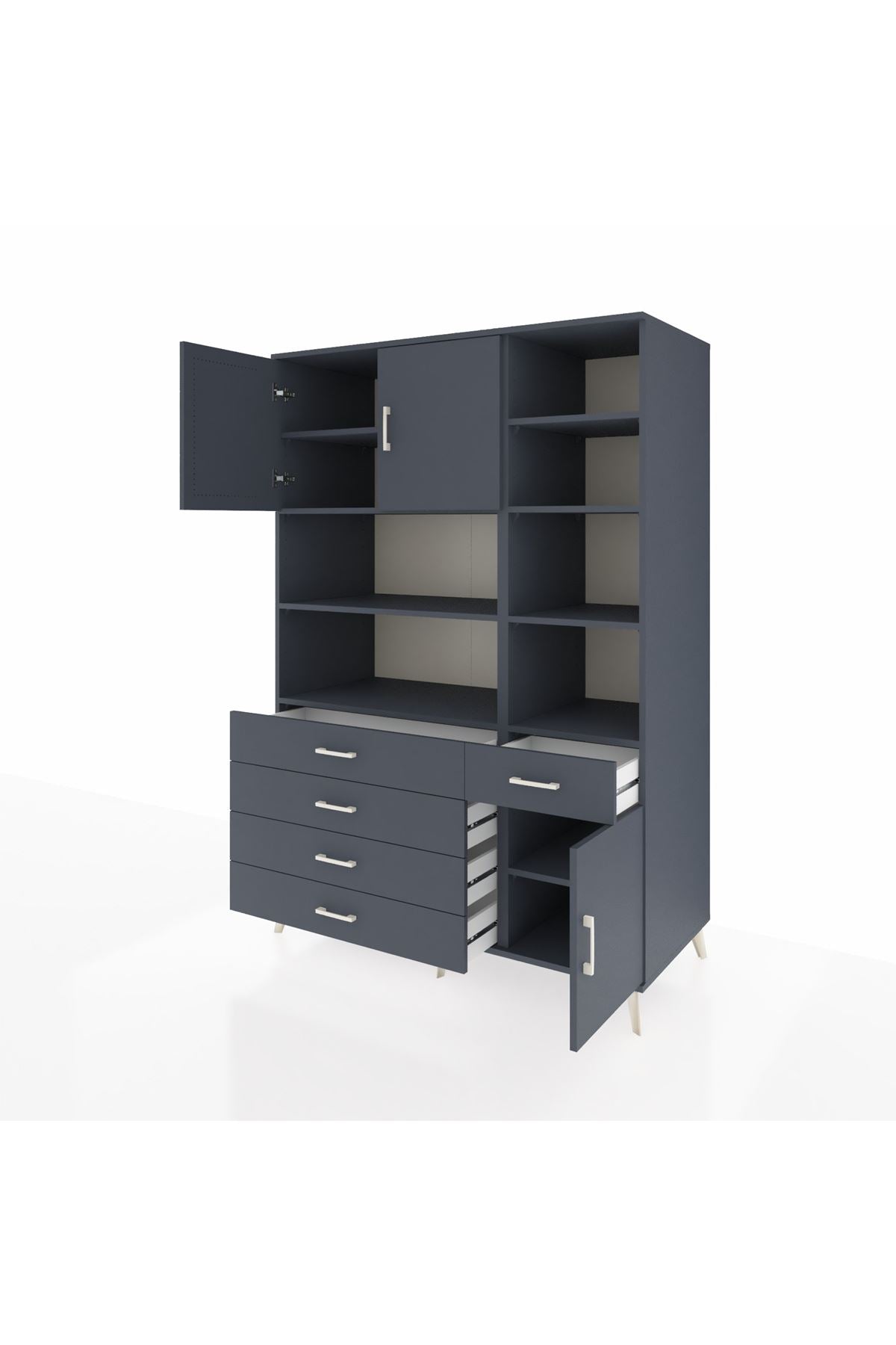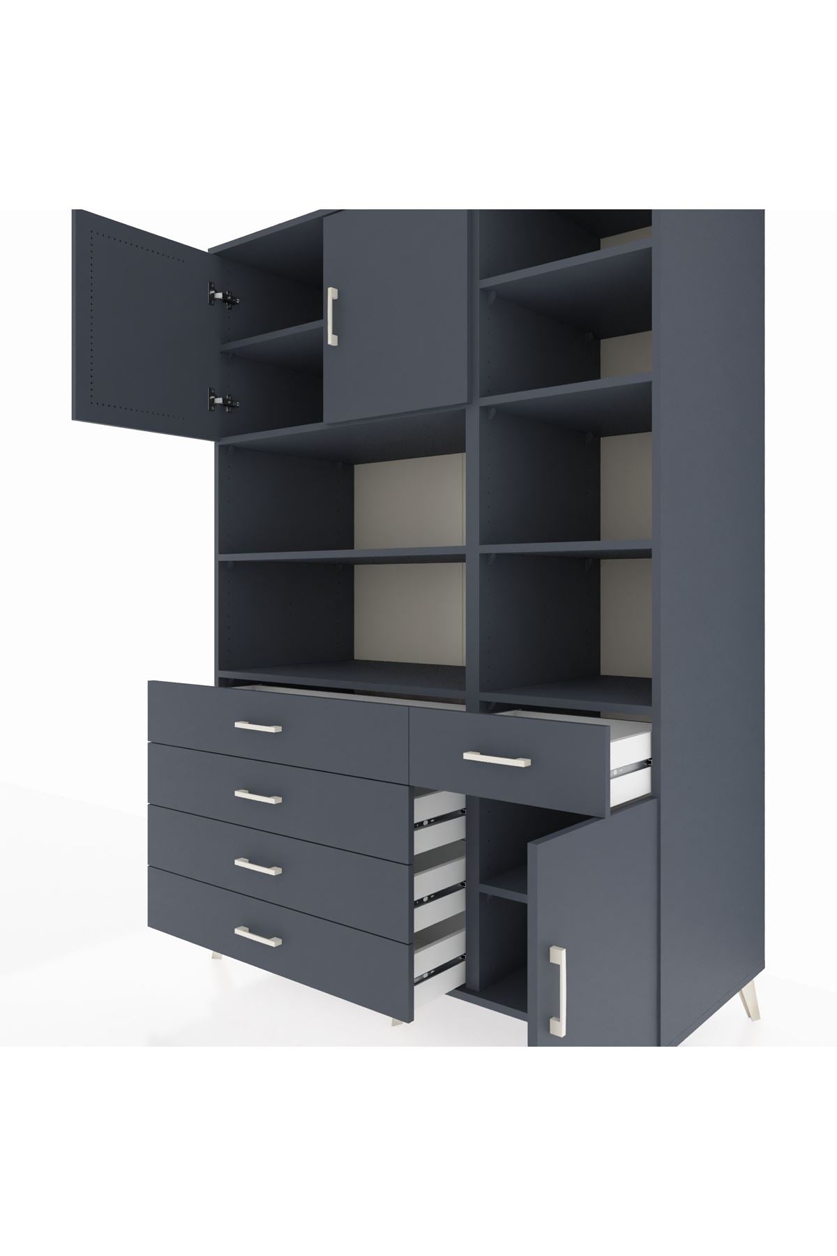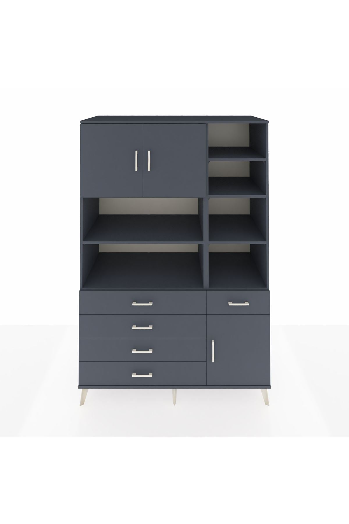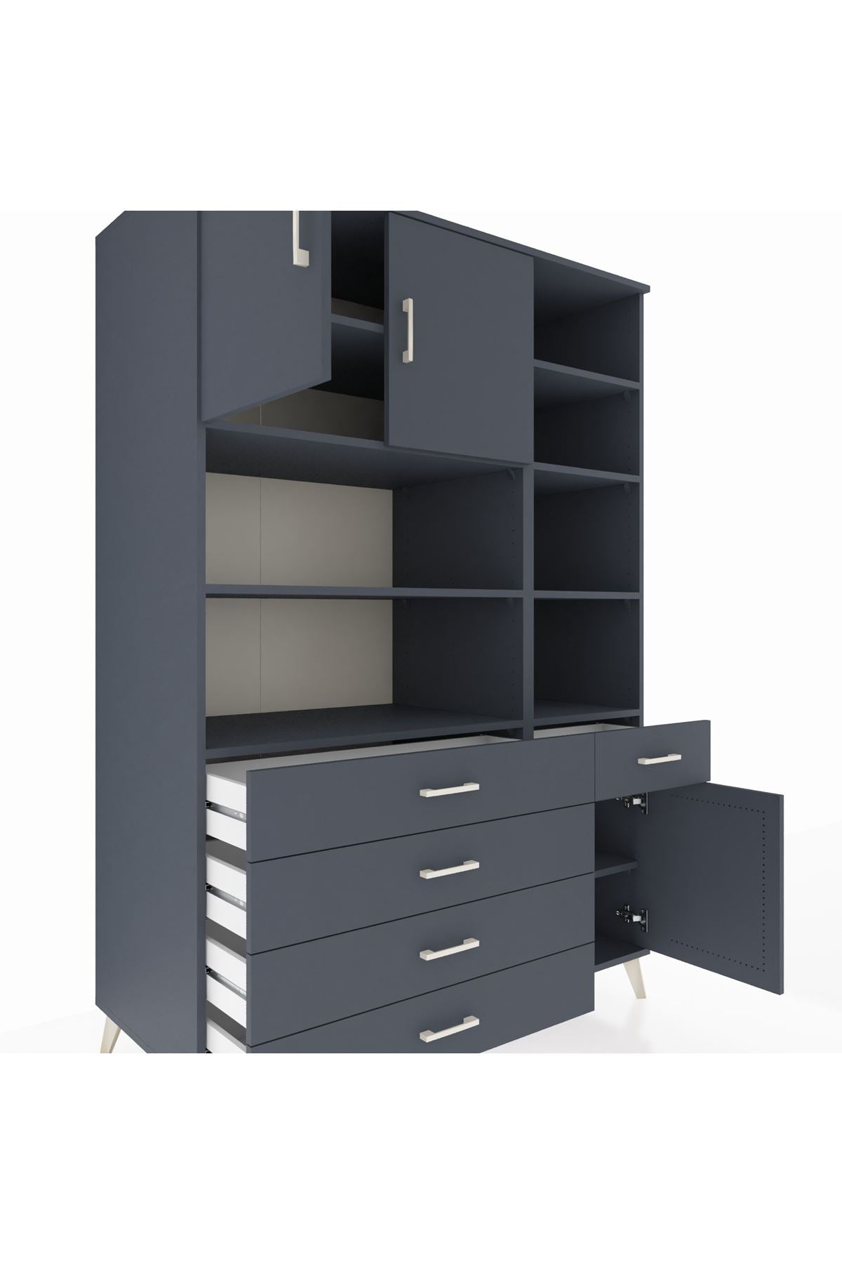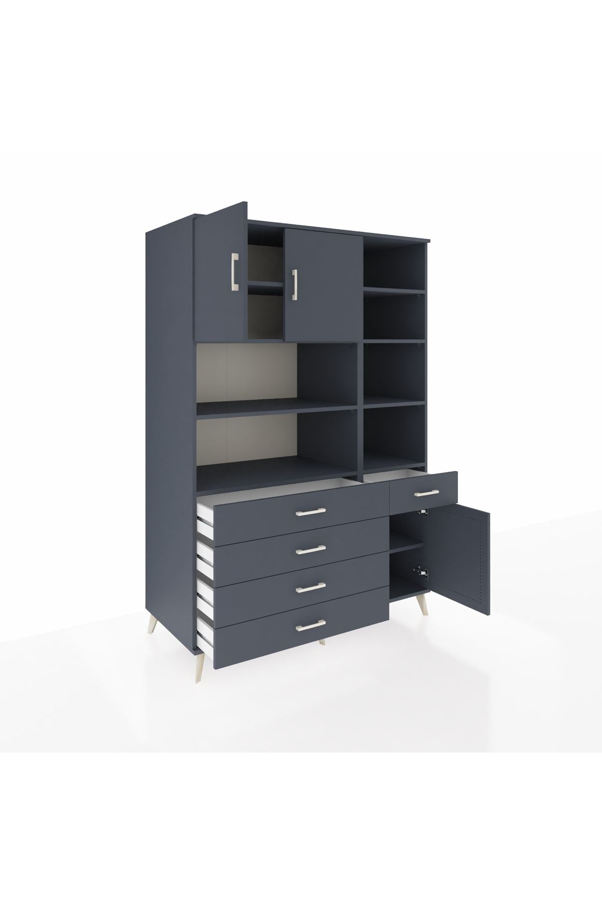 Kronos Dolap 9 Raflı 5 Çekmeceli 3 Kapaklı 132x59x195 Antrasit-Antrasit/Antrasit