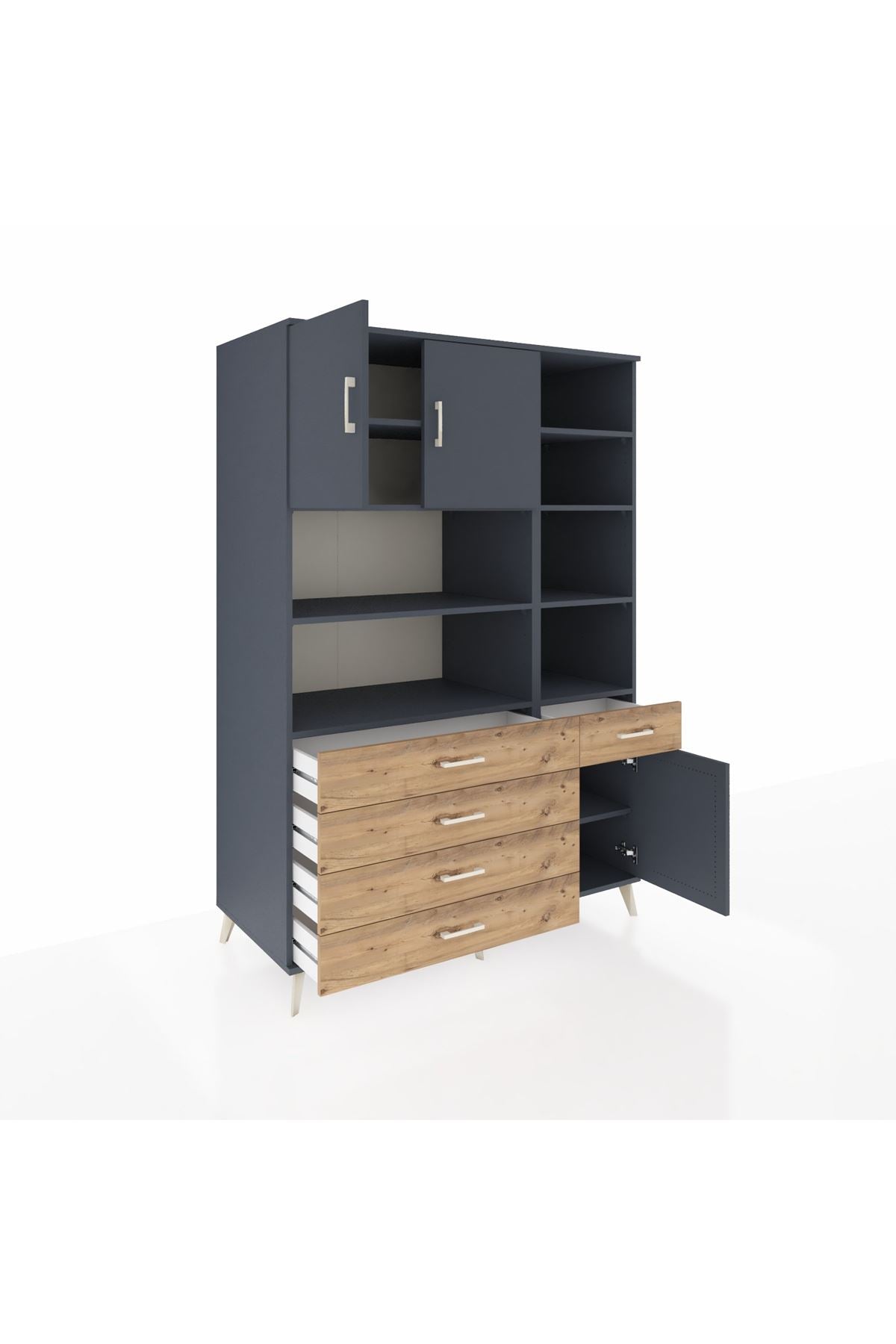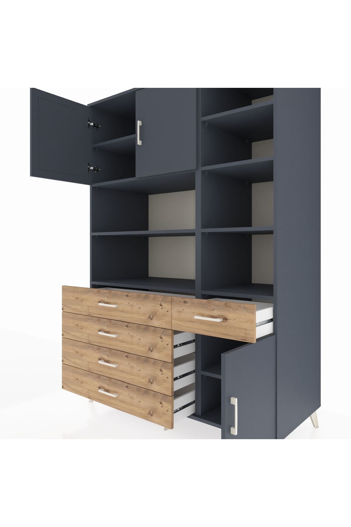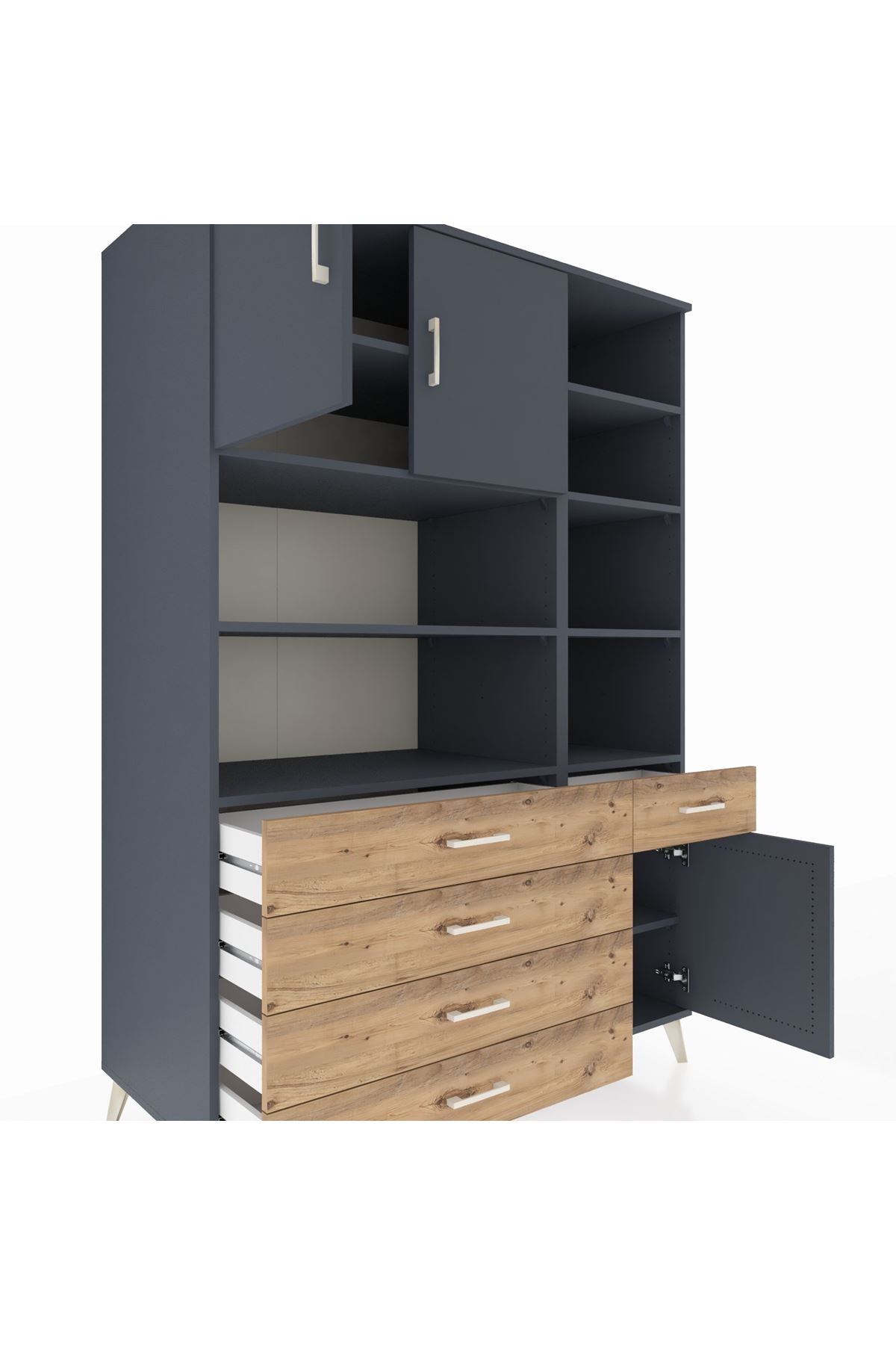 Kronos Dolap 9 Raflı 5 Çekmeceli 3 Kapaklı 132x59x195 Antrasit-Antrasit/Çam