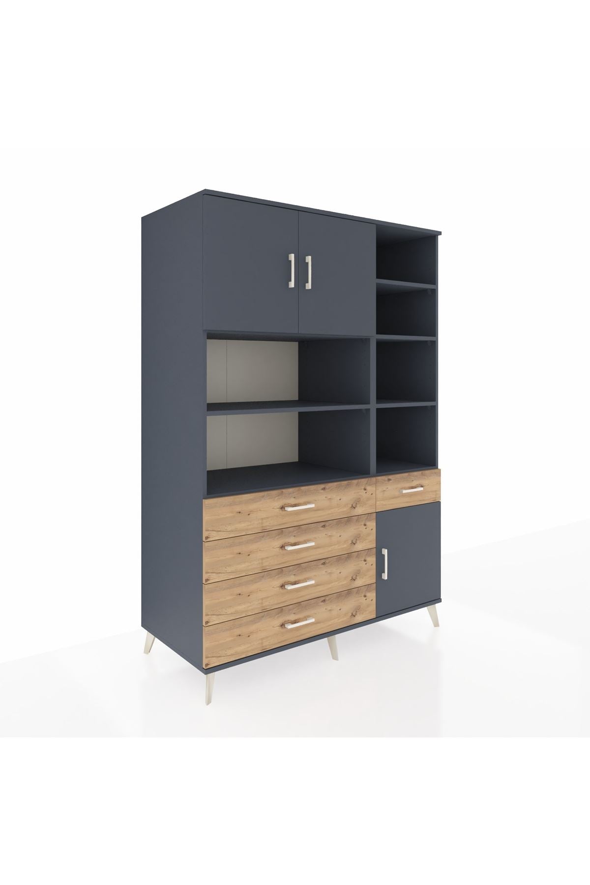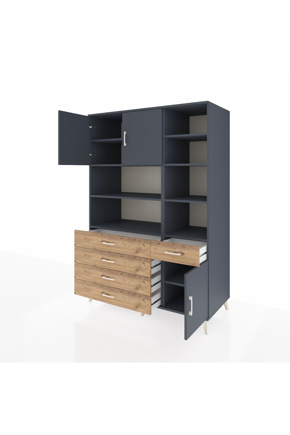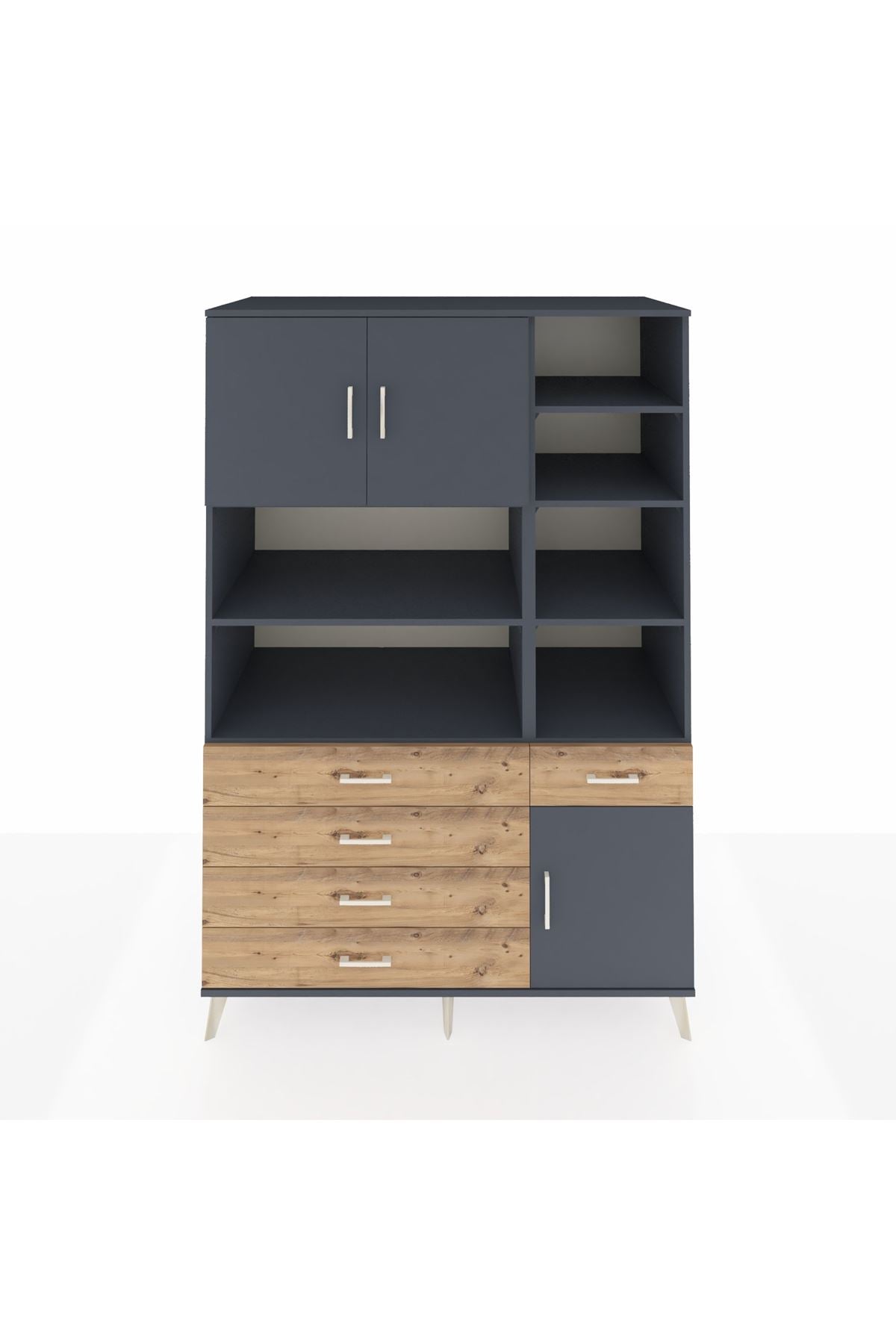 Kronos Dolap 9 Raflı 5 Çekmeceli 3 Kapaklı 132x59x195 Antrasit-Antrasit/Çam