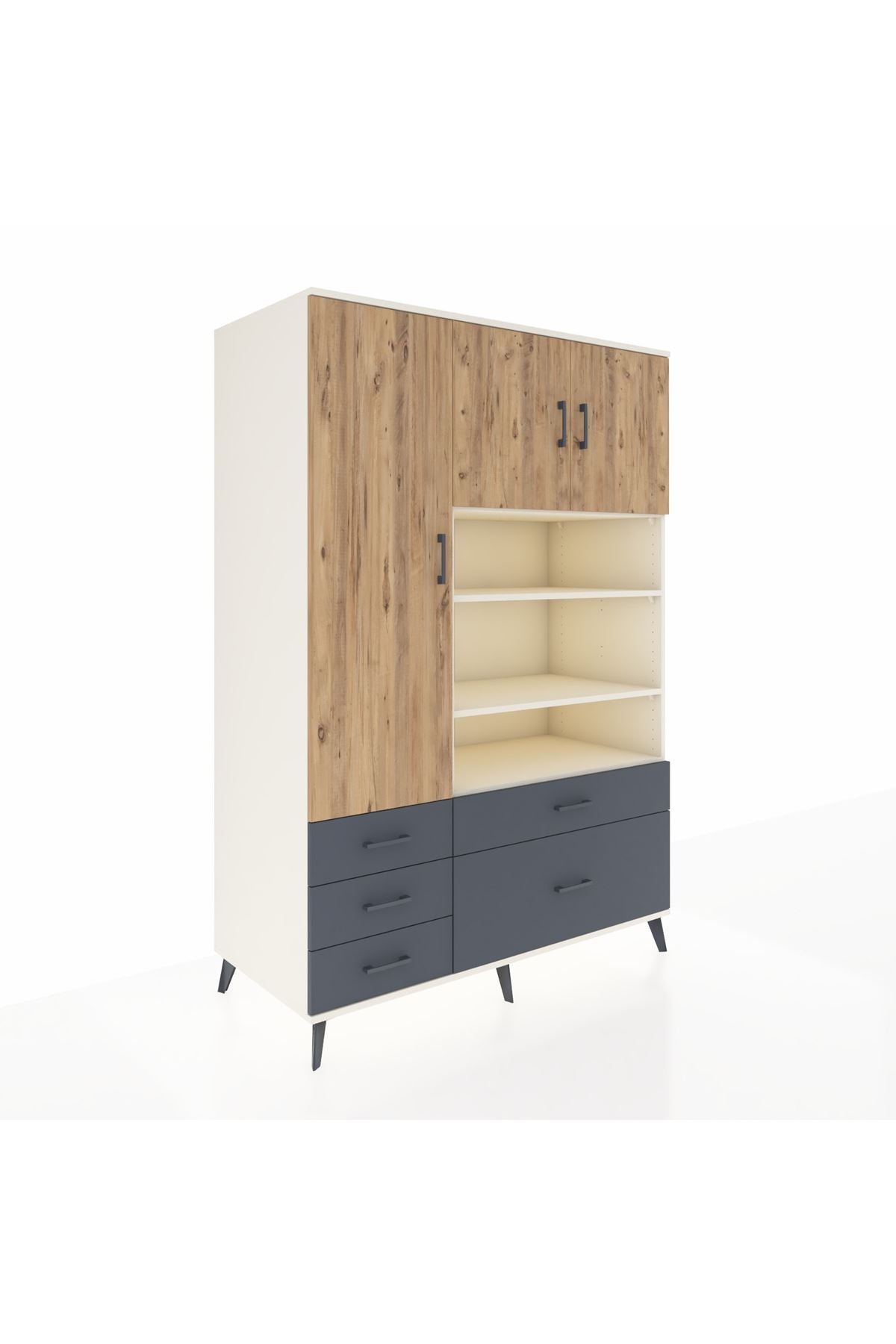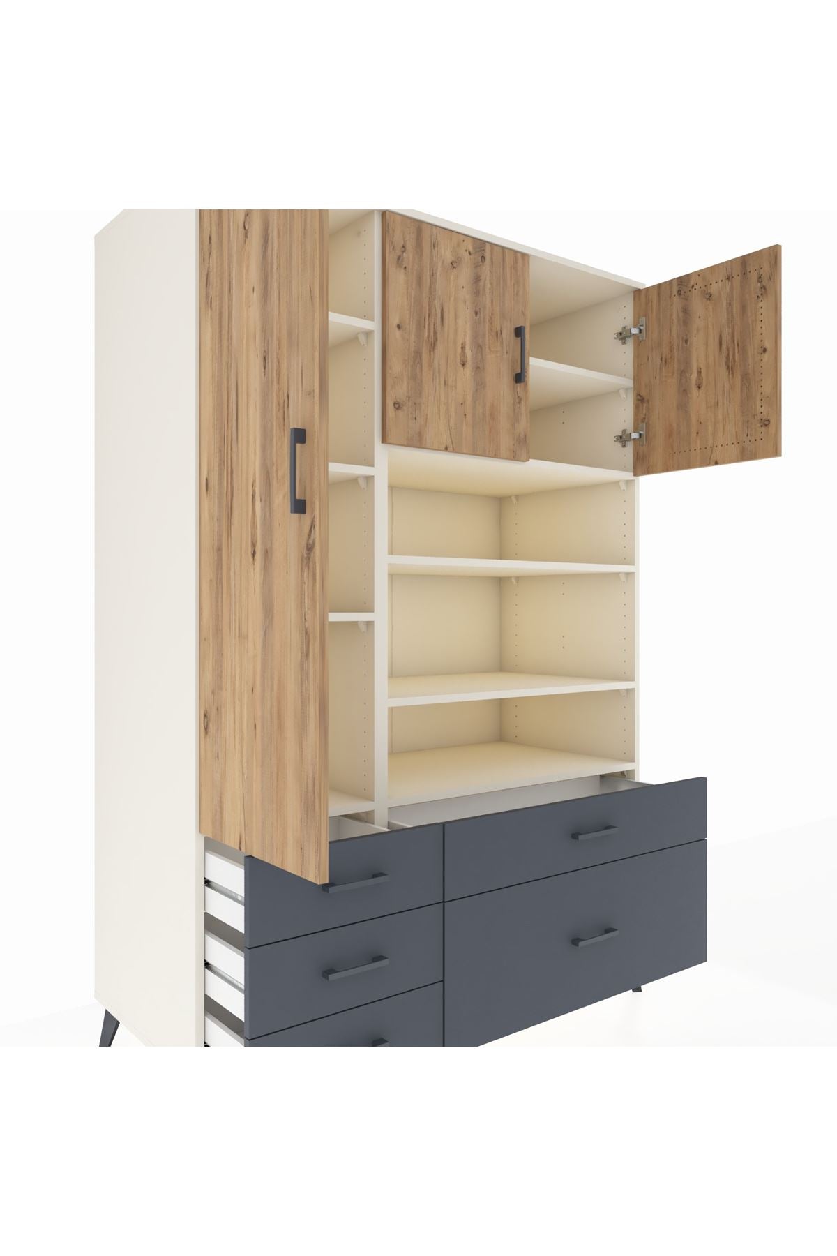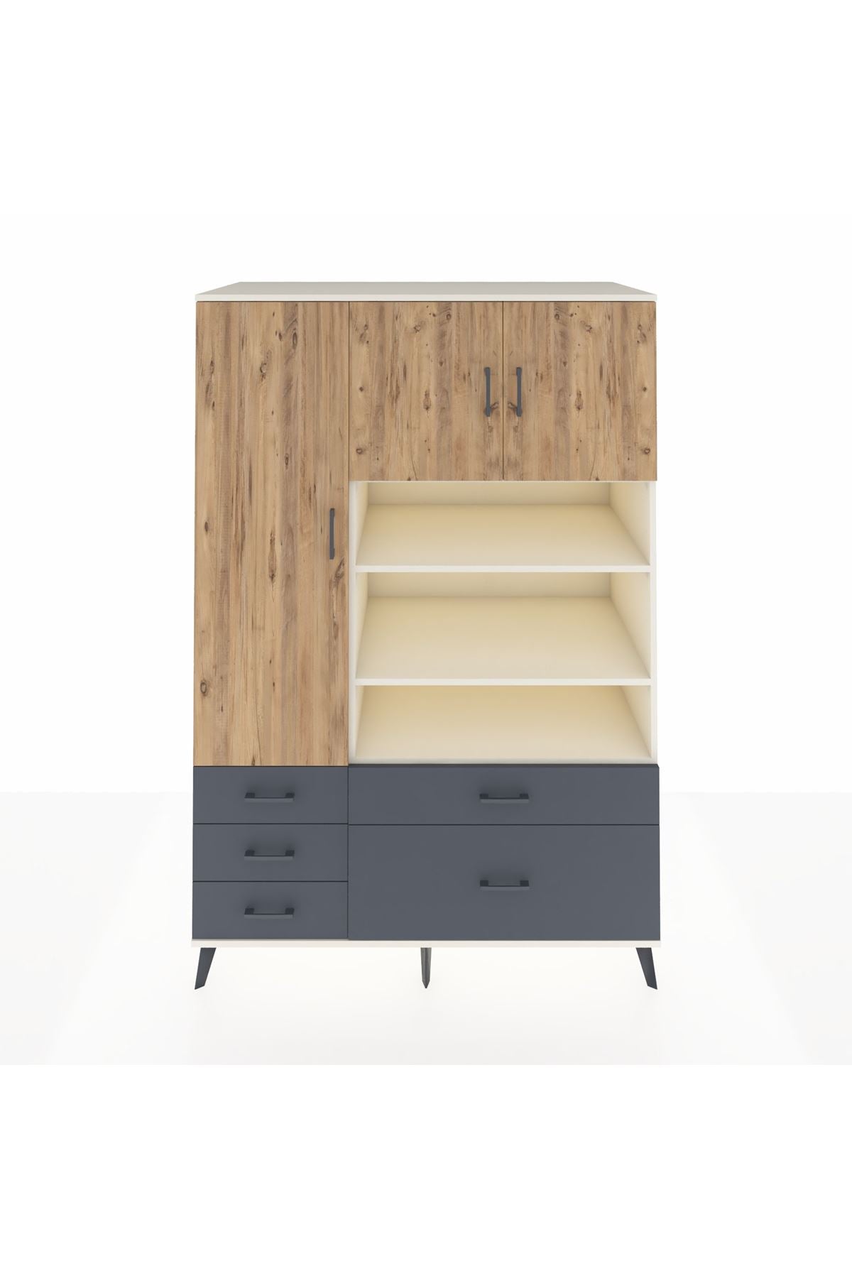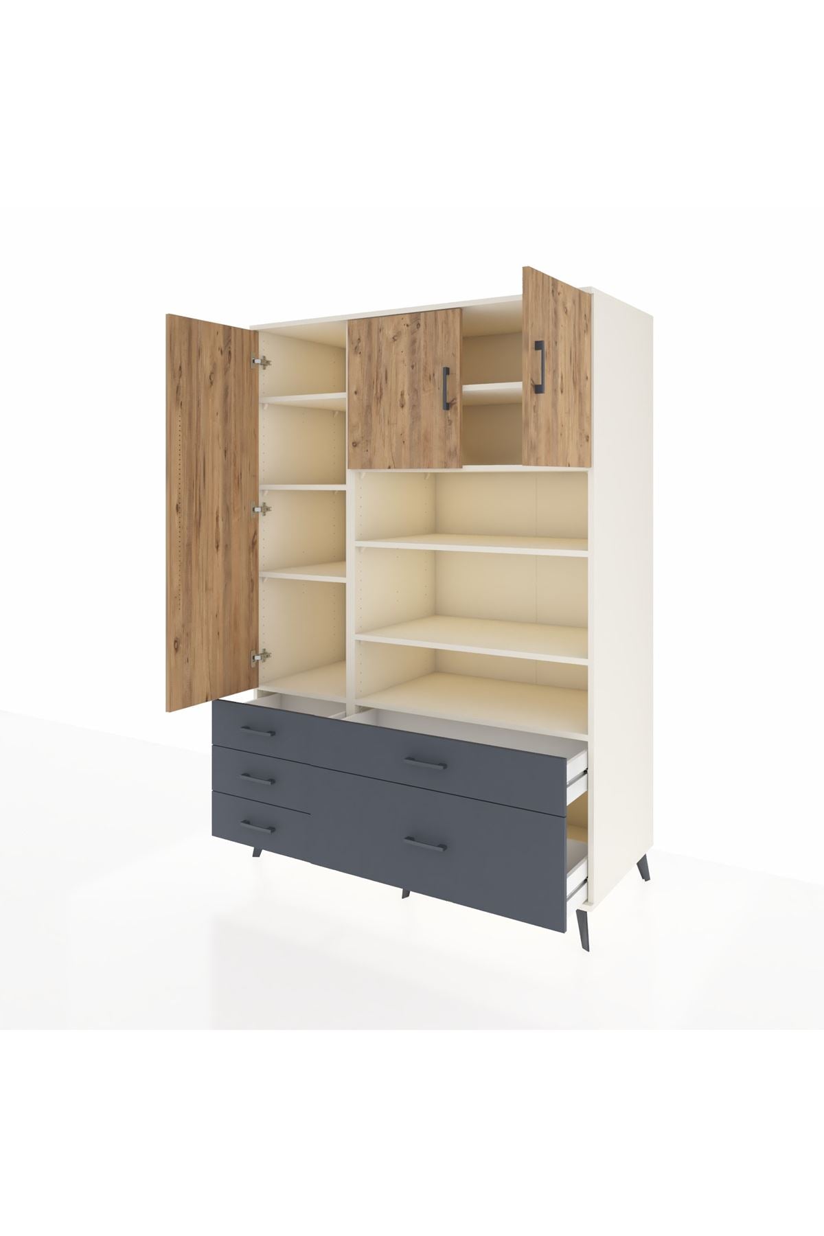 Kronos Dolap 9 Raflı 5 Çekmeceli 3 Kapaklı 132x59x195 Aytaşı-Çam/Antrasit
