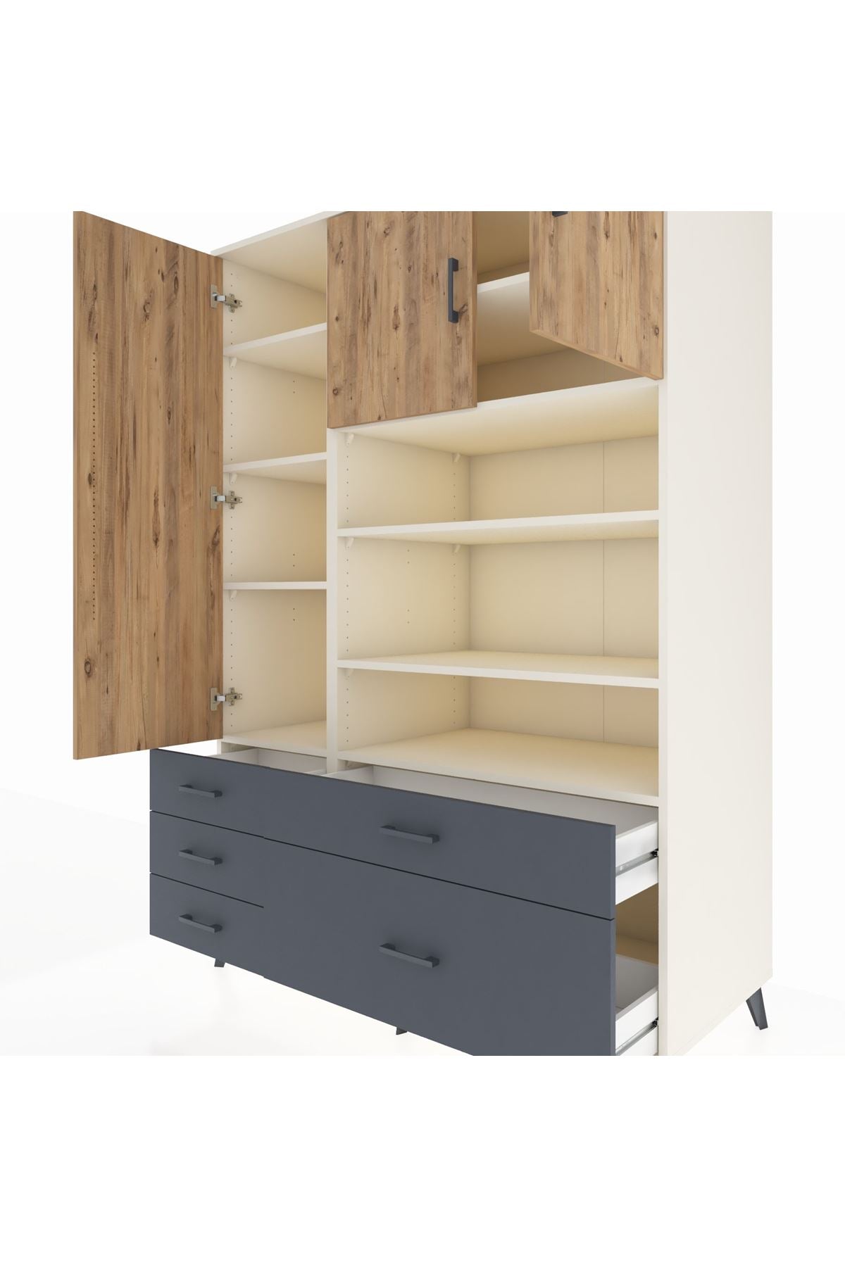 🌞 Kronos Dolap 9 Raflı 5 Çekmeceli 3 Kapaklı 132x59x195 Aytaşı-Çam/Antrasit