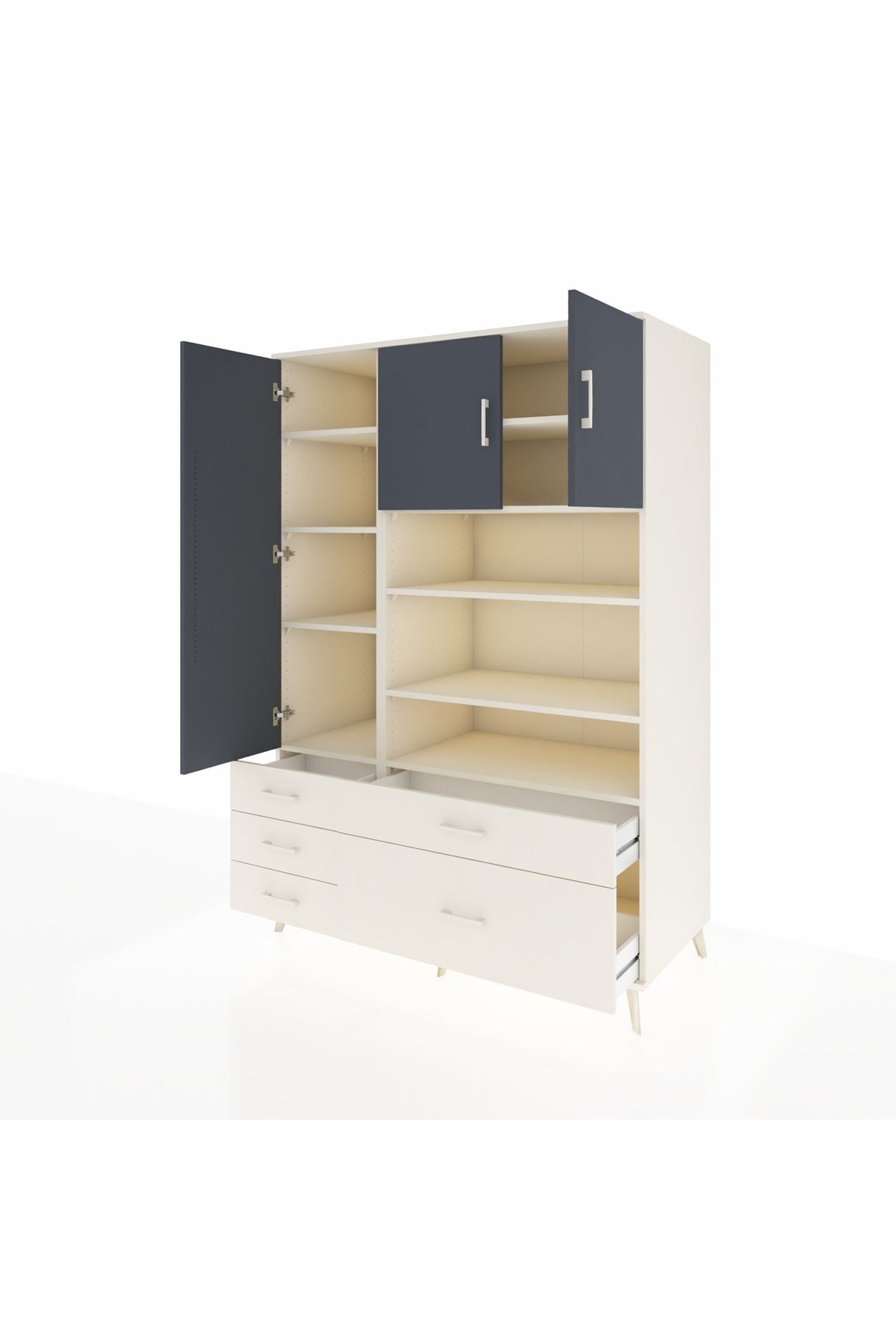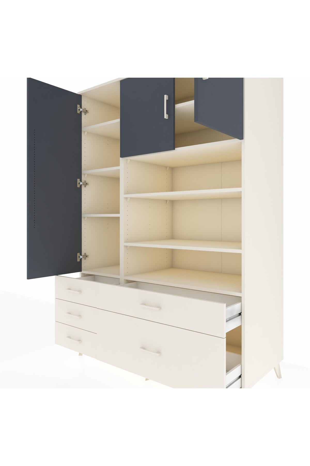 Geniş hacmi ve fonksiyonel tasarımıyla evinizde düzenin anahtarı olacak. 9 rafı, 5 çekmecesi ve 3 kapaklı bölümüyle kıyafetlerden günlük eşyaya kadar her şeyi kolayca organize edebilirsiniz. 👗📚