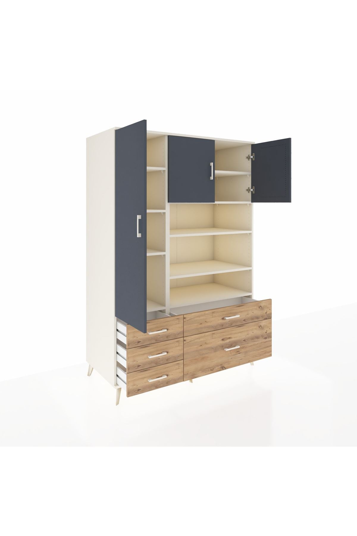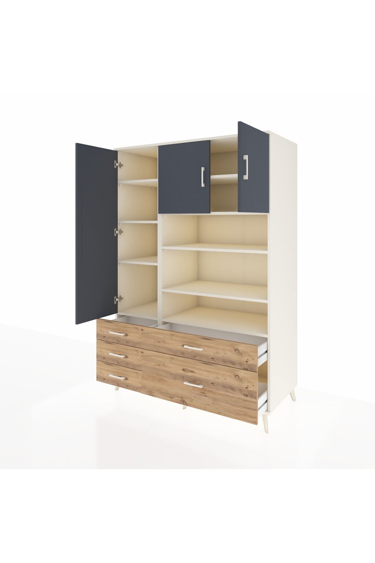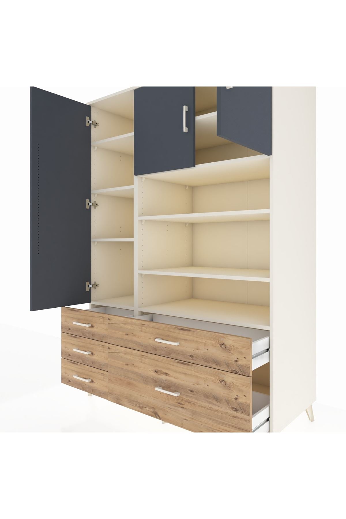 Ürün, 9 rafı ve 5 geniş çekmecesiyle farklı eşyalarınızı düzenli biçimde saklamanızı sağlar 🗂️