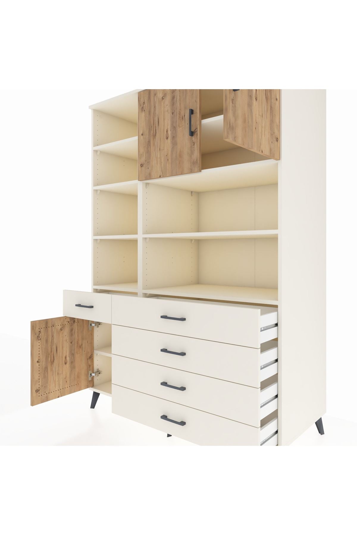 Kronos Dolap 9 Raflı 5 Çekmeceli 3 Kapaklı 132x59x195 Aytaşı-Çam/Aytaşı