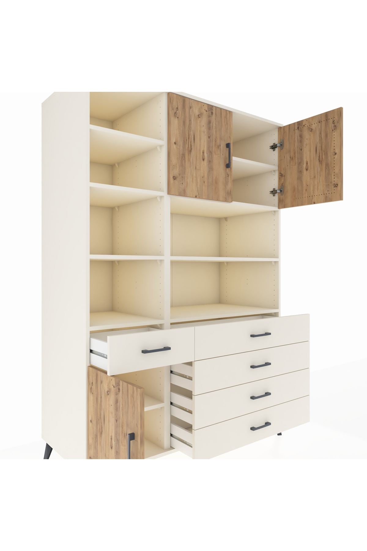 🌟 Kronos Dolap 9 Raflı 5 Çekmeceli 3 Kapaklı 132x59x195 Aytaşı-Çam/Aytaşı