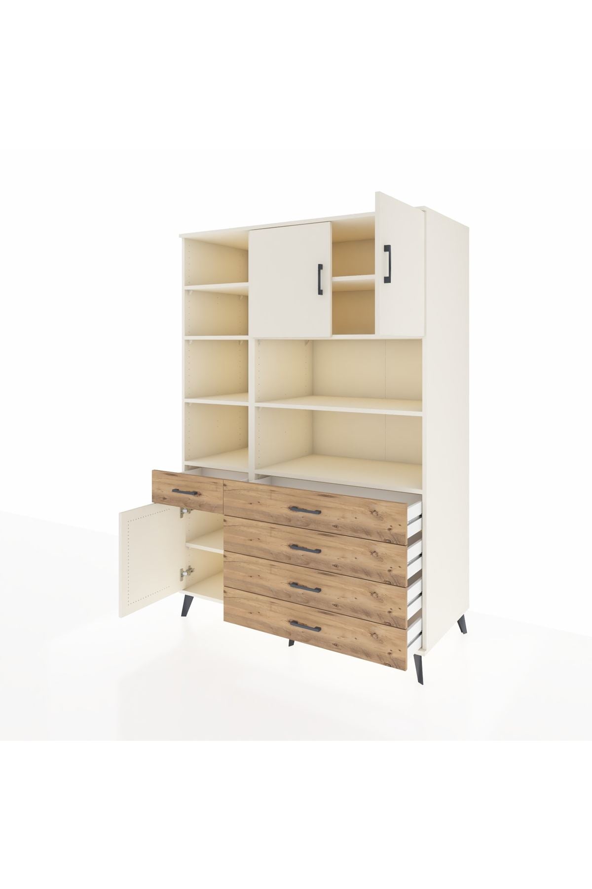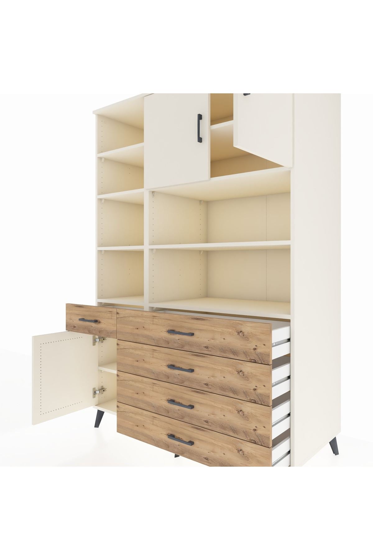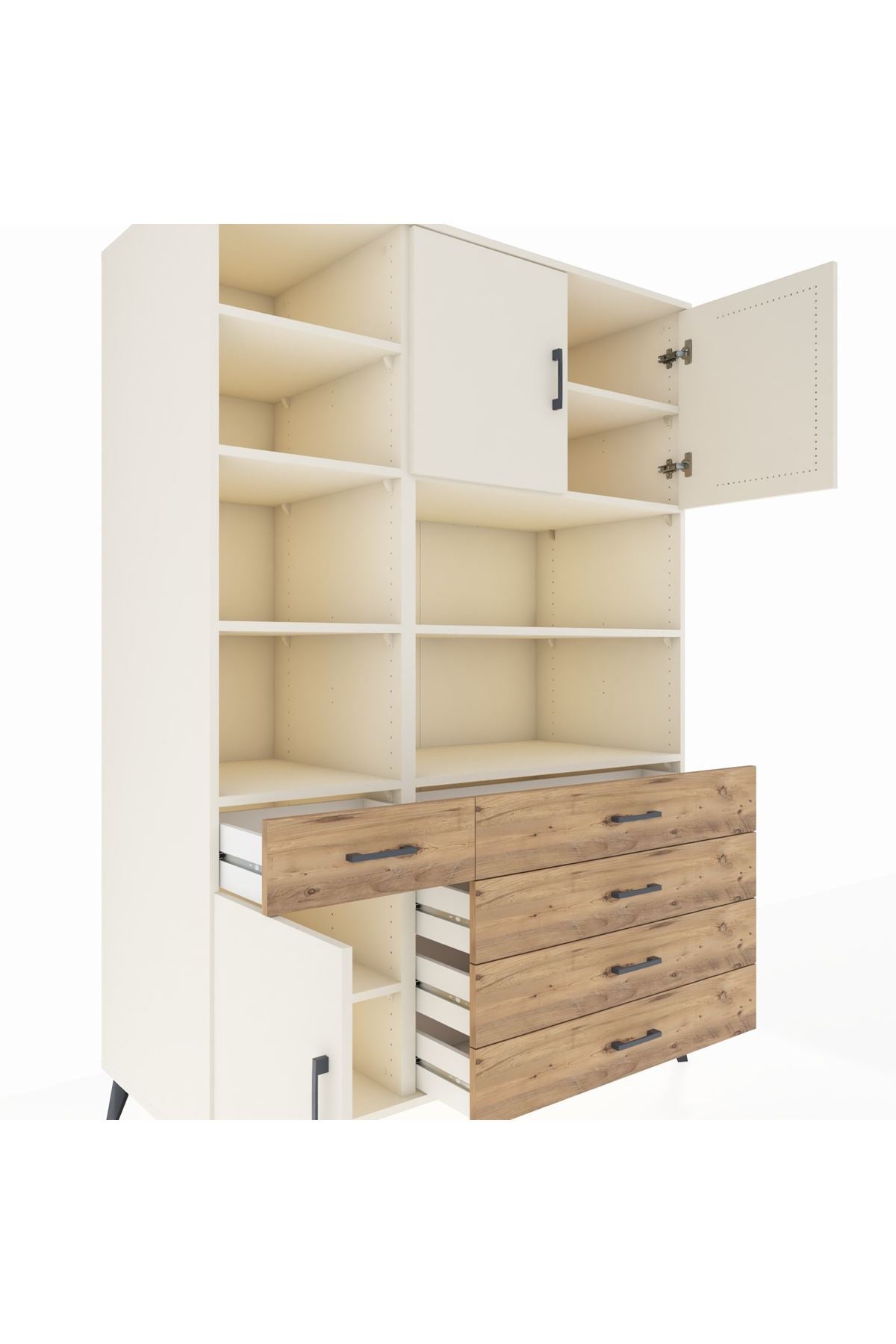 Kronos Dolap 9 Raflı 5 Çekmeceli 3 Kapaklı 132x59x195 Aytaşı-Aytaşı/Çam
