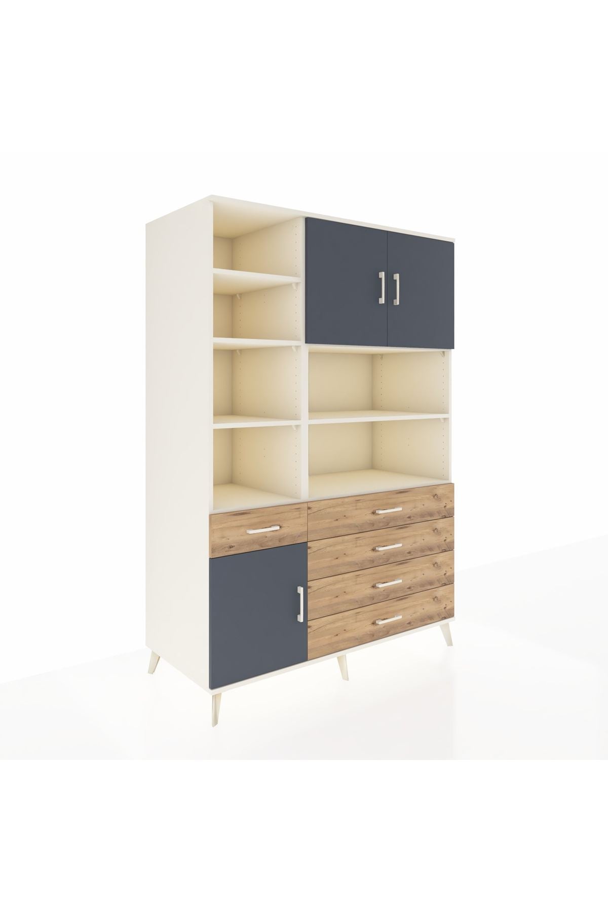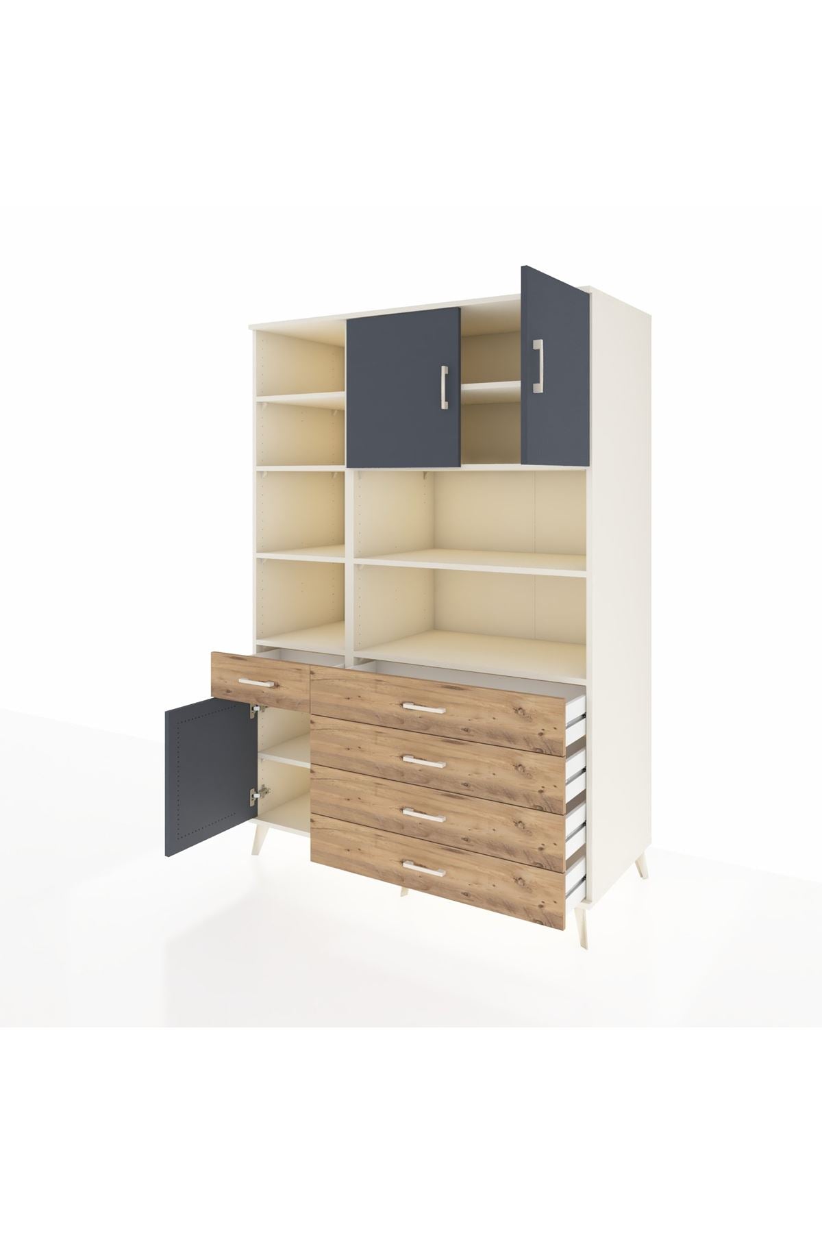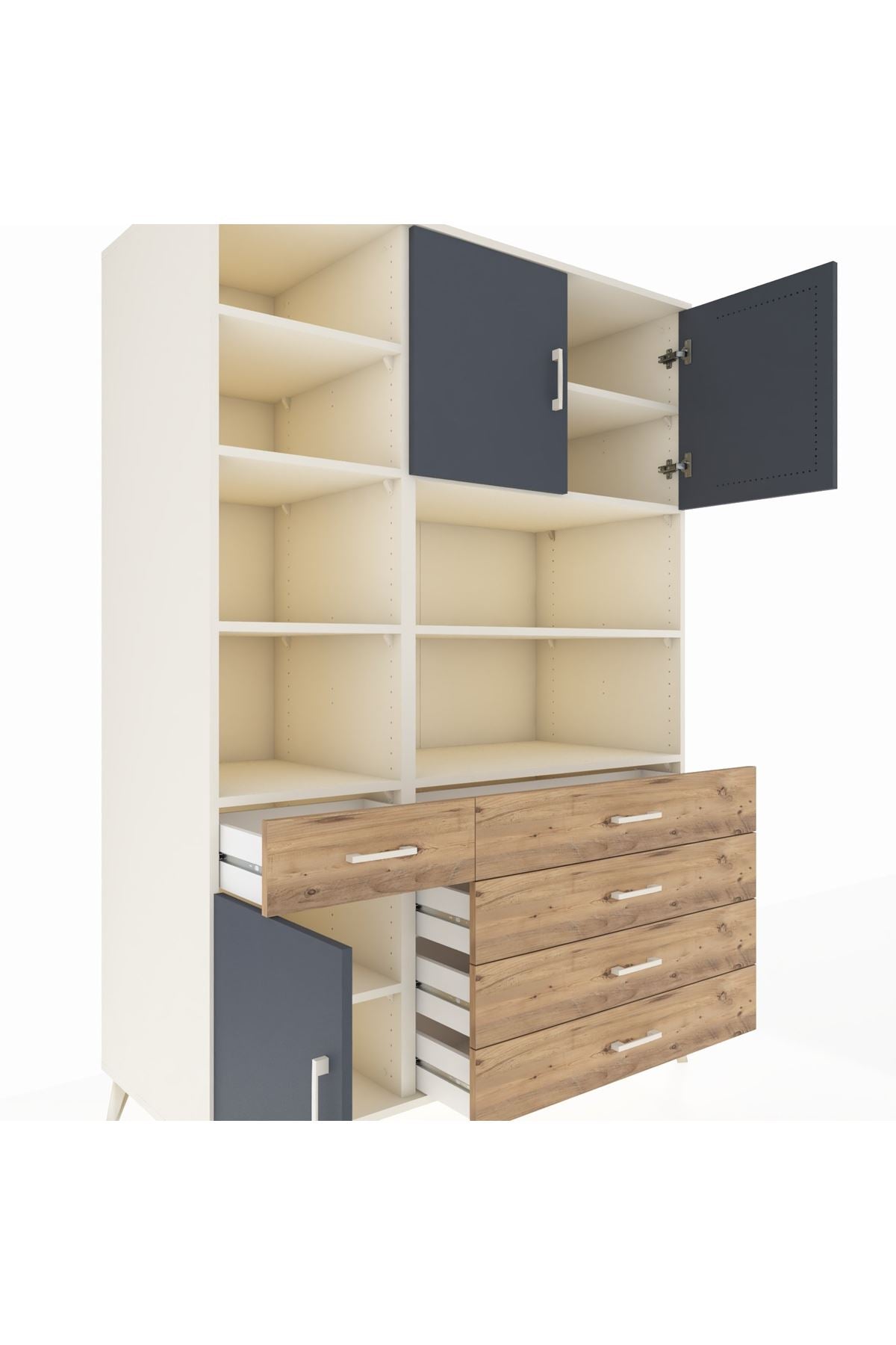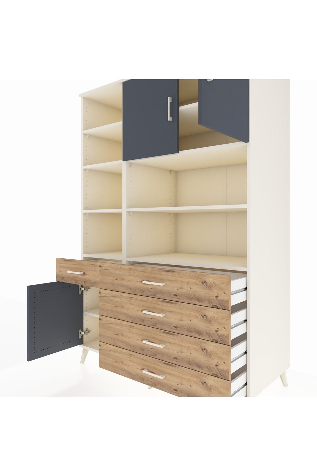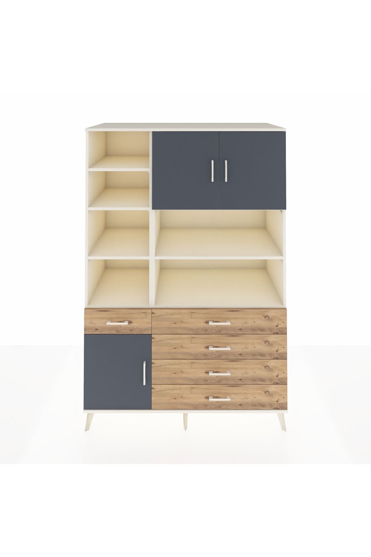 9 geniş rafı, 5 işlevsel çekmecesi ve 3 kapaklı tasarımı ile eşyalarınızı kolayca yerleştirmenizi sağlar 🗄️✨