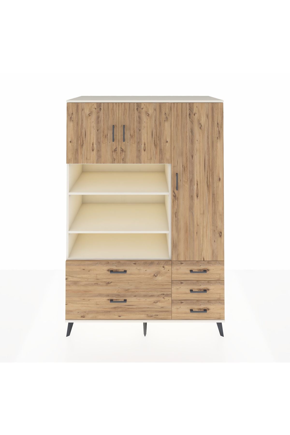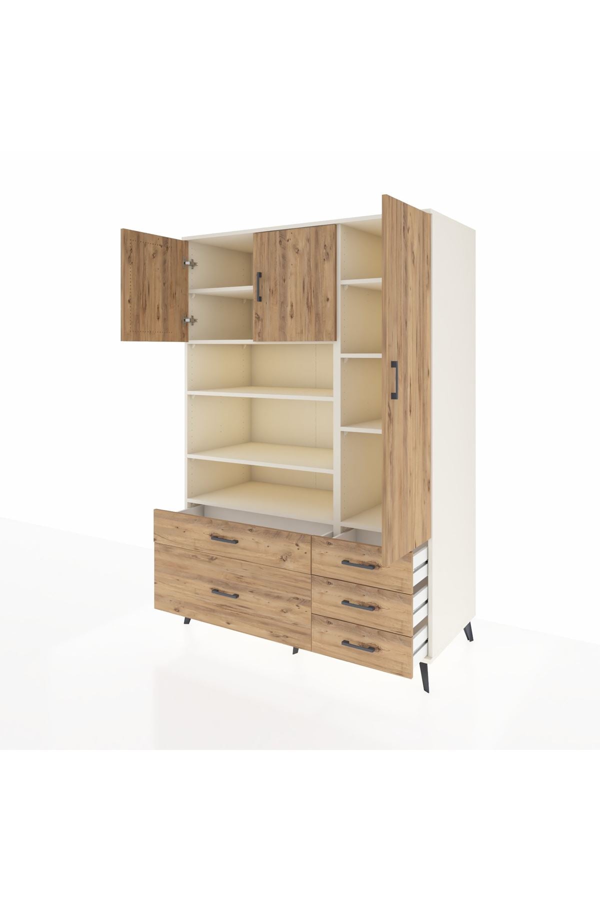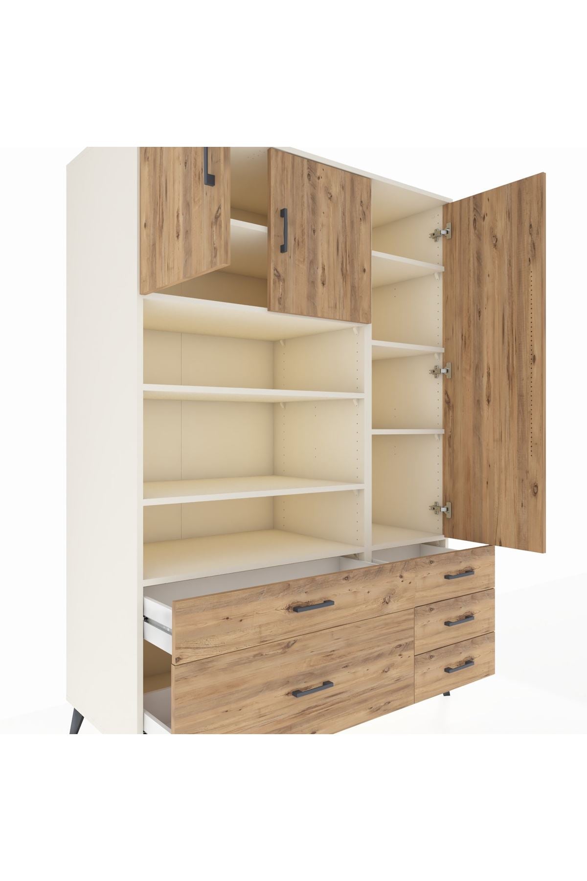 Kronos Dolap 9 Raflı 5 Çekmeceli 3 Kapaklı 132x59x195 Aytaşı-Çam/Çam