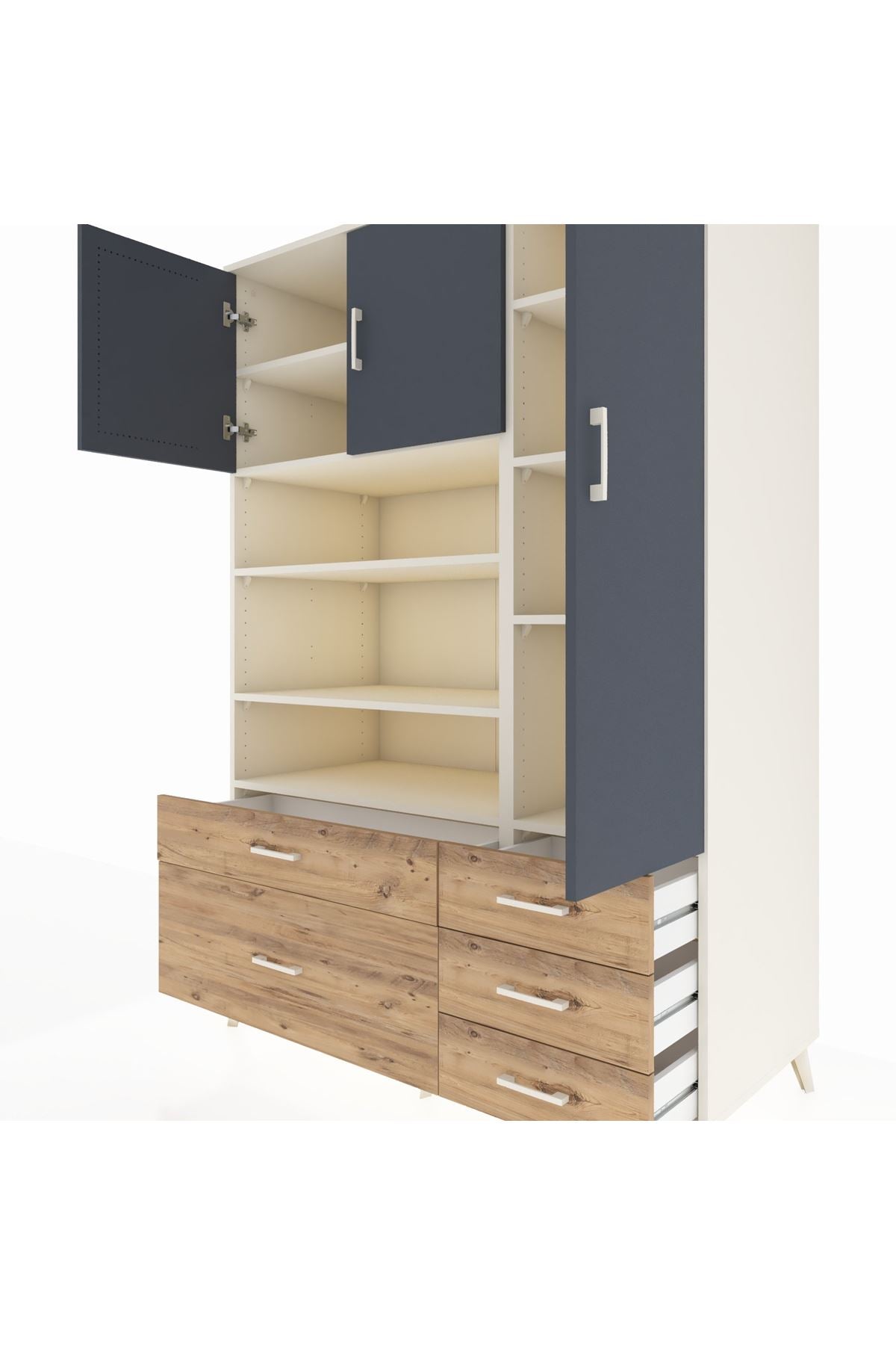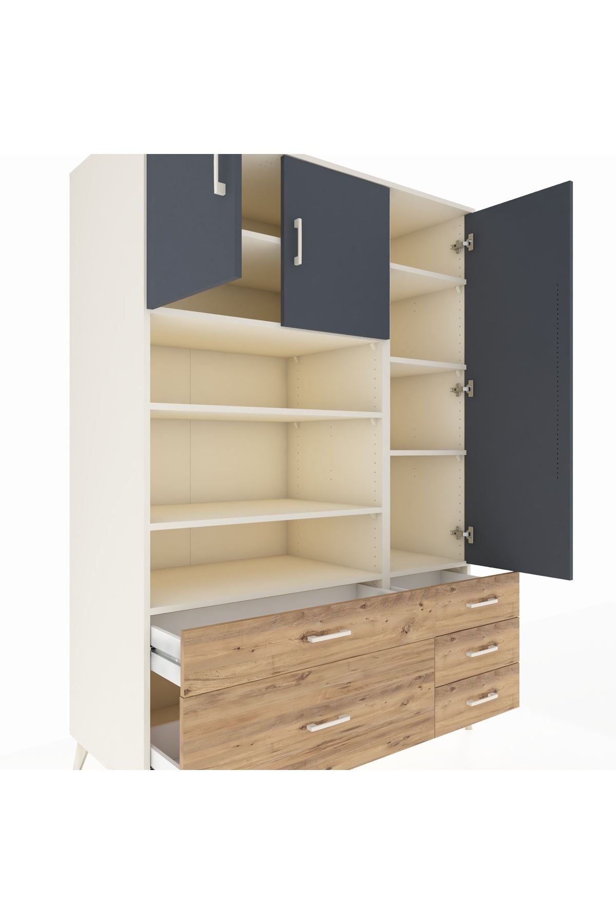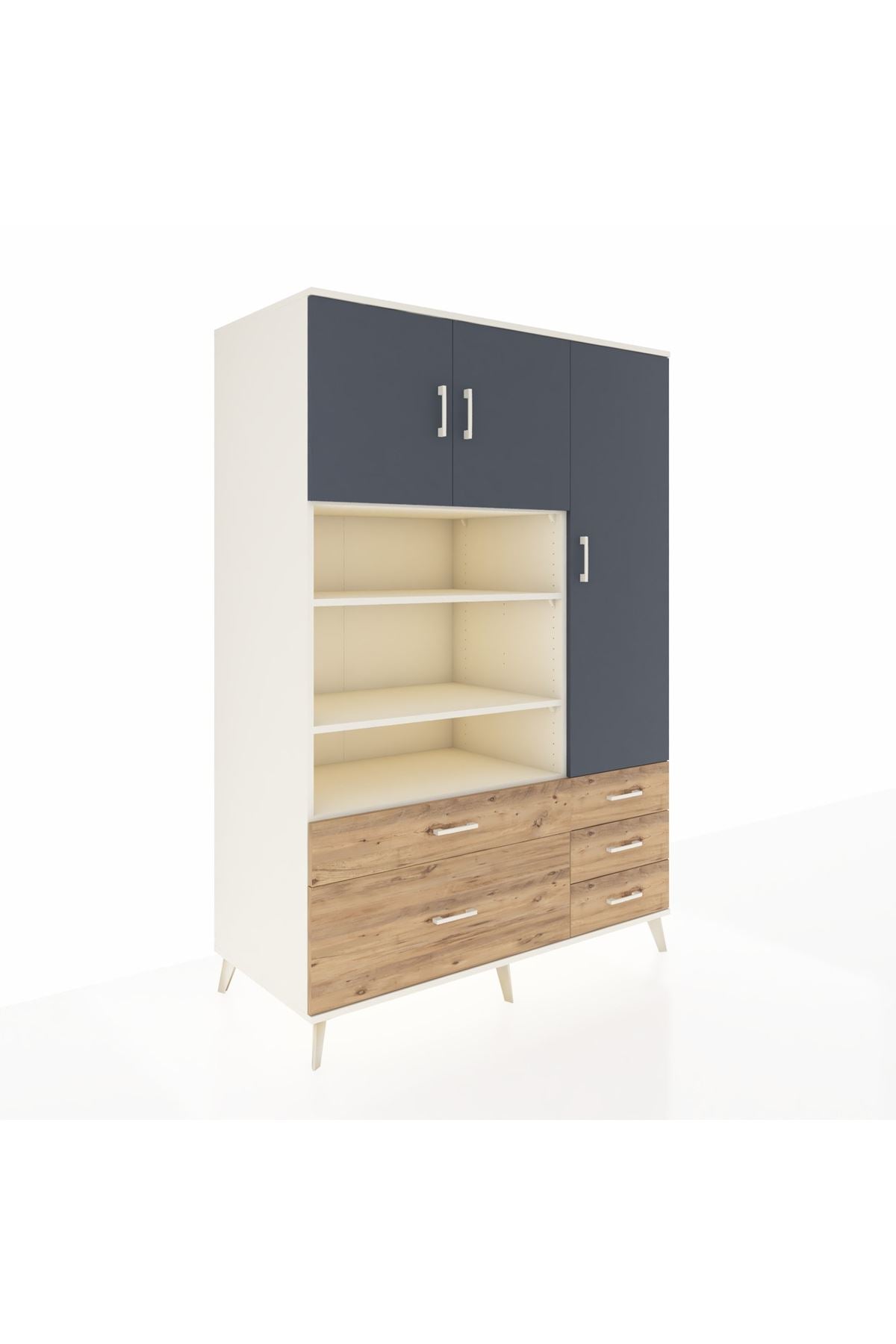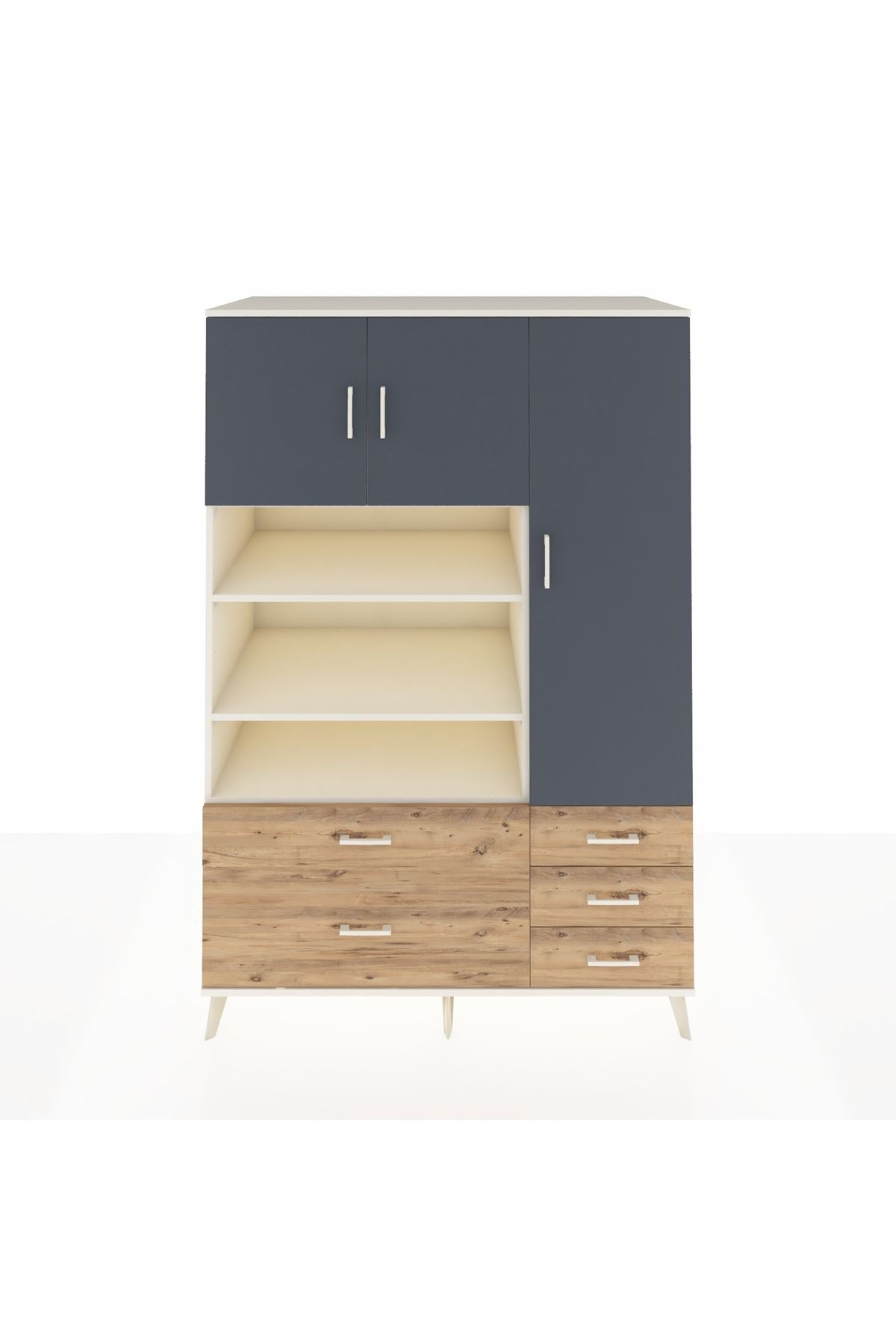 Kronos Dolap 9 Raflı 5 Çekmeceli 3 Kapaklı 132x59x195 Aytaşı-Antrasit/Çam