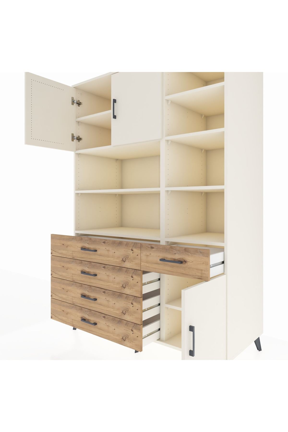🪐 Kronos Dolap 9 Raflı 5 Çekmeceli 3 Kapaklı 132x59x195 Aytaşı-Aytaşı/Çam: Fonksiyon ve Zarafet Buluşuyor!