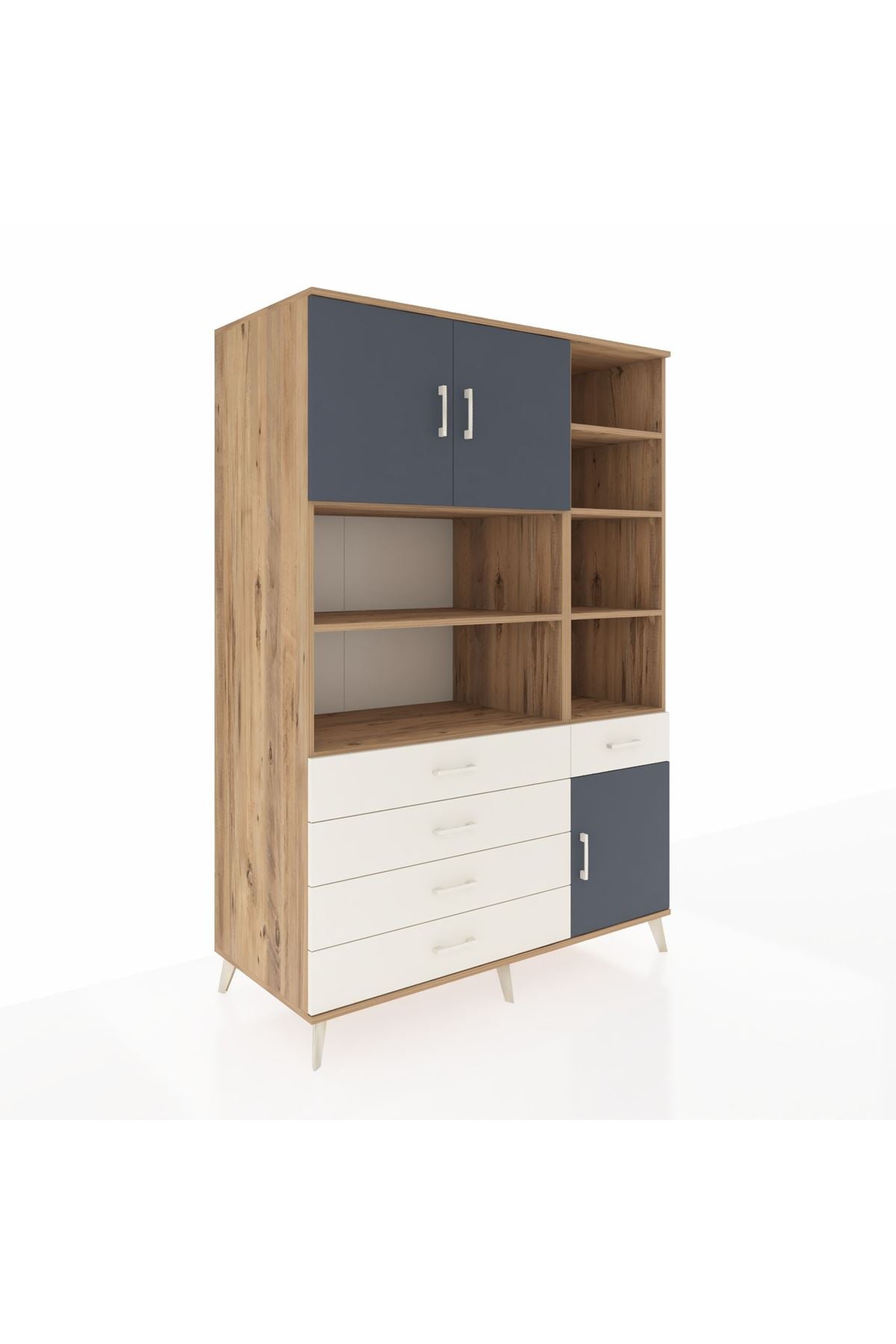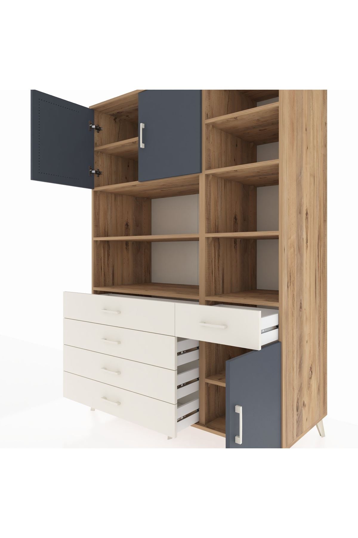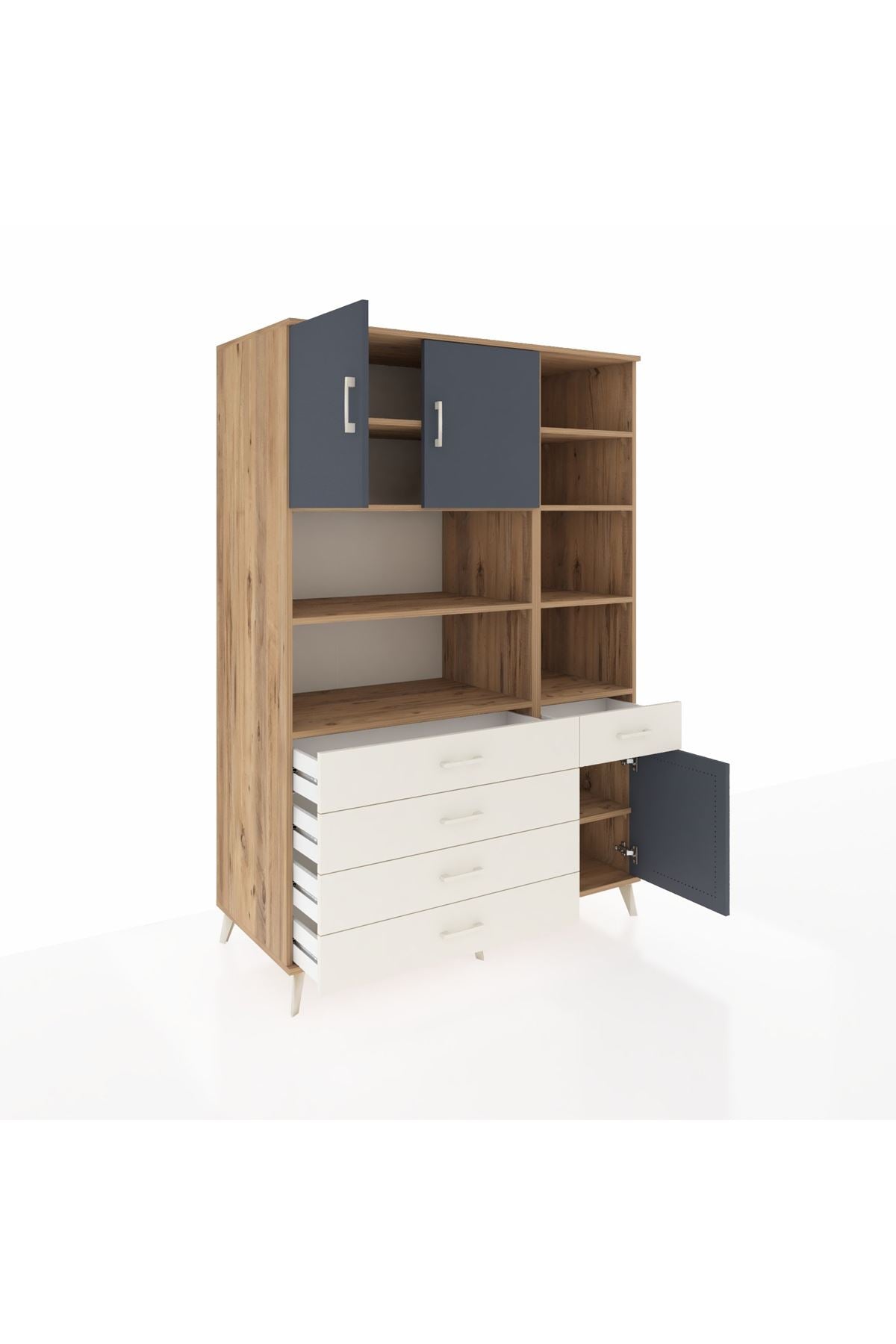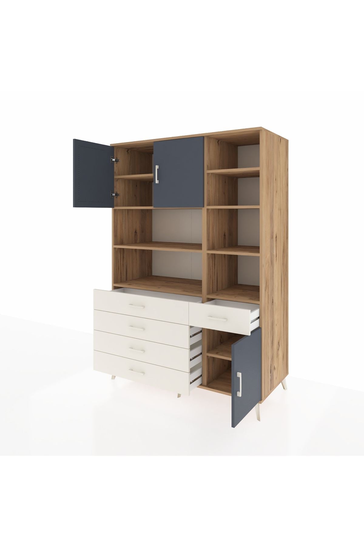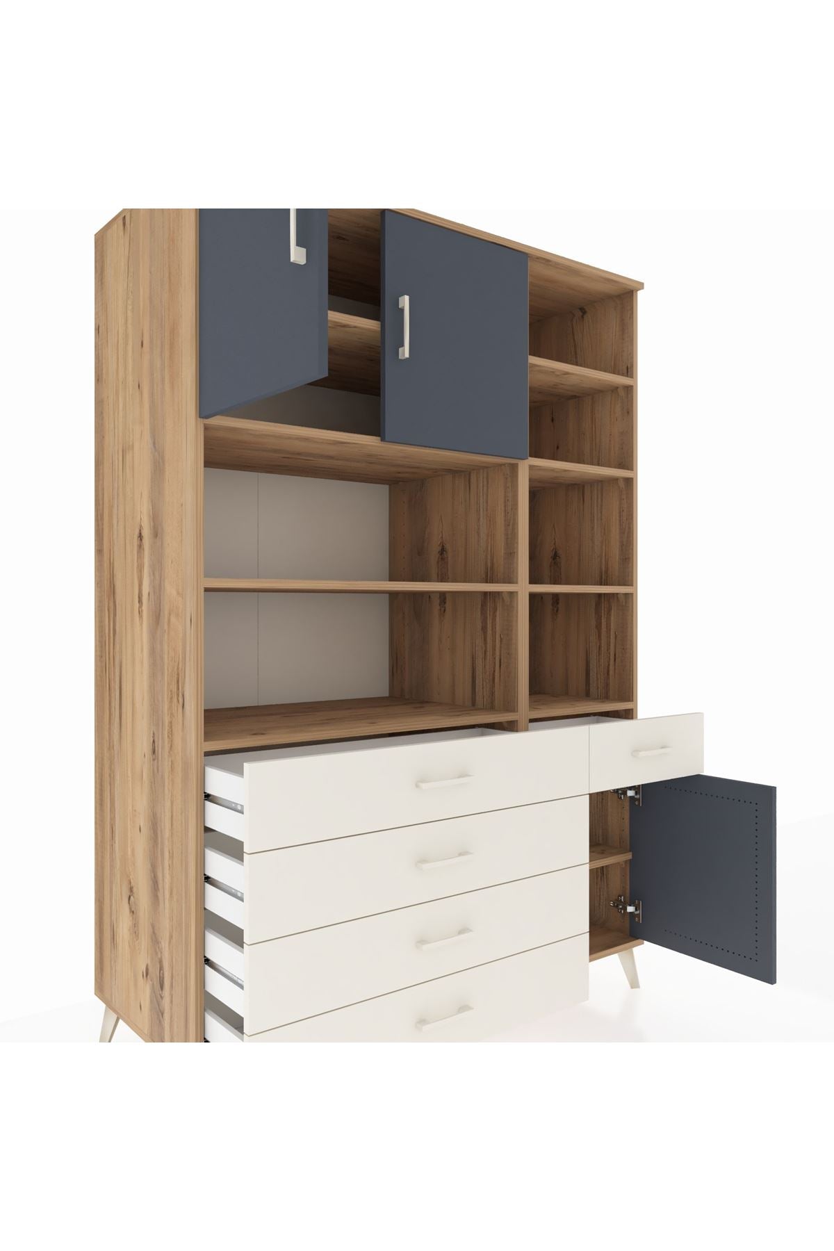 Kronos Dolap 9 Raflı 5 Çekmeceli 3 Kapaklı 132x59x195 Çam-Antrasit/Aytaşı