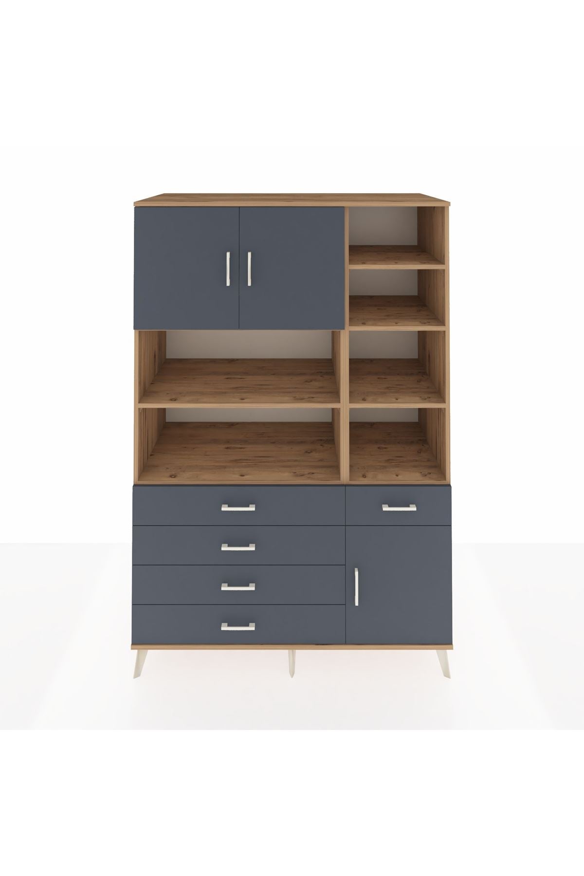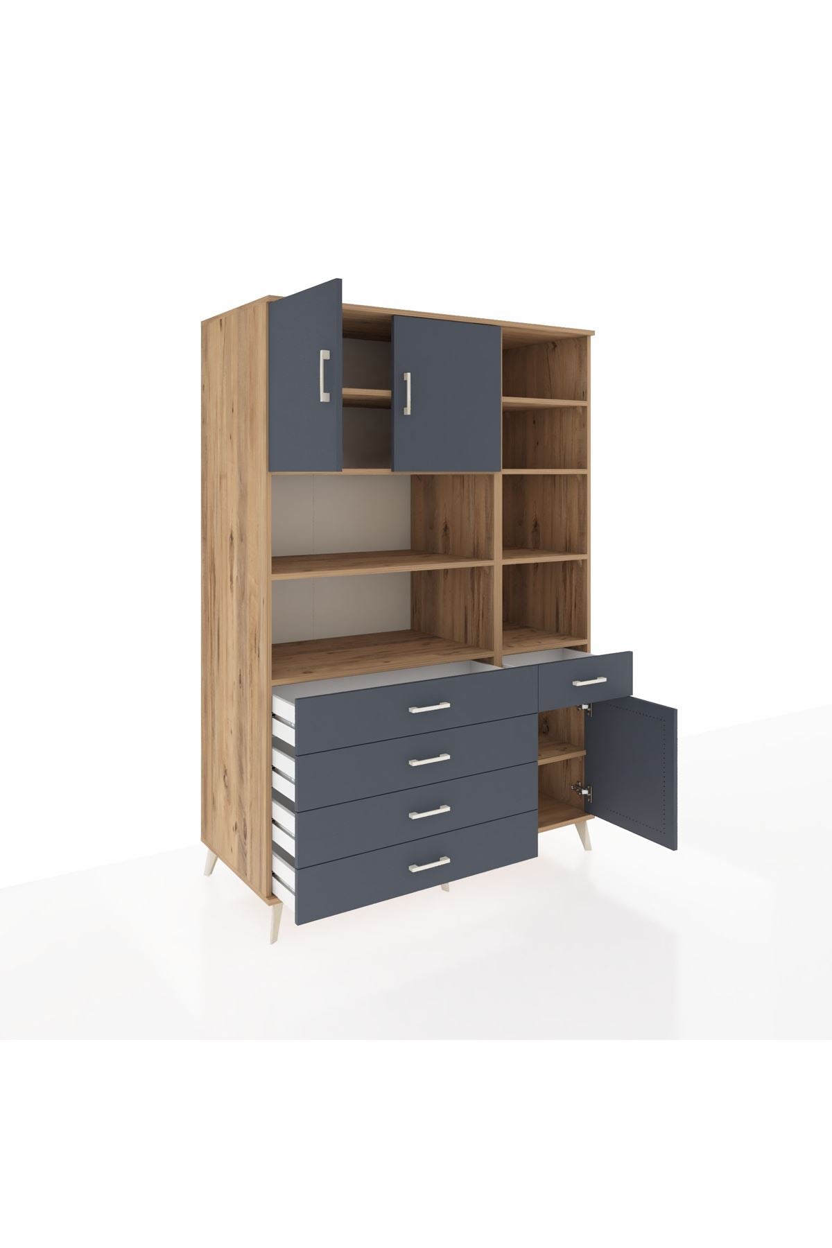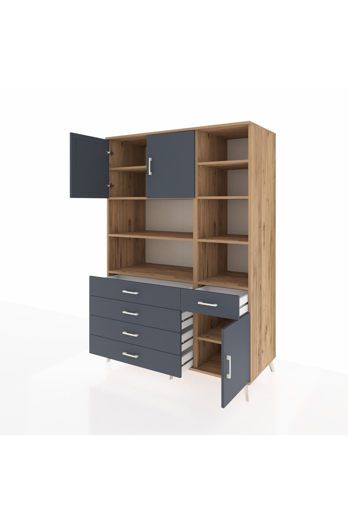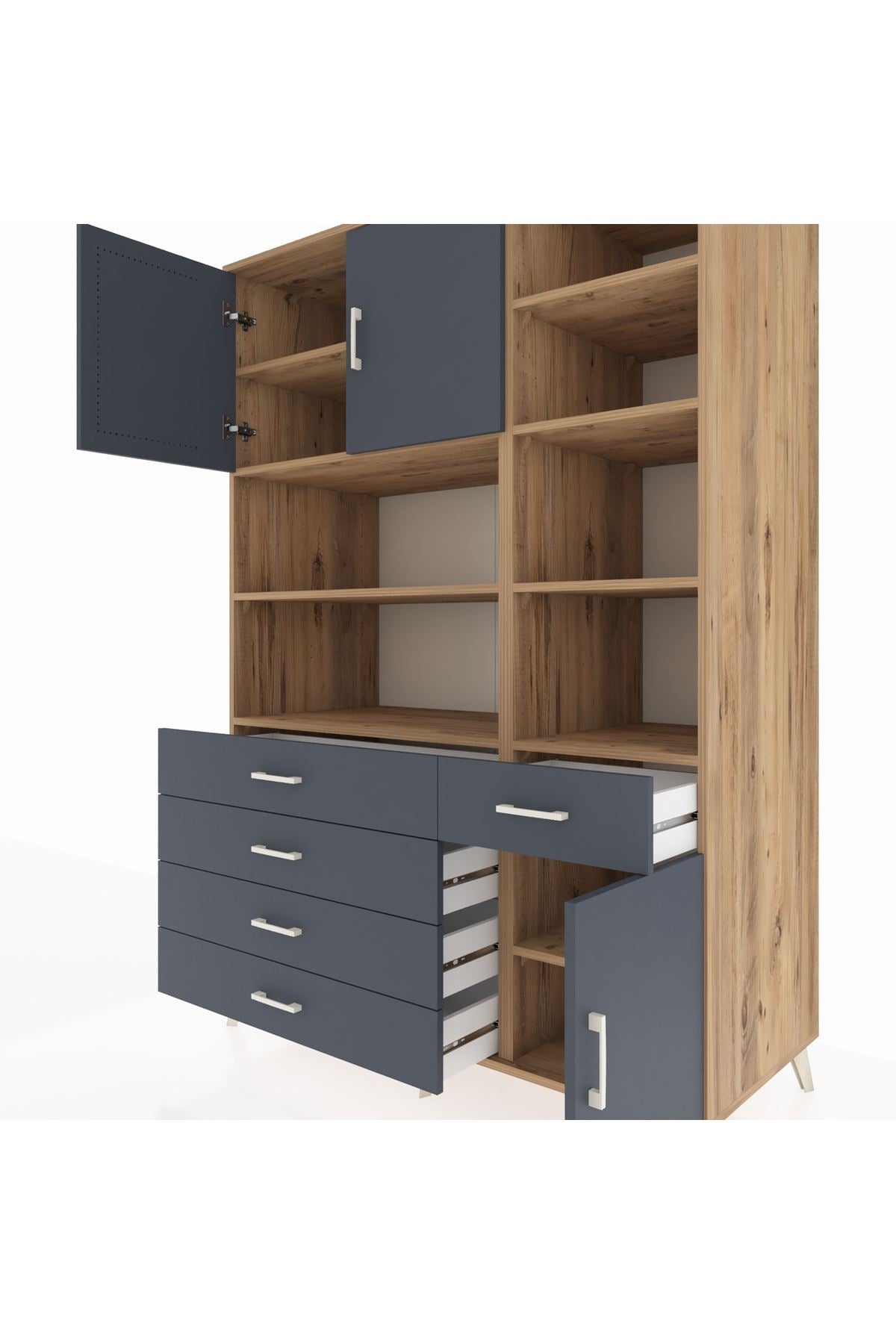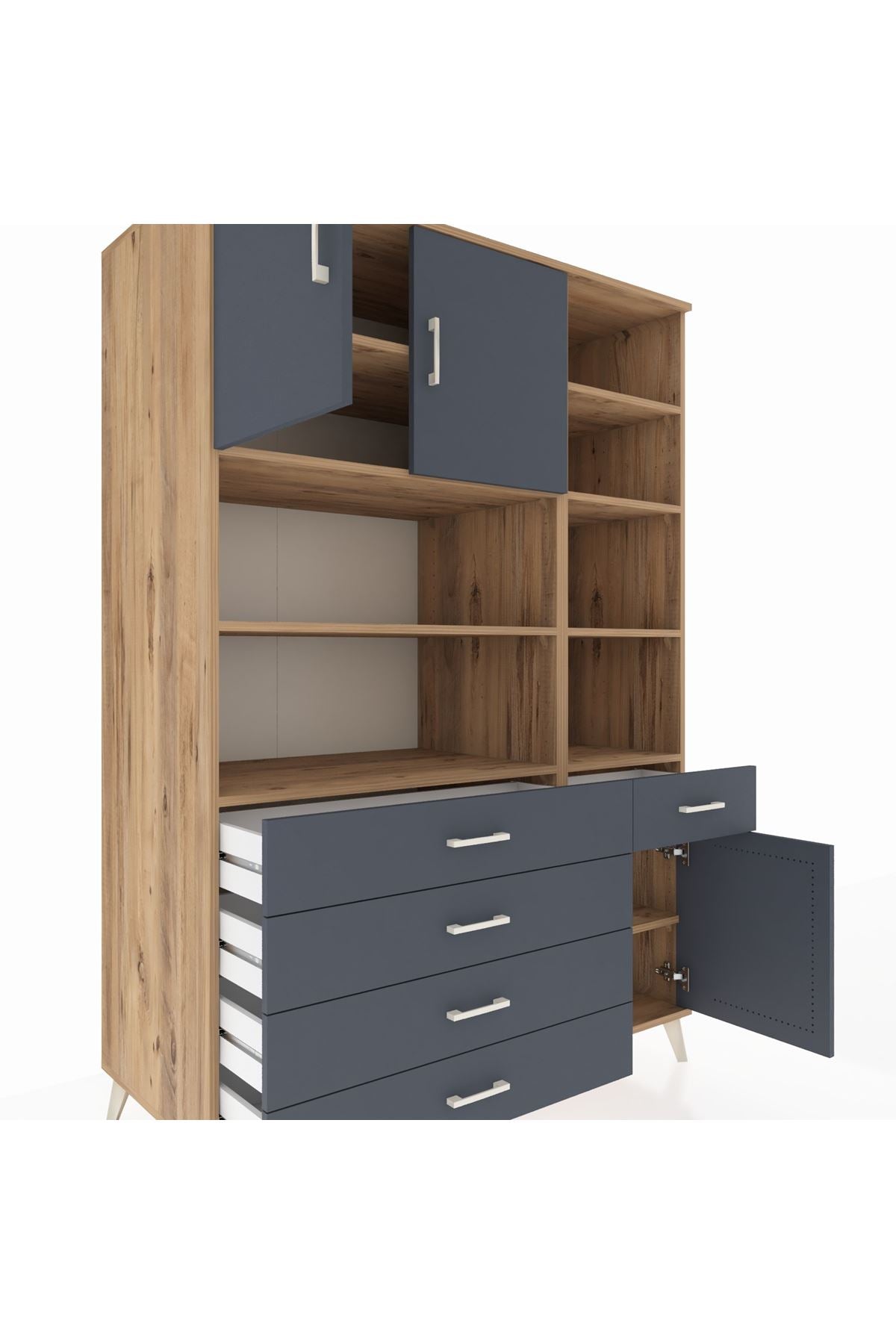 Kronos Dolap 9 Raflı 5 Çekmeceli 3 Kapaklı 132x59x195 Çam-Antrasit/Antrasit
