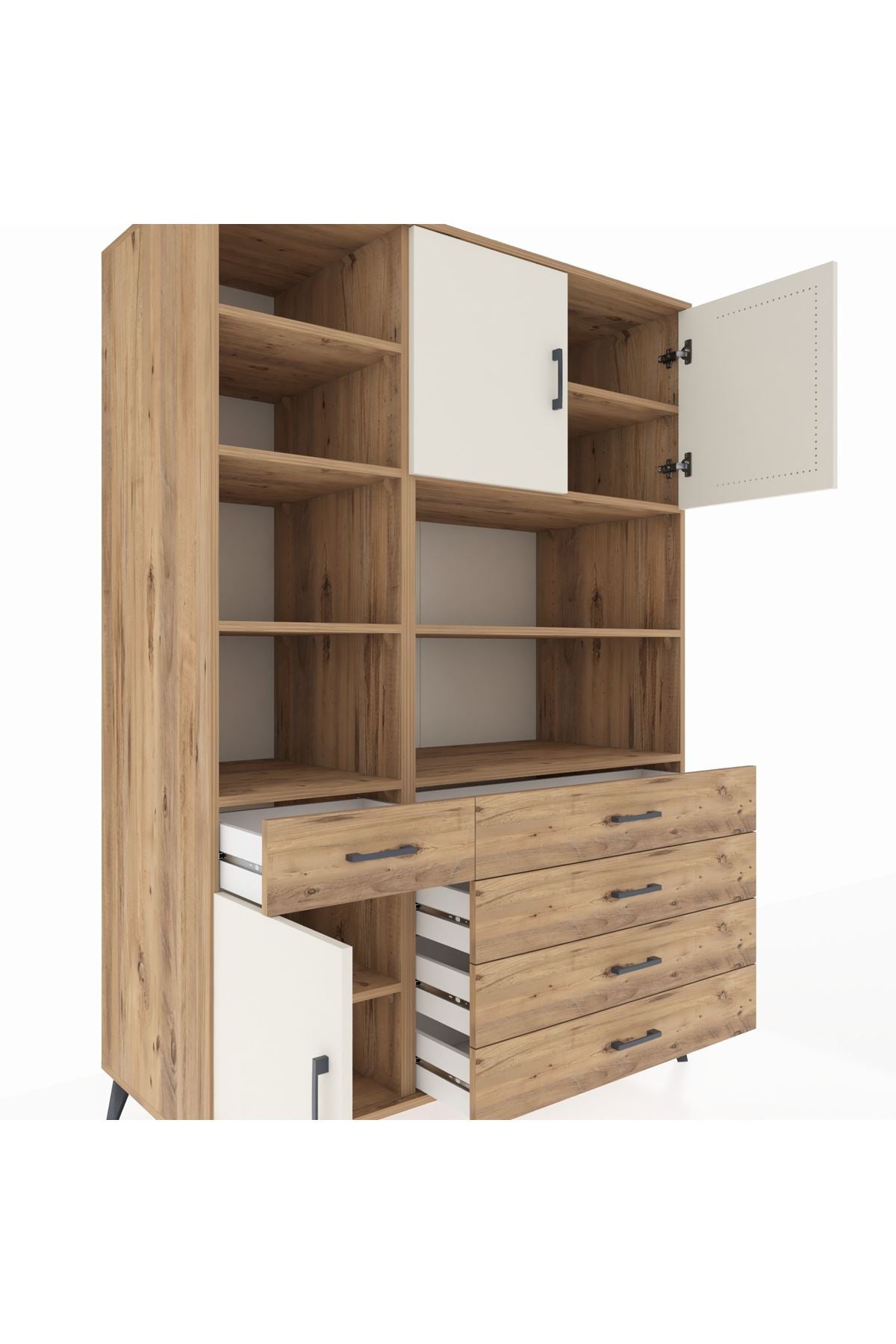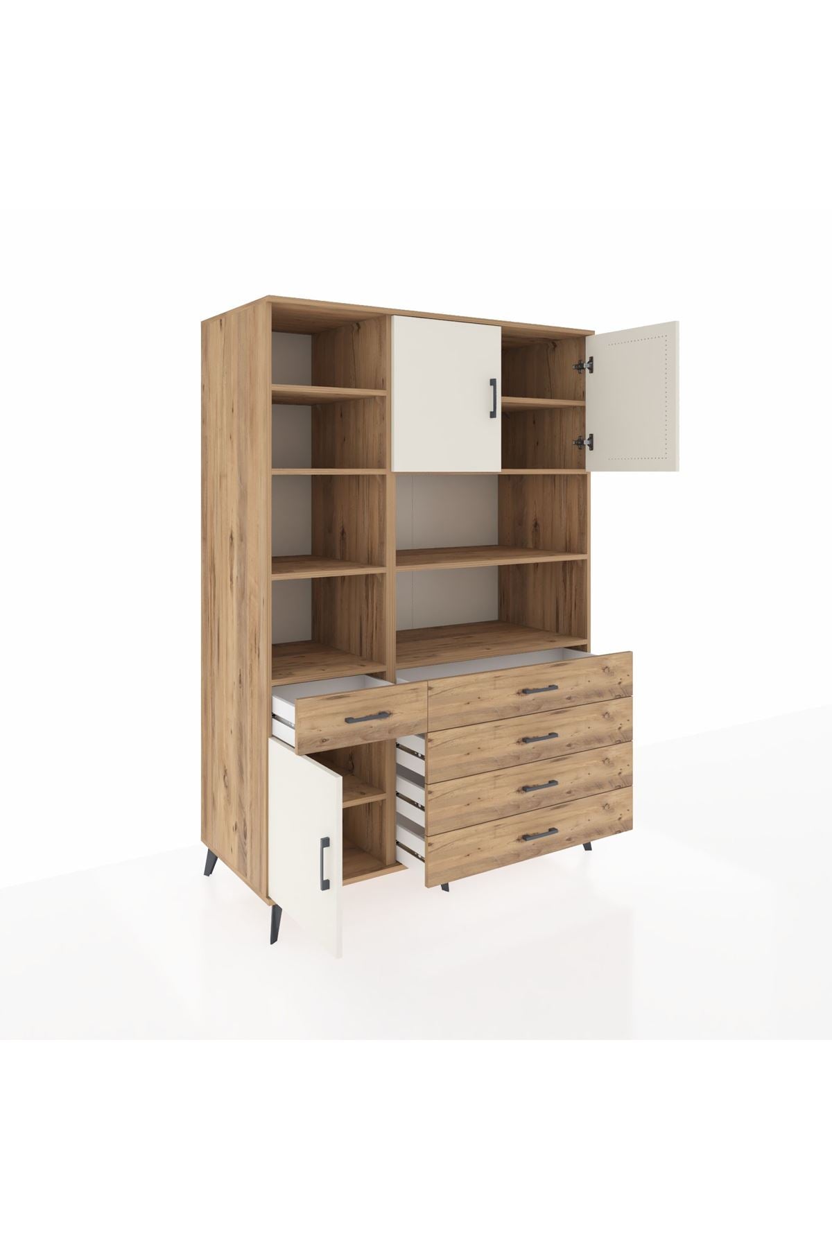 Kronos Dolap 9 Raflı 5 Çekmeceli 3 Kapaklı 132x59x195 Çam-Aytaşı/Çam
