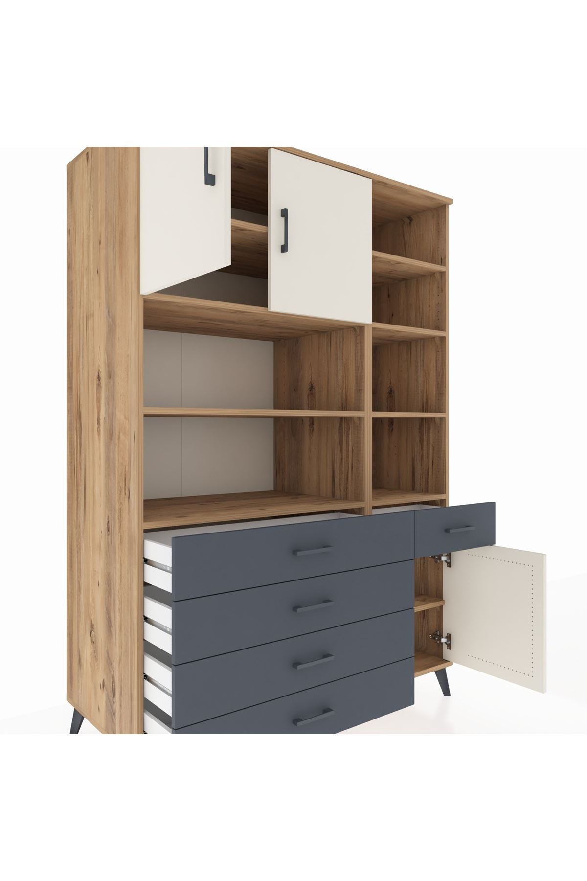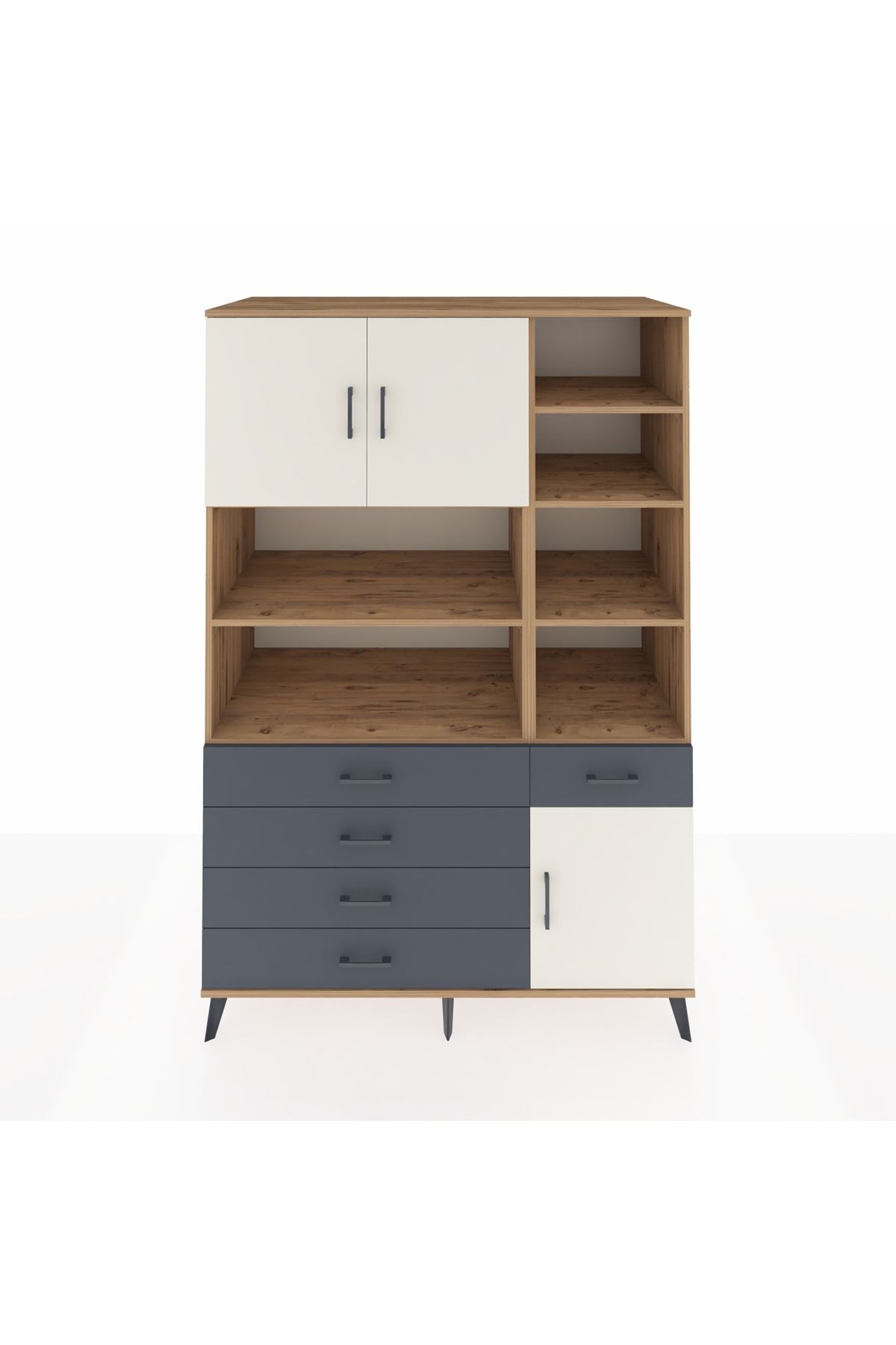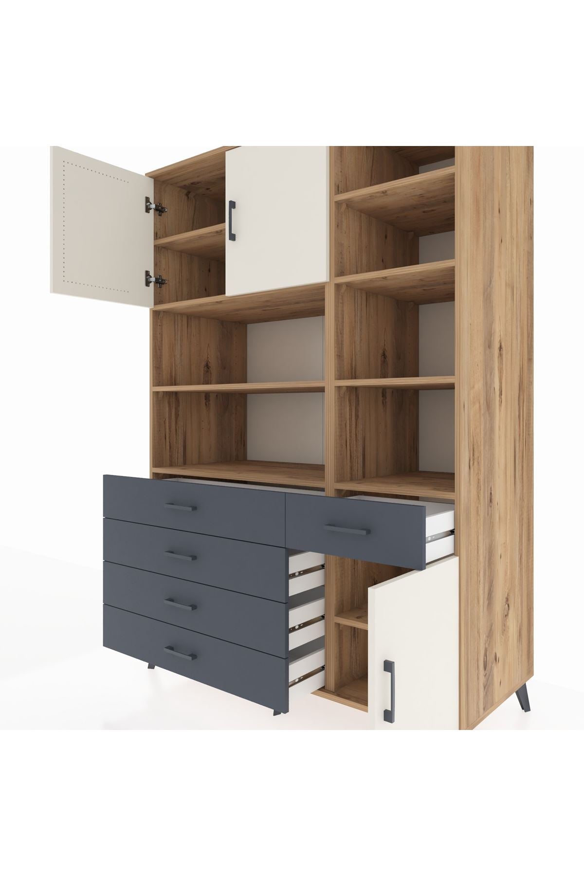 Kronos Dolap 9 Raflı 5 Çekmeceli 3 Kapaklı 132x59x195 Çam-Aytaşı/Antrasit