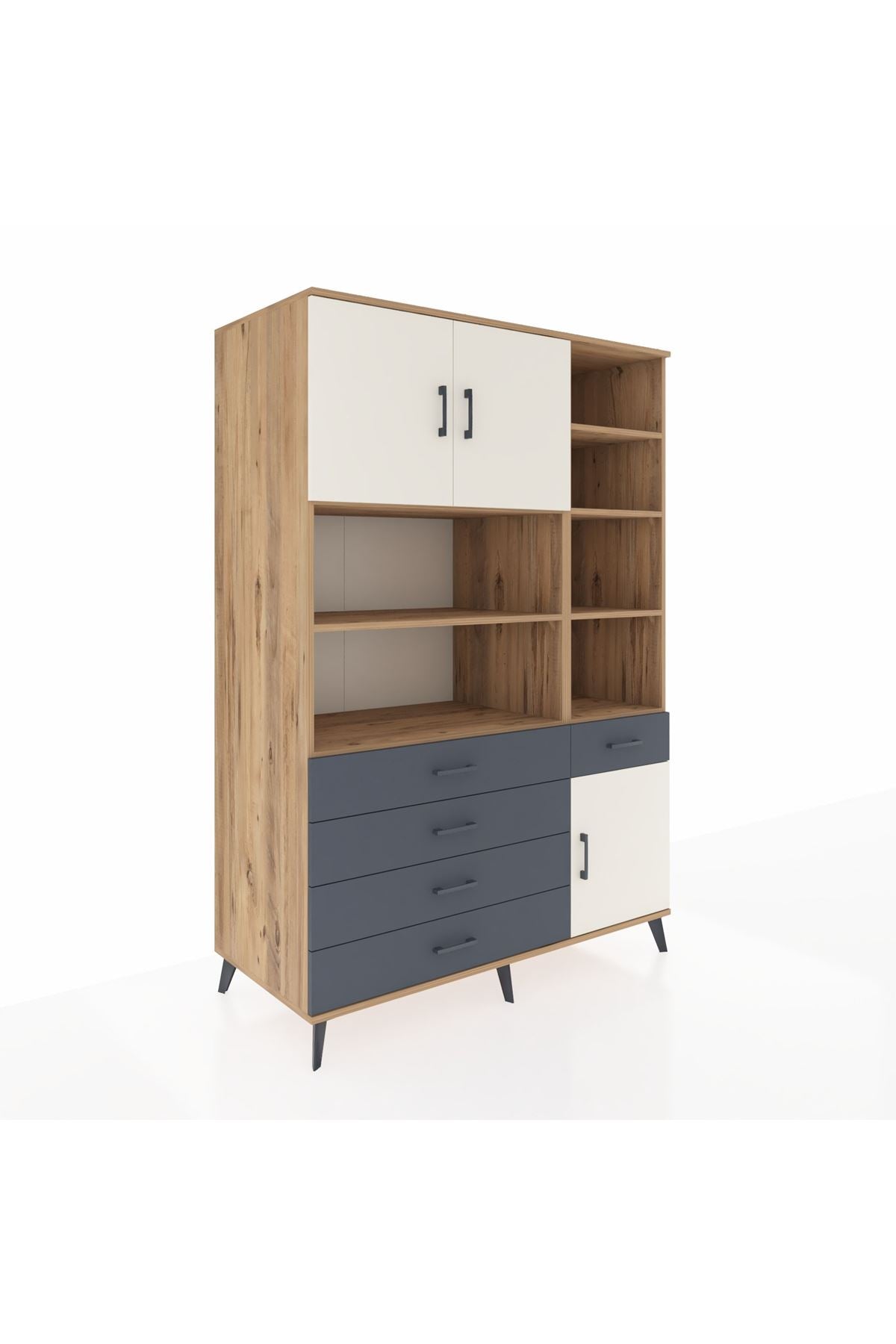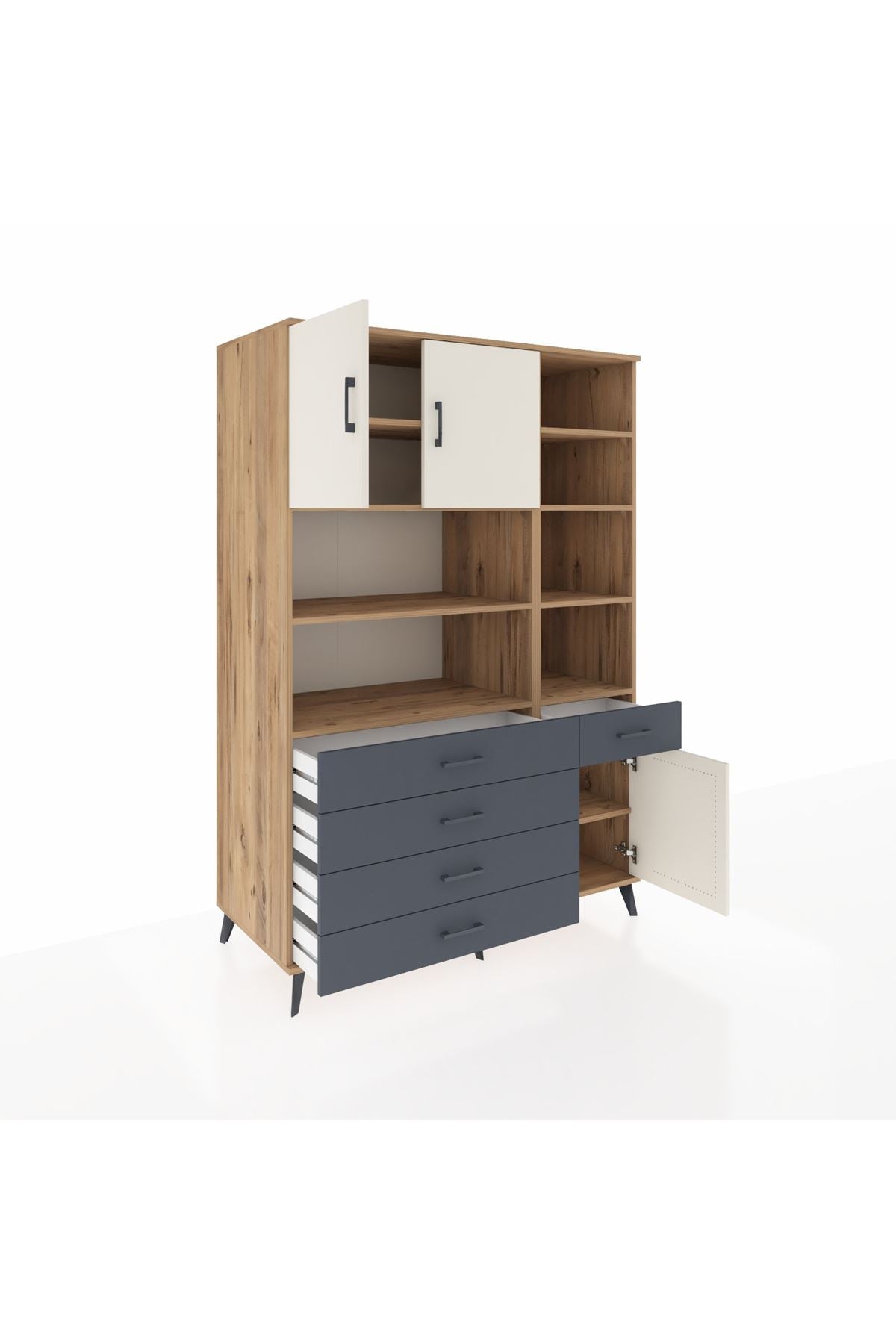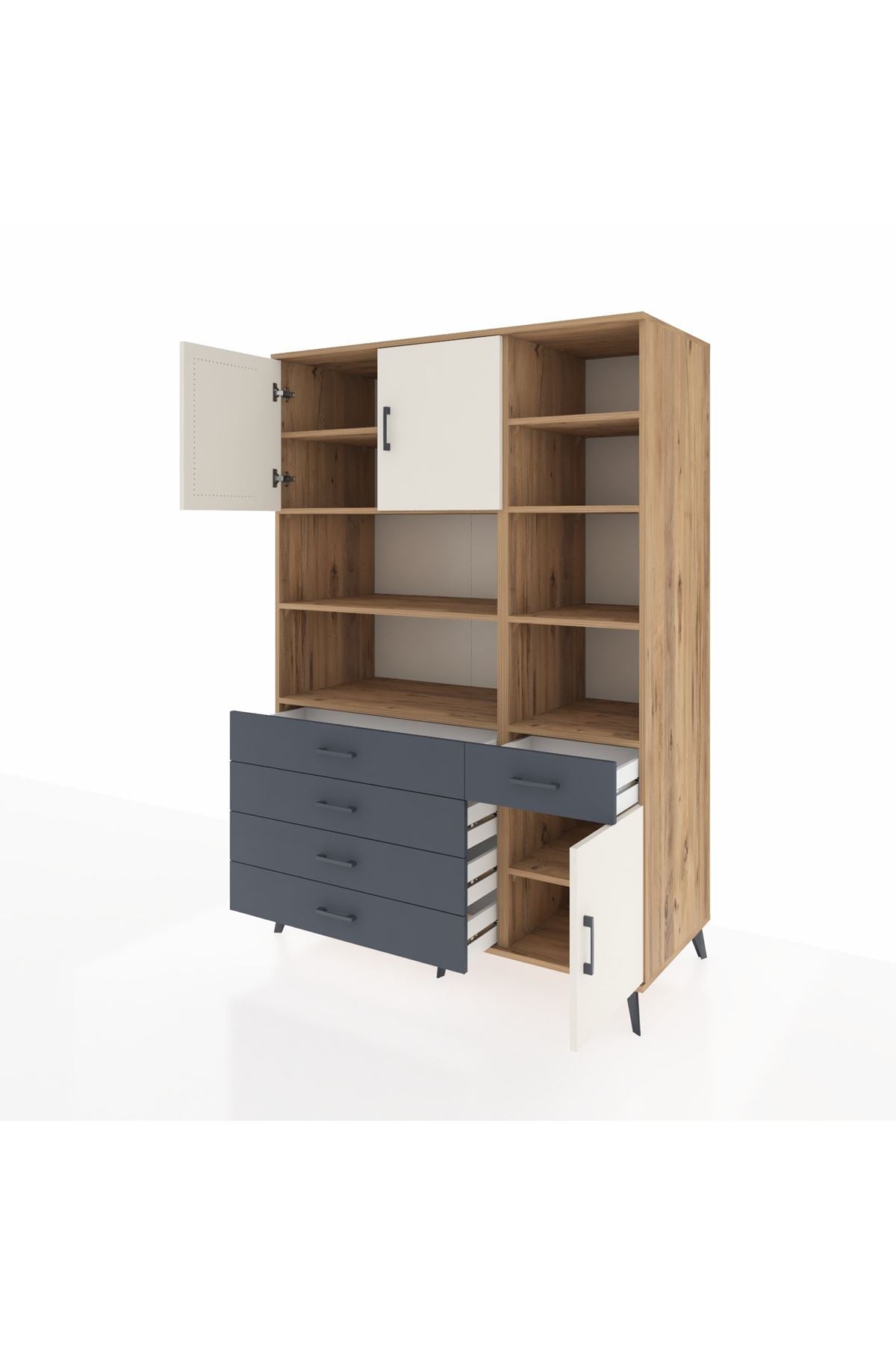 Kronos Dolap 9 Raflı 5 Çekmeceli 3 Kapaklı 132x59x195 Çam-Aytaşı/Antrasit