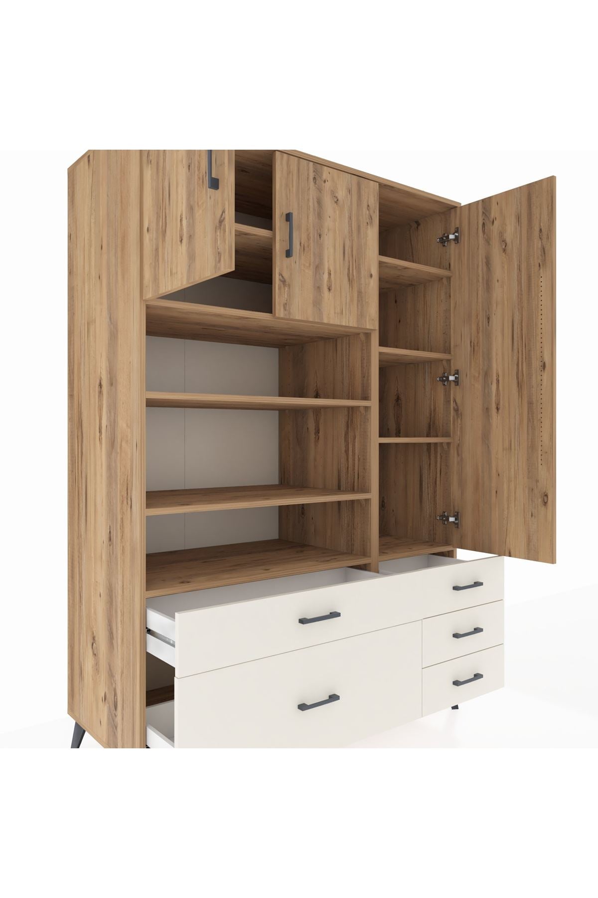 Kronos Dolap 9 Raflı 5 Çekmeceli 3 Kapaklı 132x59x195 Çam-Çam/Aytaşı