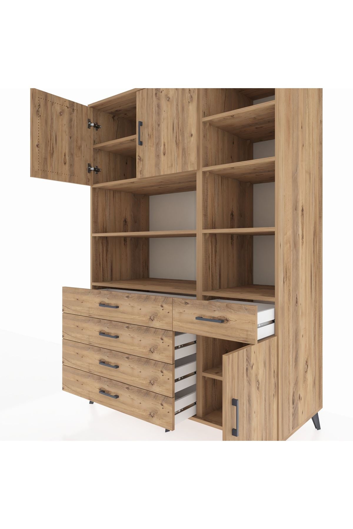 Kronos Dolap 9 Raflı 5 Çekmeceli 3 Kapaklı 132x59x195 Çam-Çam/Çam