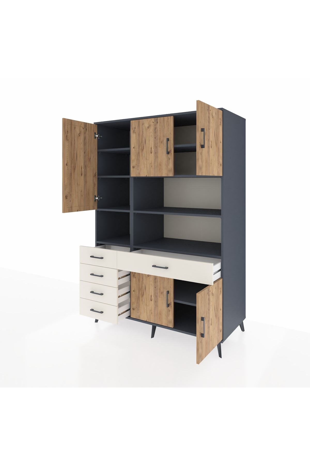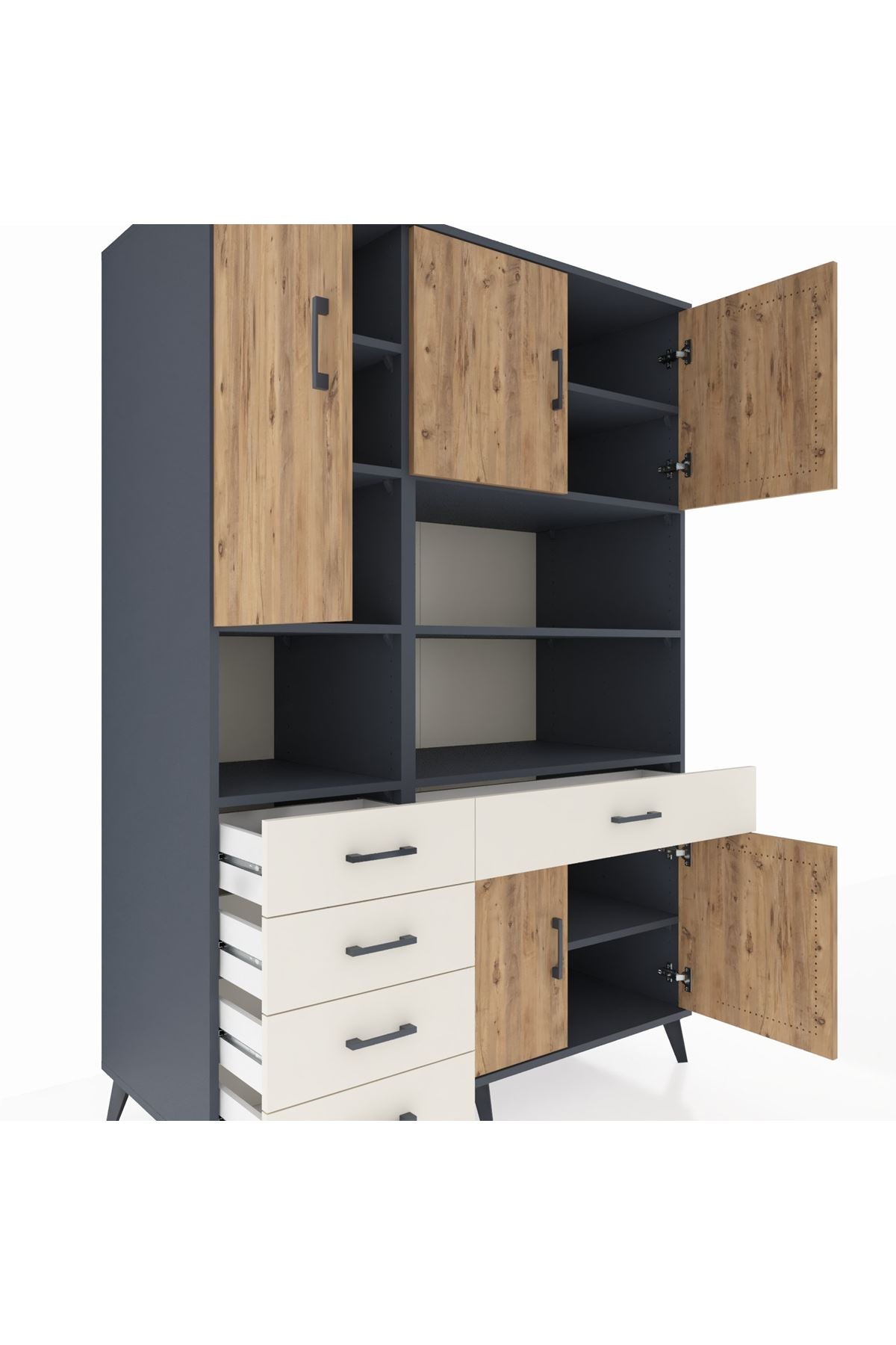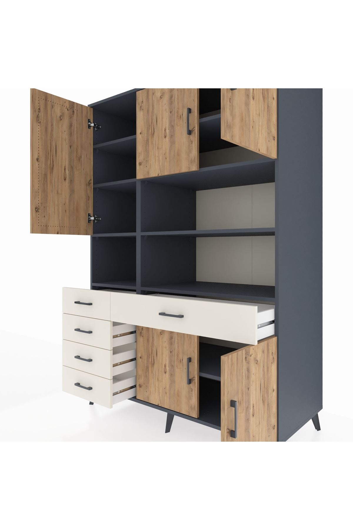 Kronos Dolap 9 Raflı 5 Çekmeceli 5 Kapaklı 132x59x195 Antrasit-Çam/Aytaşı