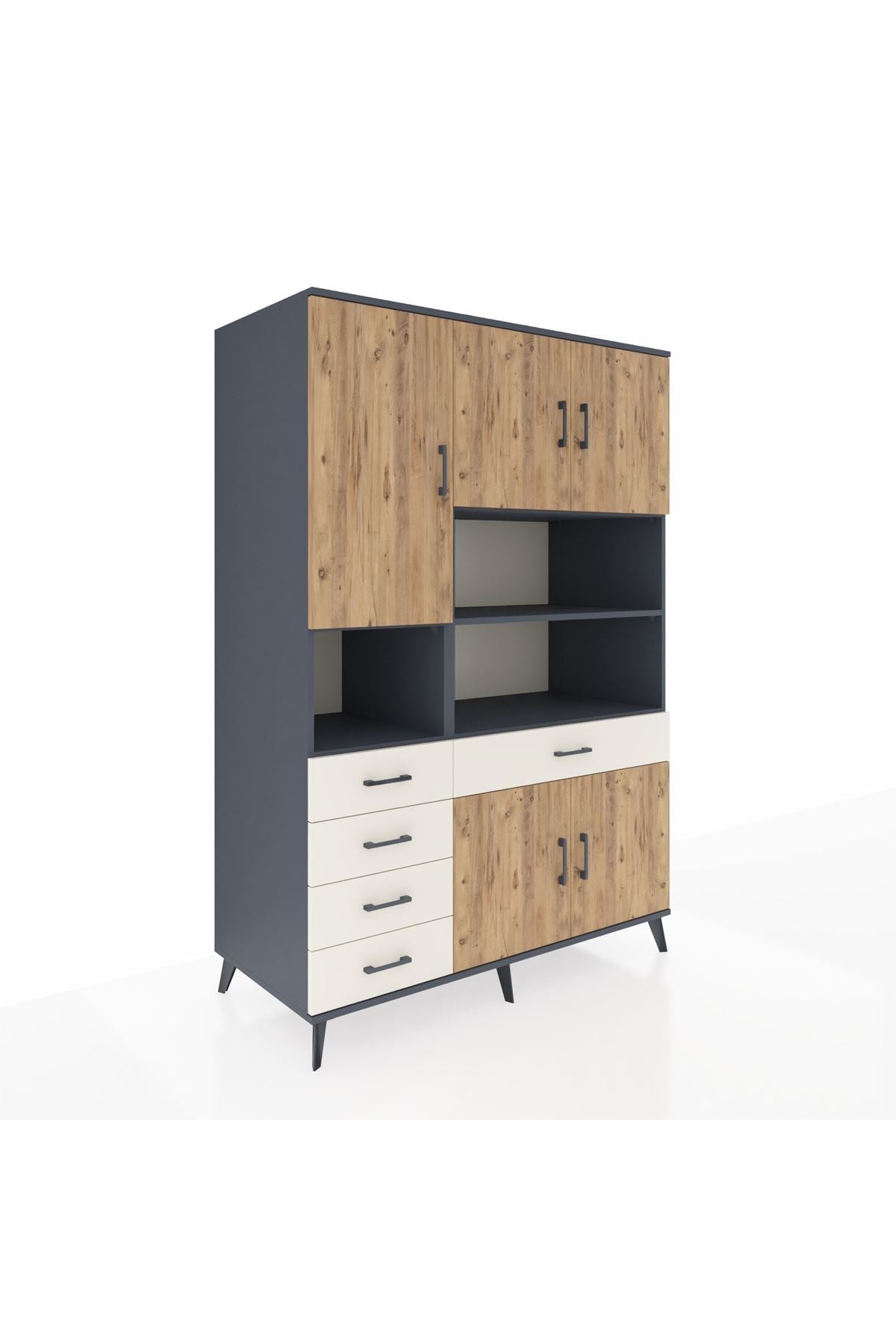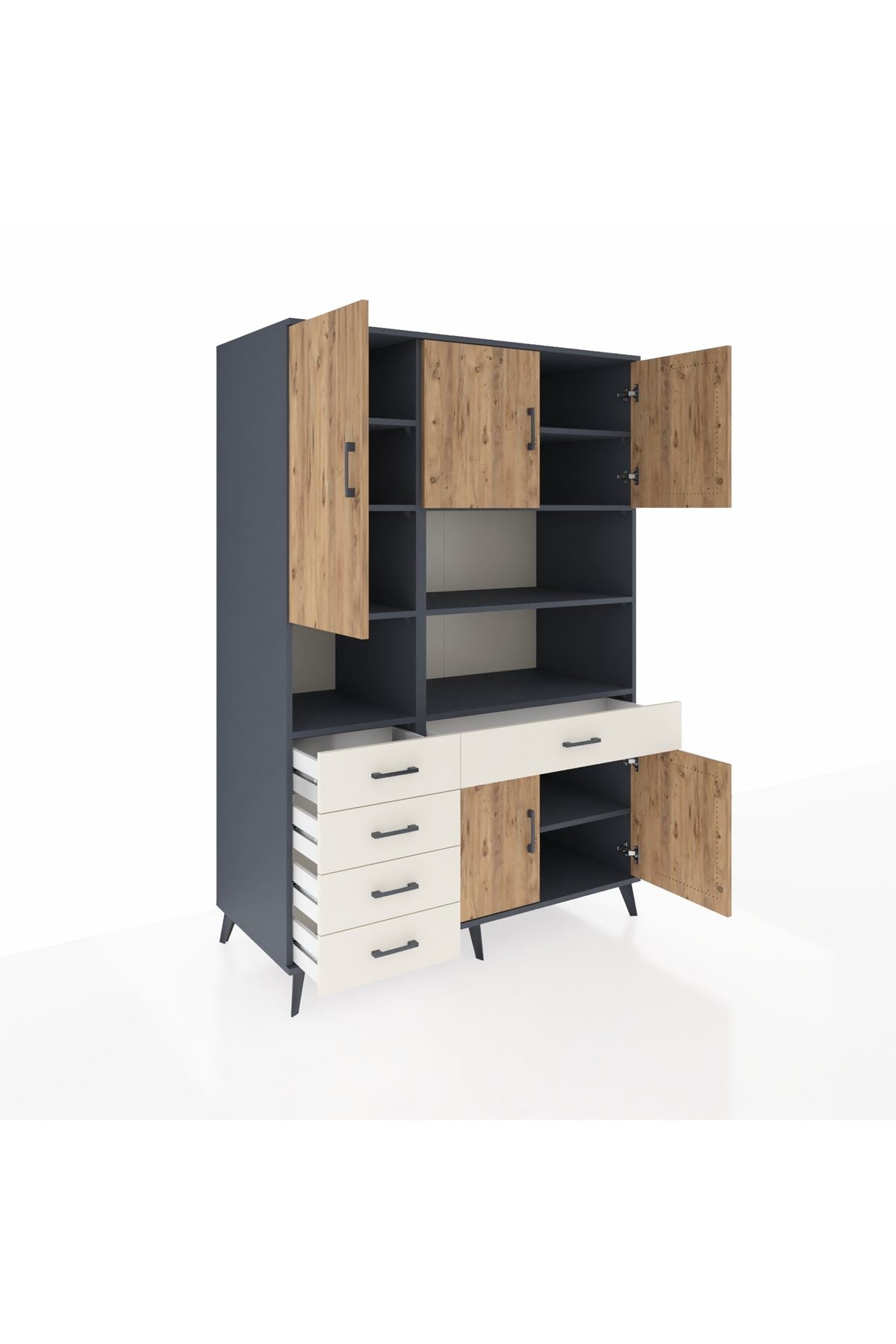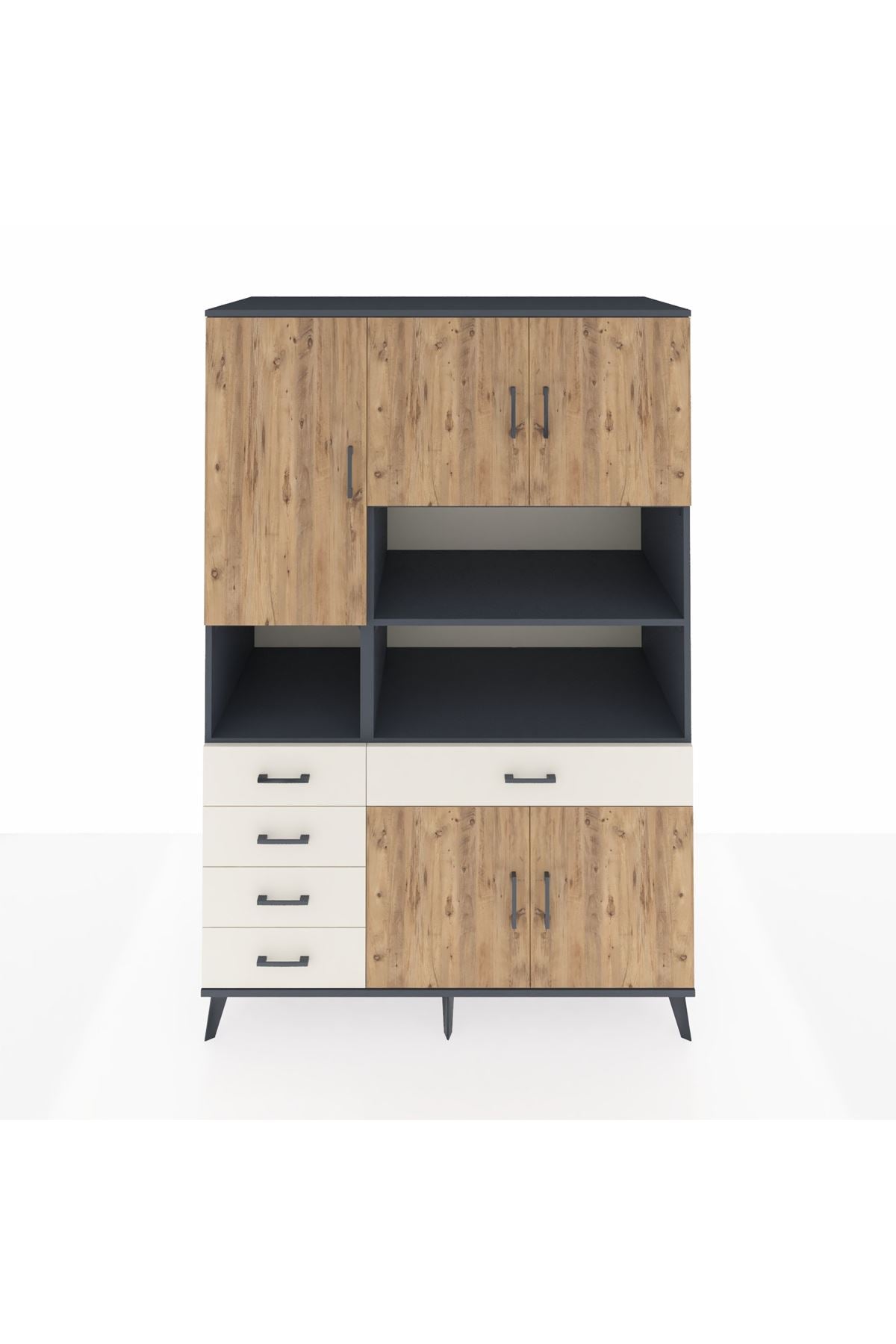 Kronos Dolap 9 Raflı 5 Çekmeceli 5 Kapaklı 132x59x195 Antrasit-Çam/Aytaşı