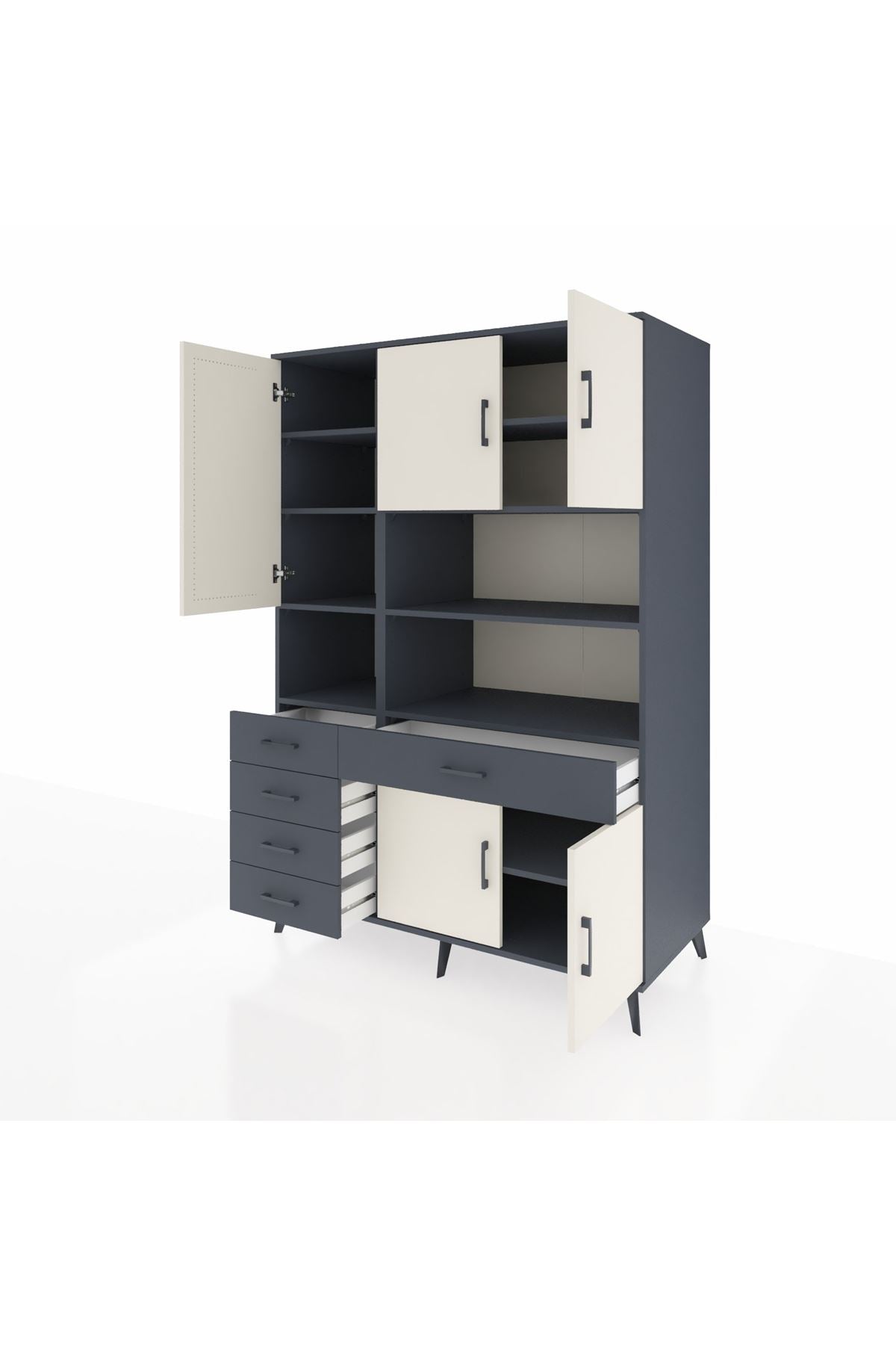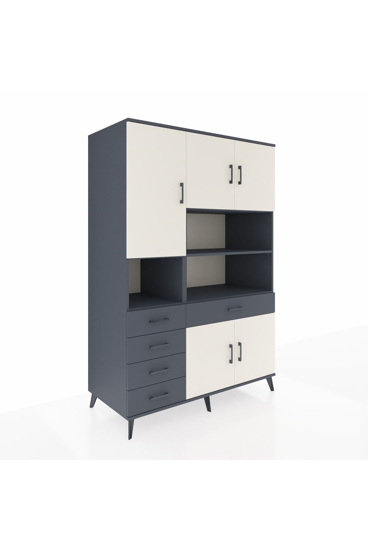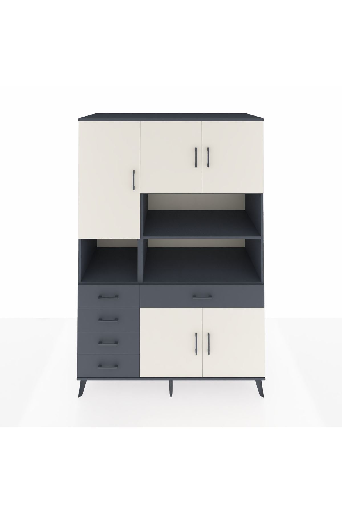 Tüm gövde ve kapaklarda 1. sınıf Kastamonu entegre suntalam kullanılmıştır. Antrasit ile aytaşı renklerinin uyumu, hem şık hem de zamansız bir görünüm kazandırır. Metal ayak ve metal kulplar sayesinde sağlamlık ve modernlik bir arada sunulur.