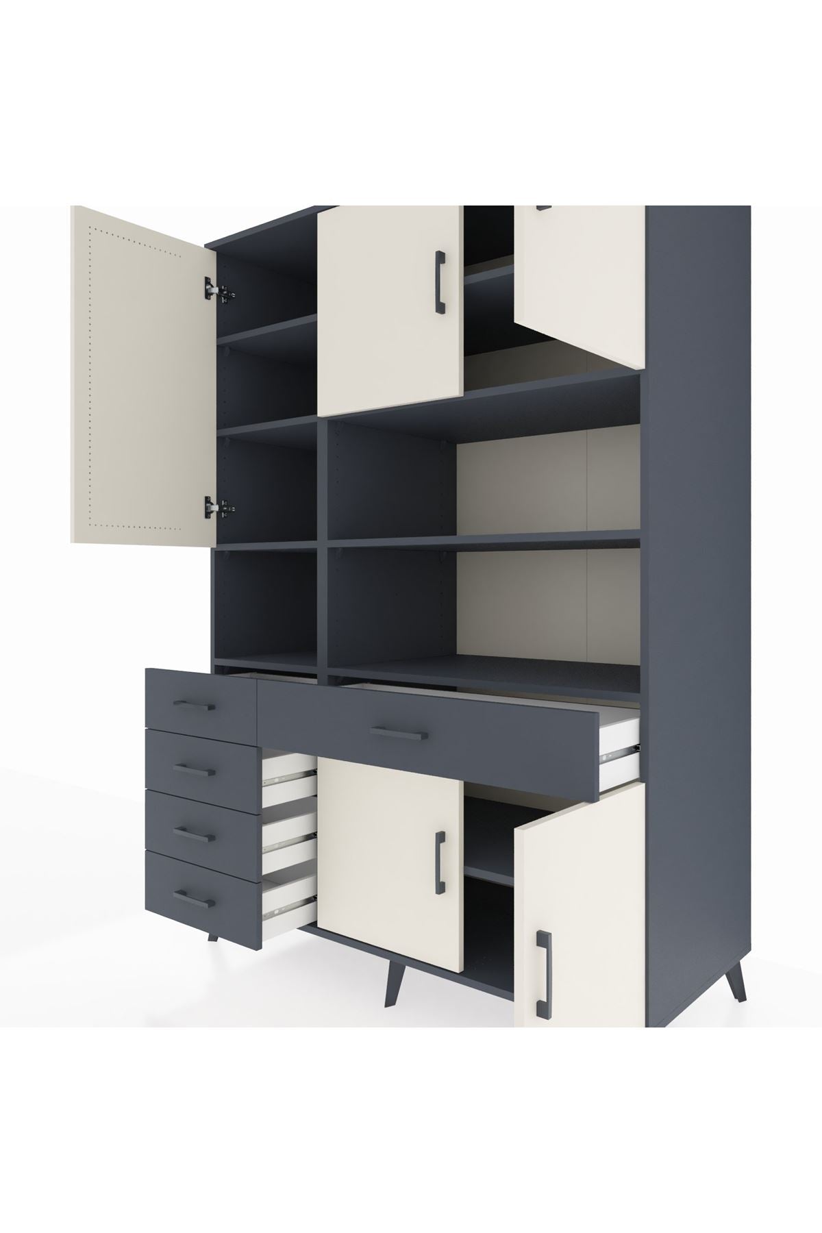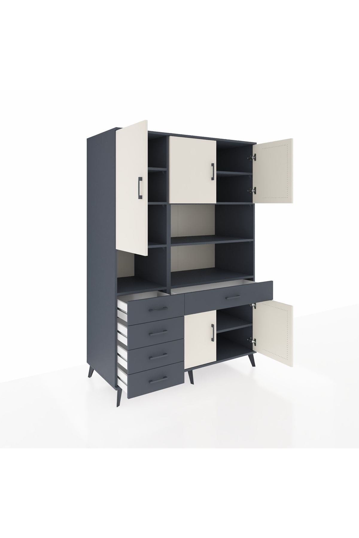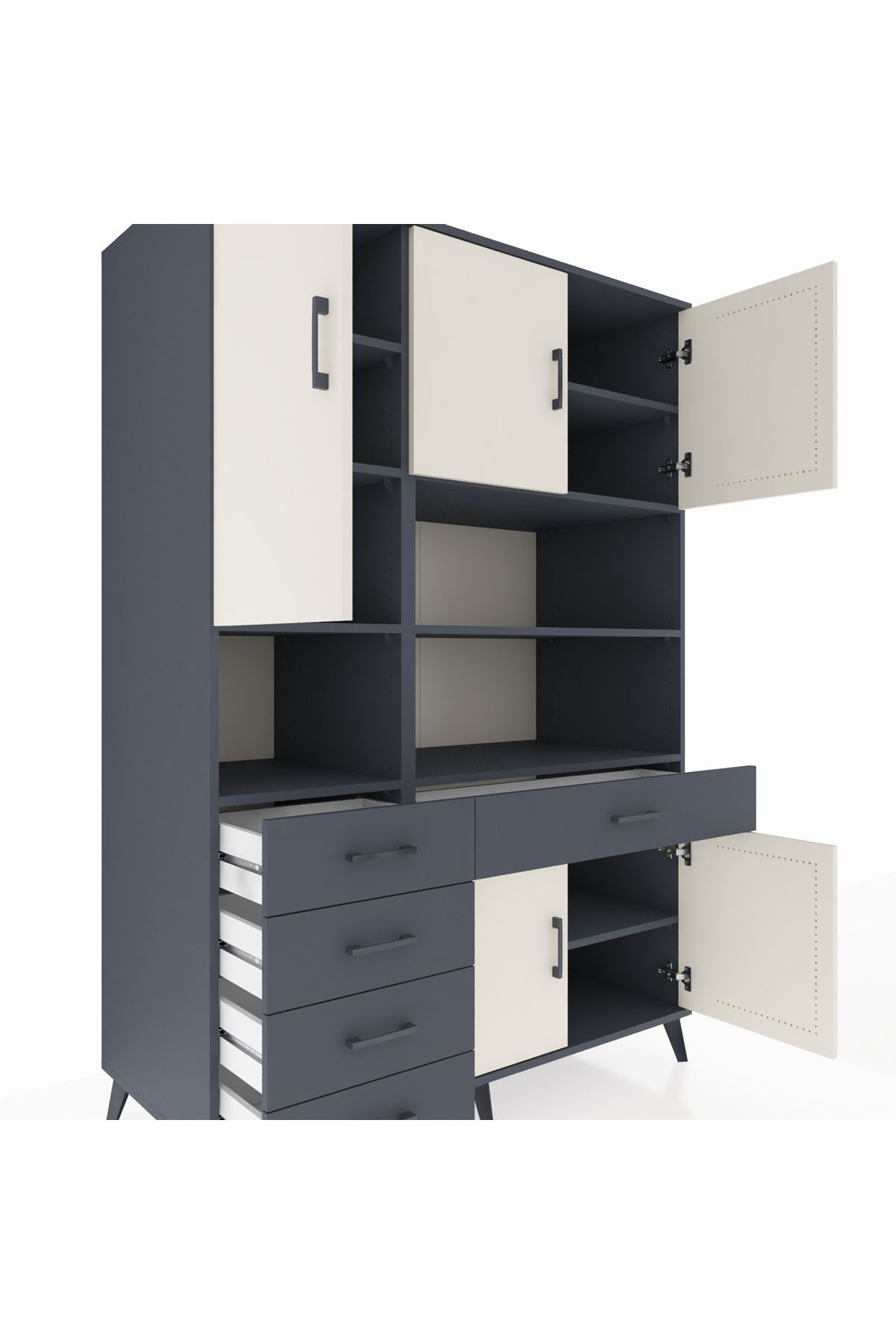 Kronos Dolap 9 Raflı 5 Çekmeceli 5 Kapaklı 132x59x195 Antrasit-Aytaşı/Antrasit
