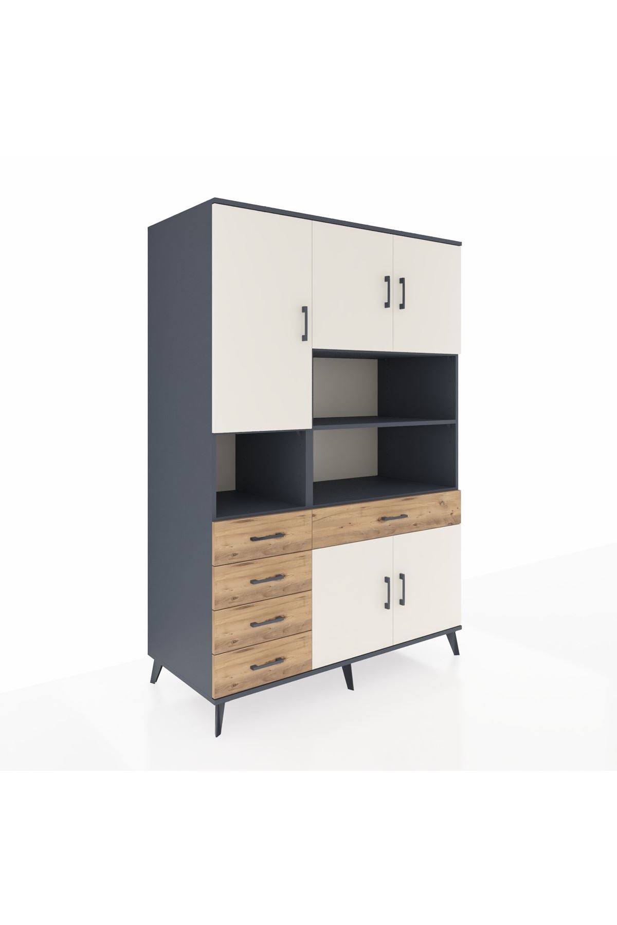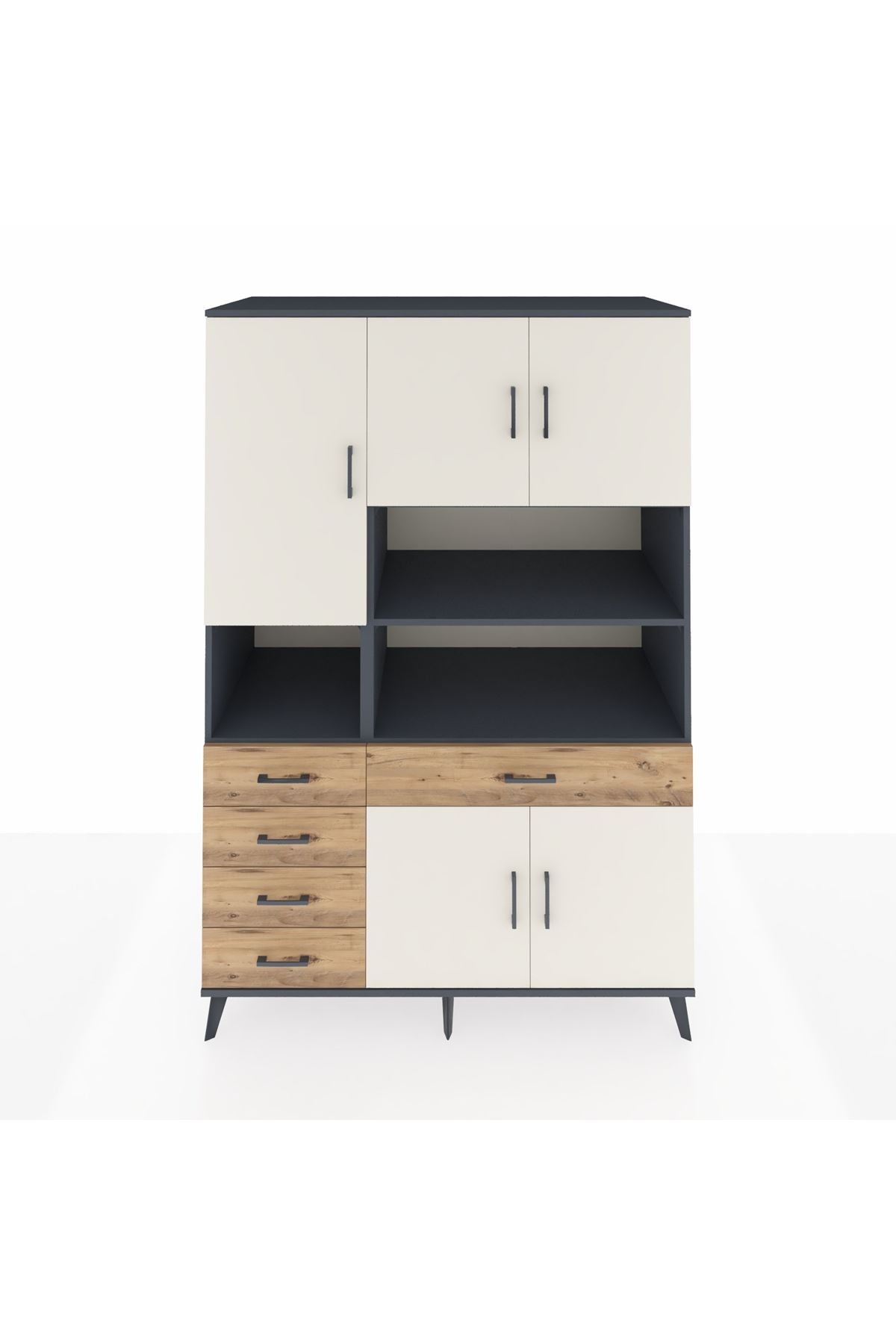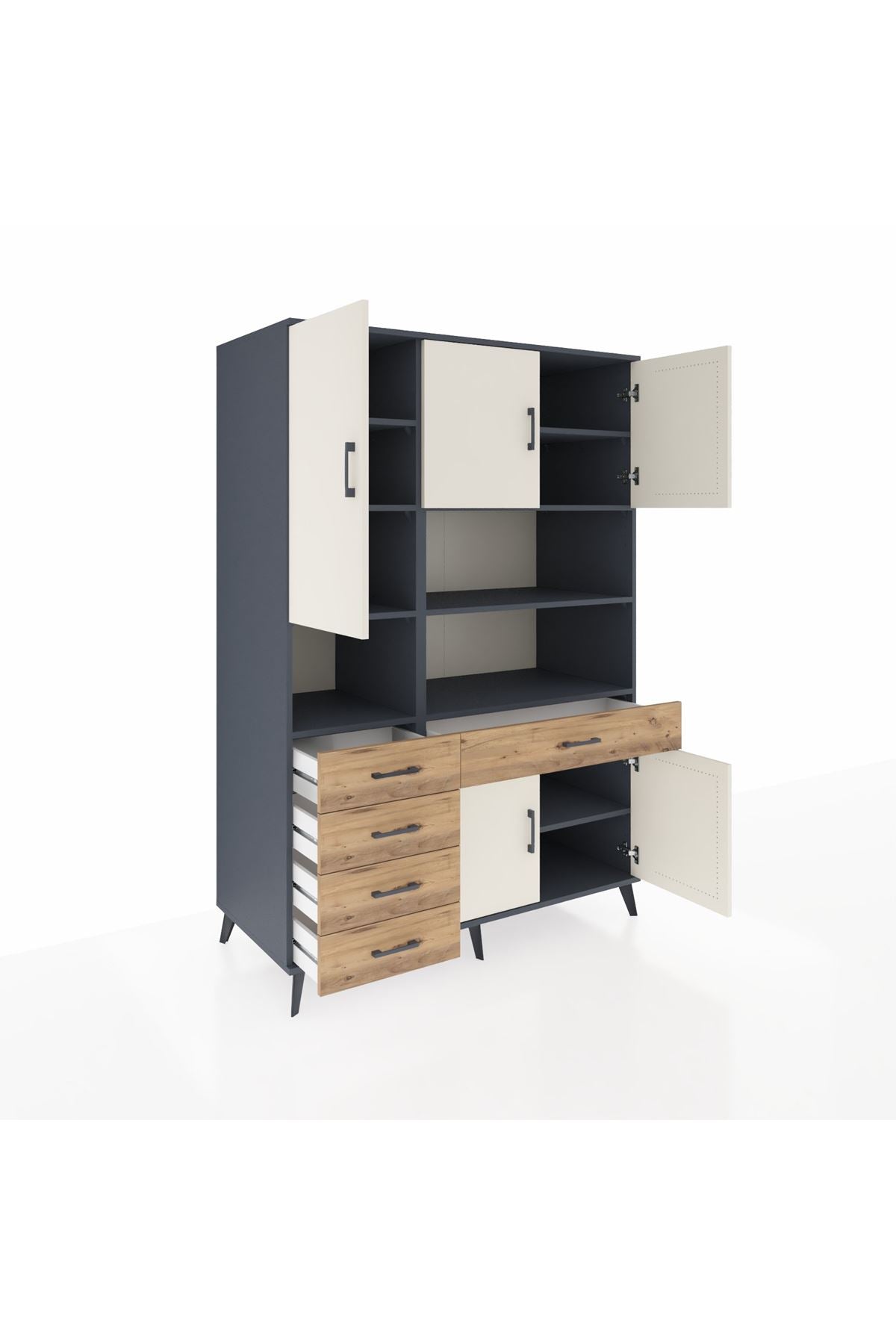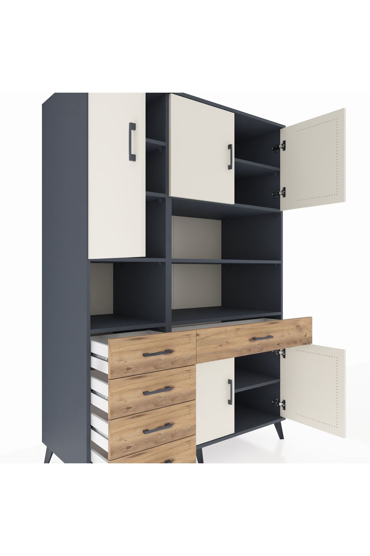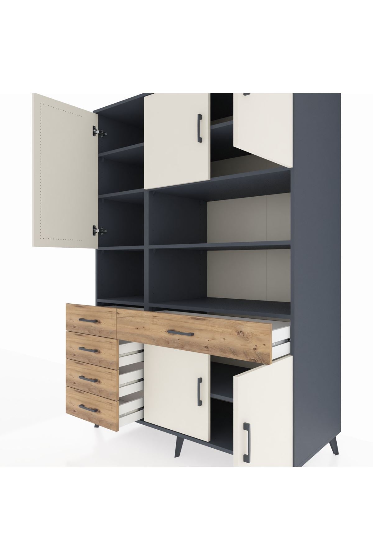 Kronos Dolap 9 Raflı 5 Çekmeceli 5 Kapaklı 132x59x195 Antrasit-Aytaşı/Çam