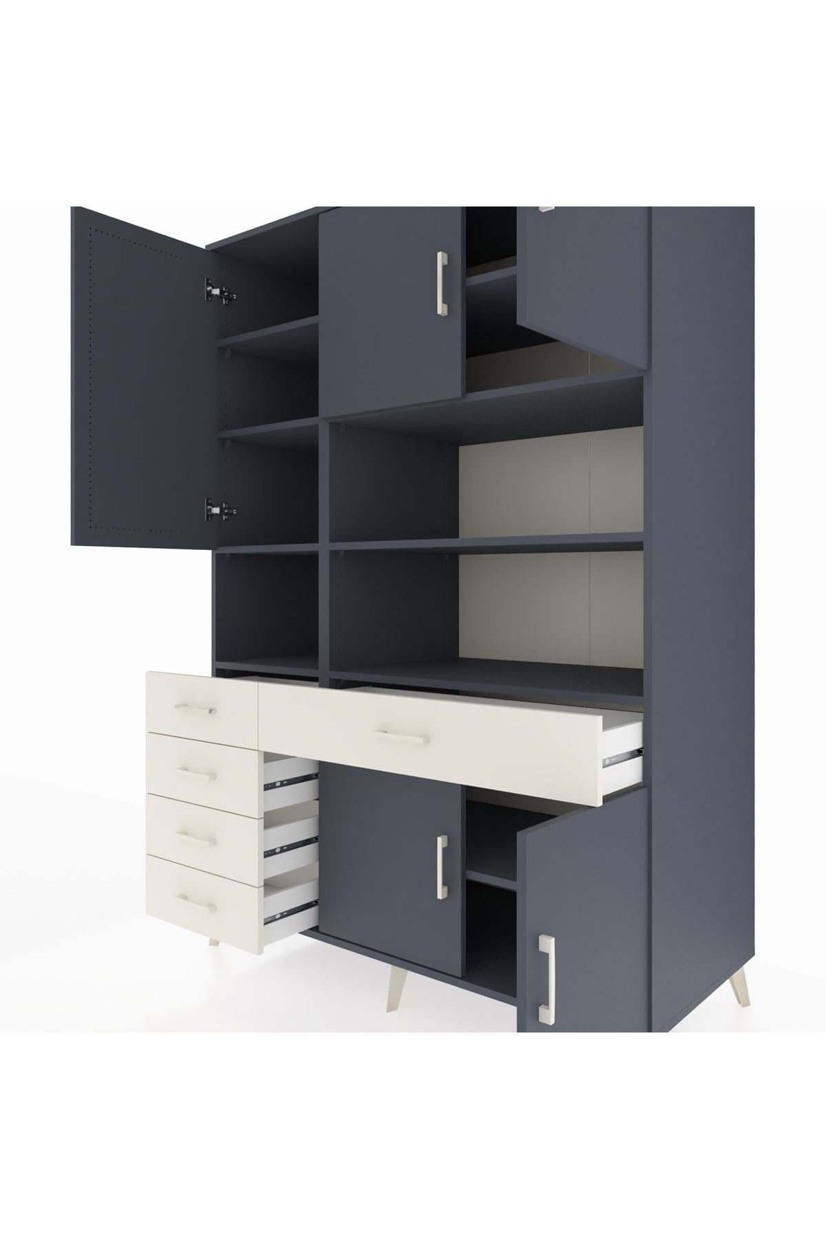 🕰️ Kronos Dolap 9 Raflı 5 Çekmeceli 5 Kapaklı 132x59x195 Antrasit-Antrasit/Aytaşı