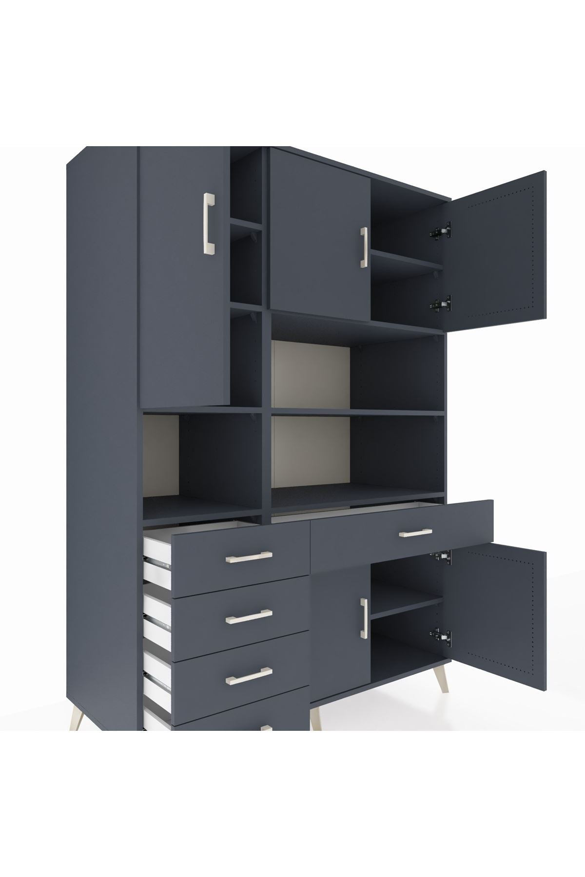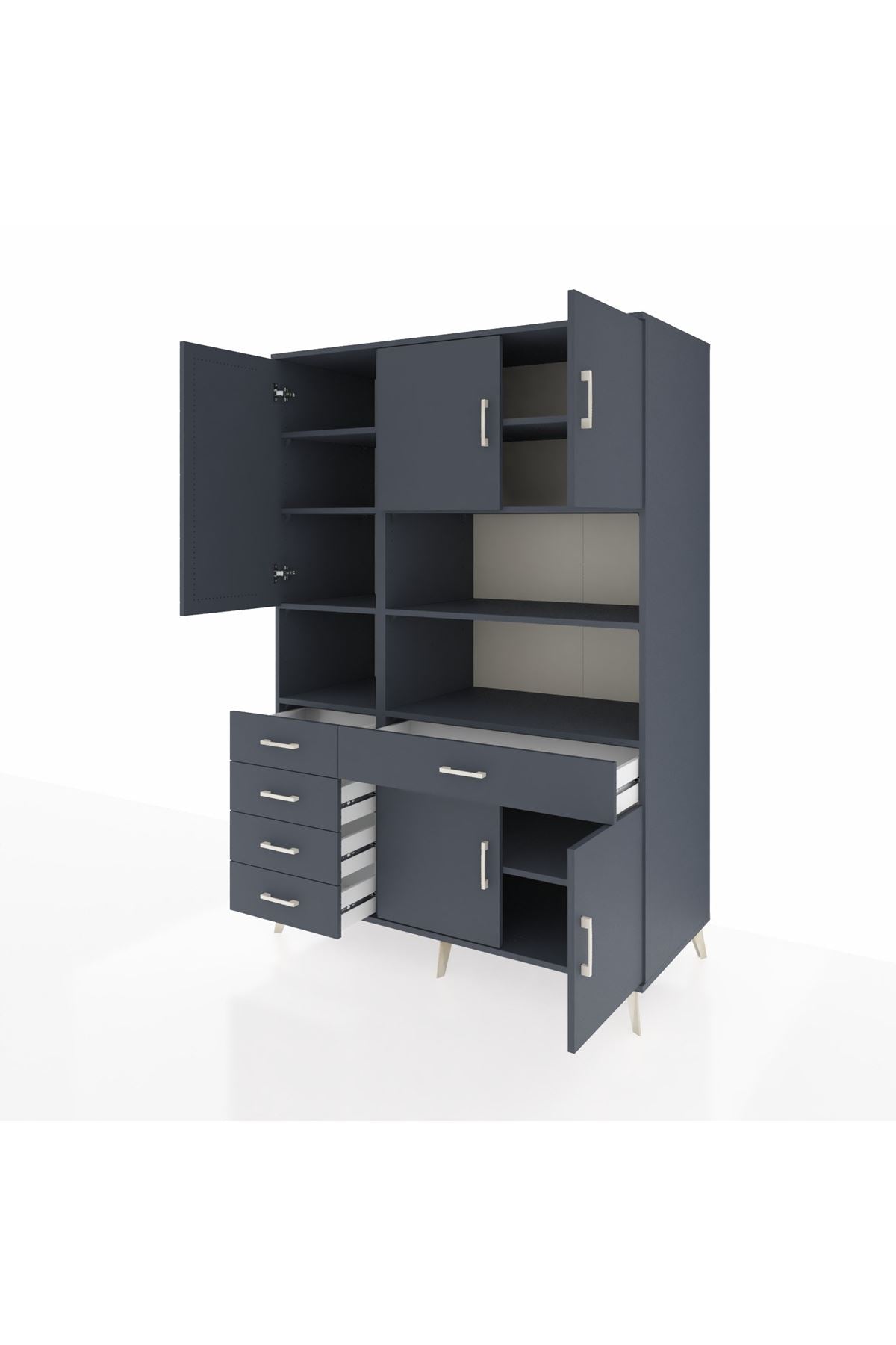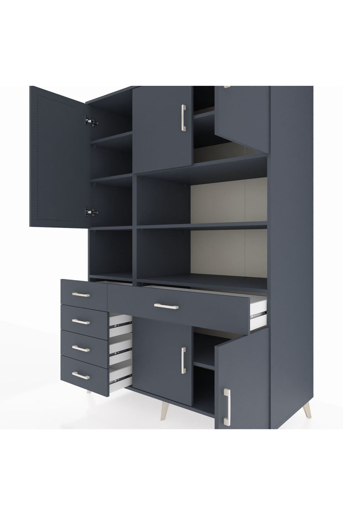 🕰️ Kronos Dolap 9 Raflı 5 Çekmeceli 5 Kapaklı 132x59x195 Antrasit-Antrasit/Antrasit