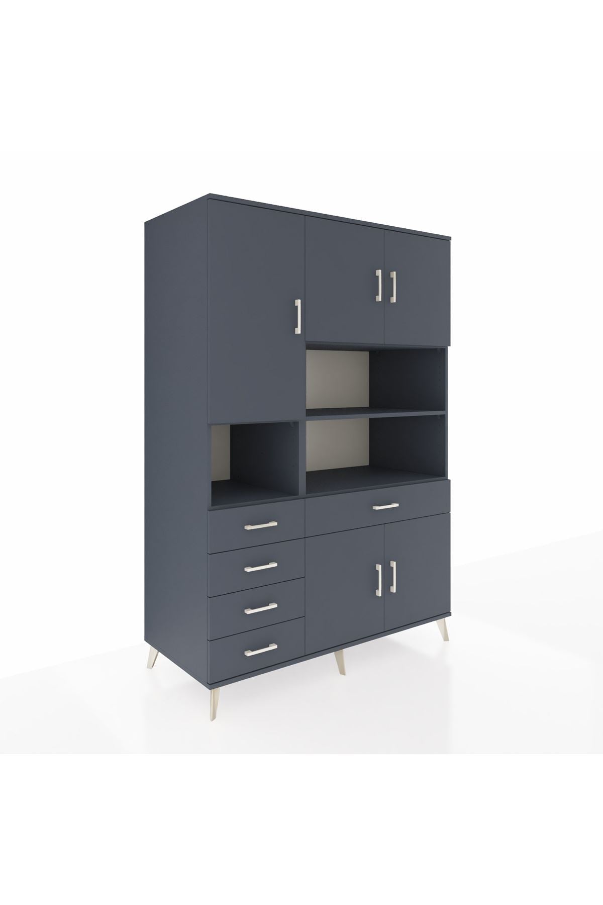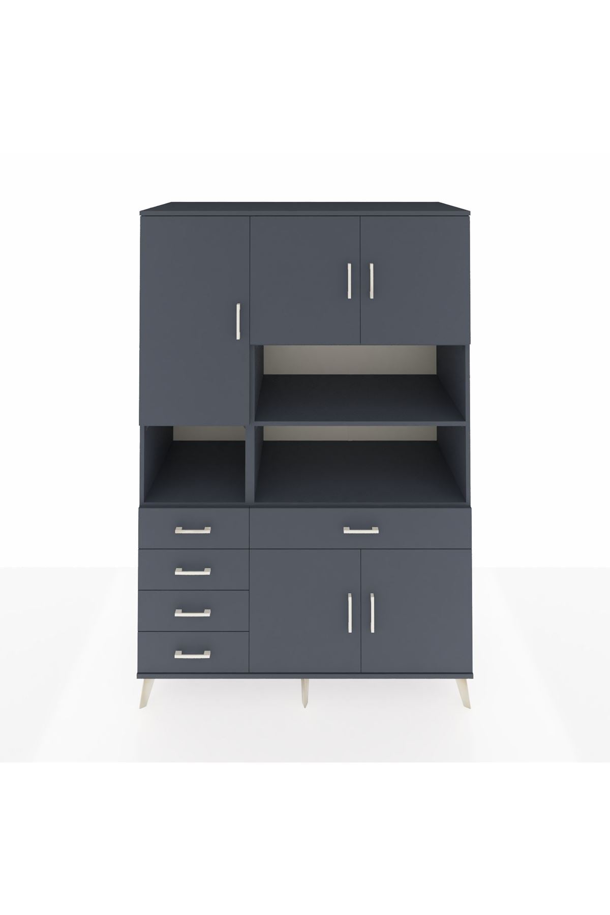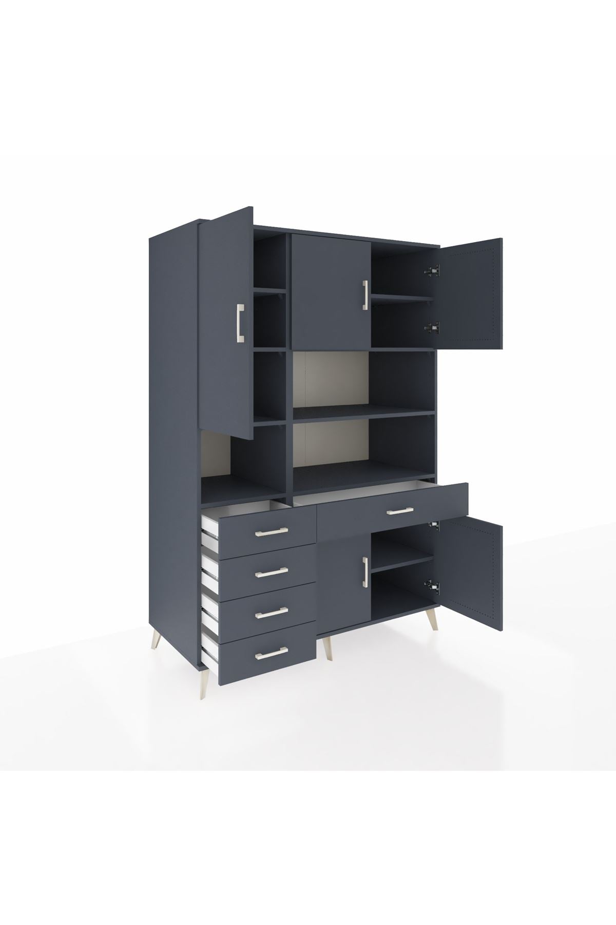 🕰️ Kronos Dolap 9 Raflı 5 Çekmeceli 5 Kapaklı 132x59x195 Antrasit-Antrasit/Antrasit