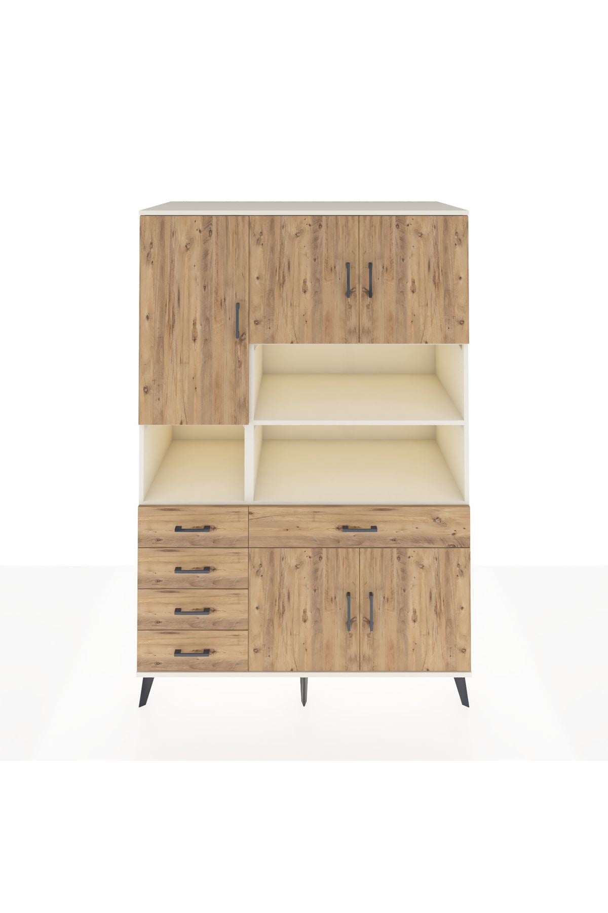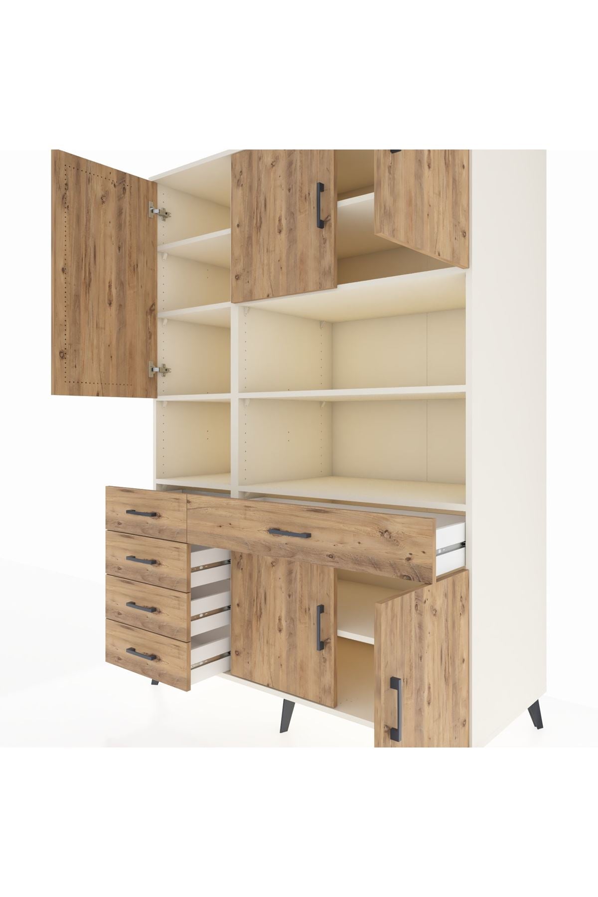 Kronos Dolap 9 Raflı 5 Çekmeceli 5 Kapaklı 132x59x195 Aytaşı-Çam/Çam