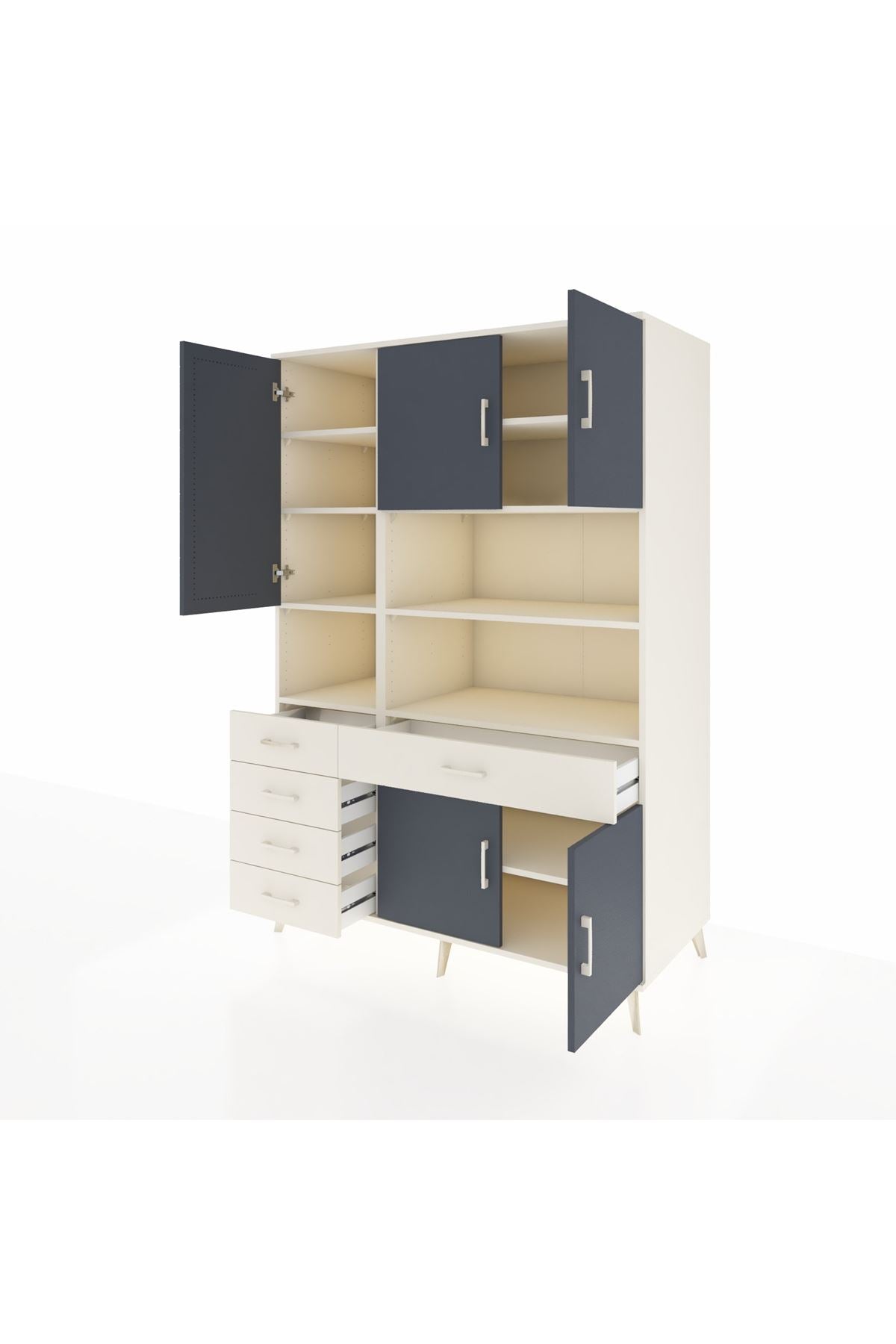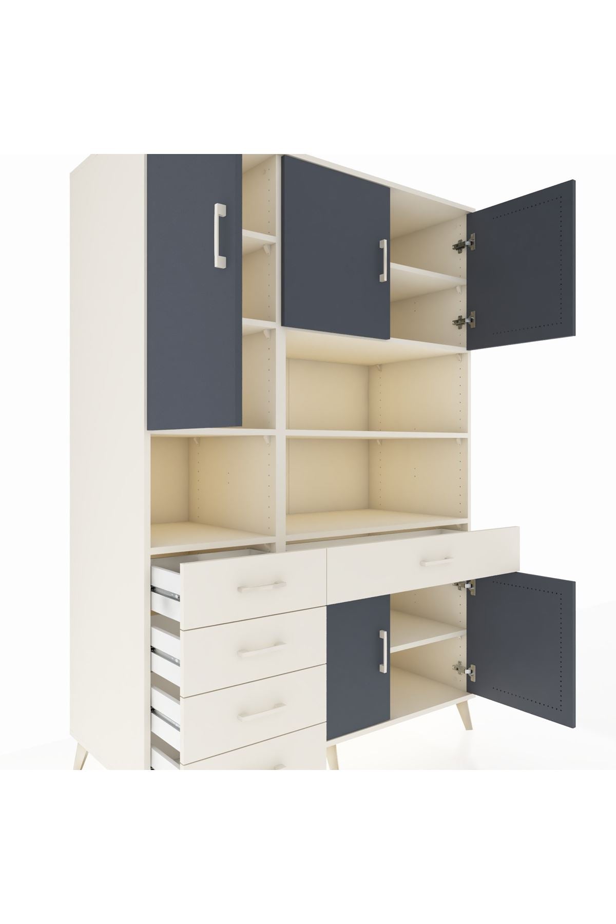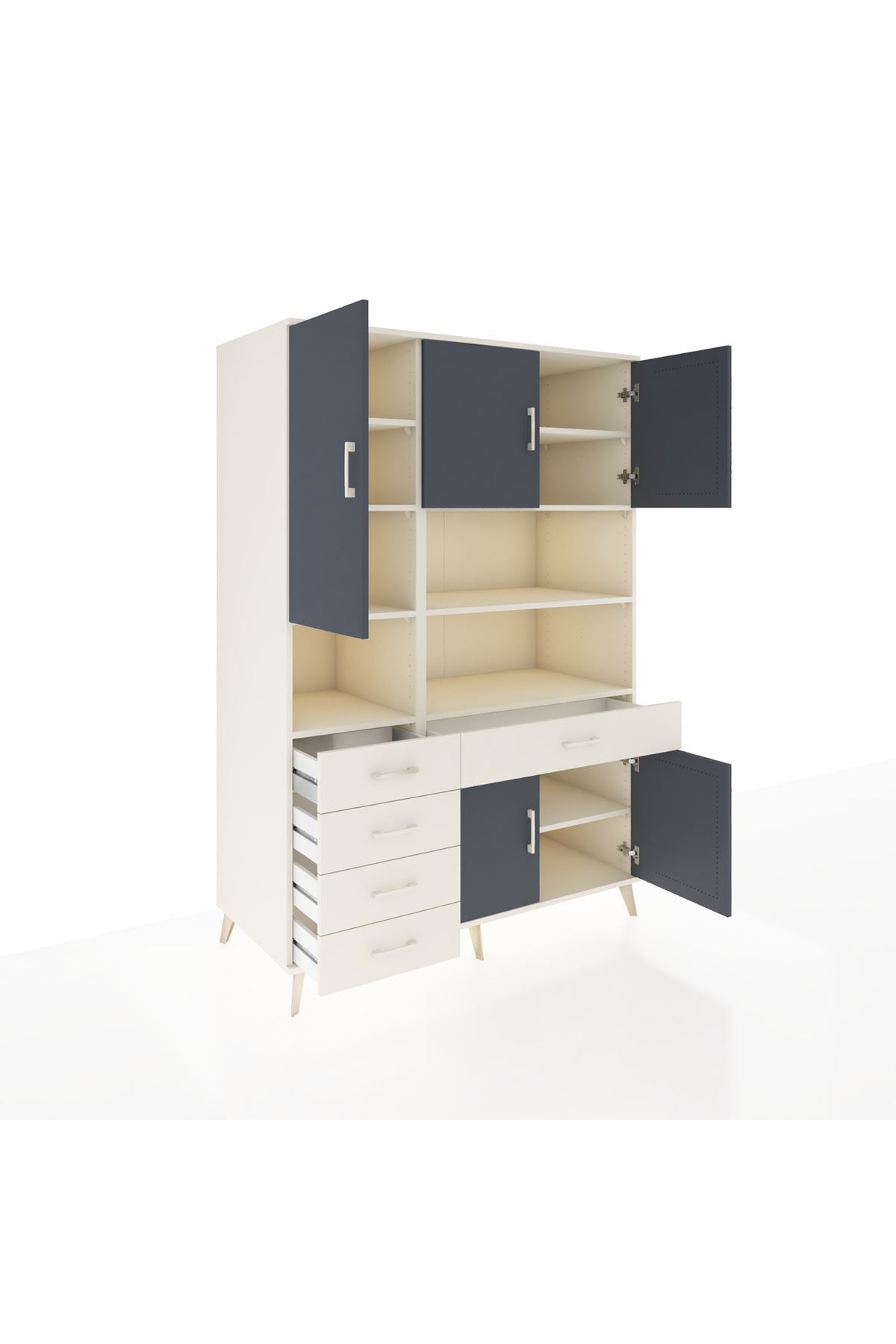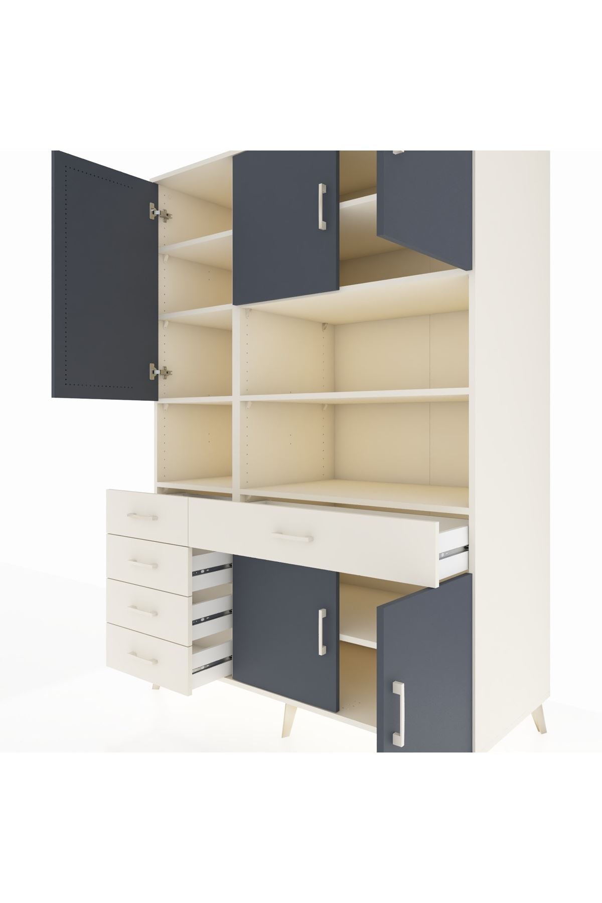 Kronos Dolap’ta toplam 9 adet geniş raf, 5 çekmece ve 5 kapak bulunuyor 📦