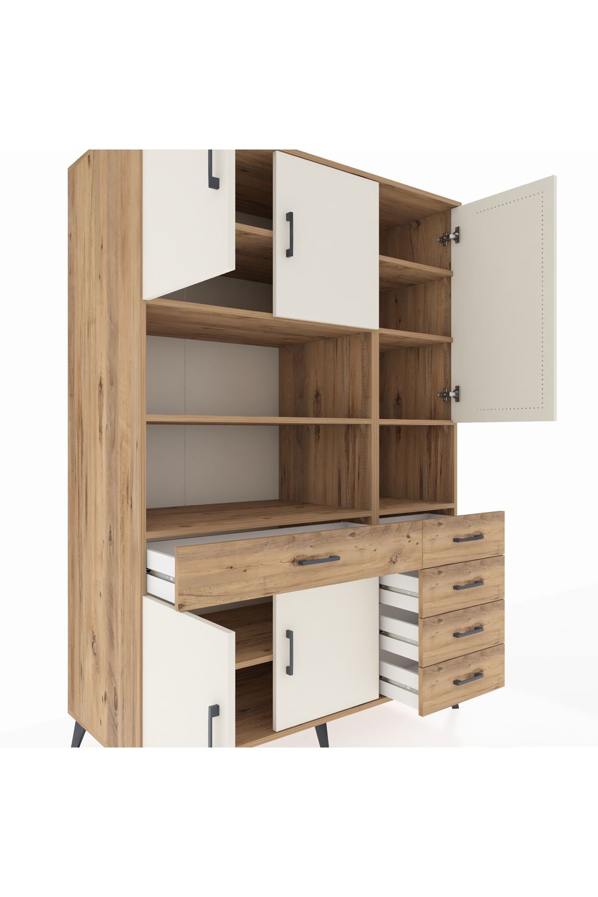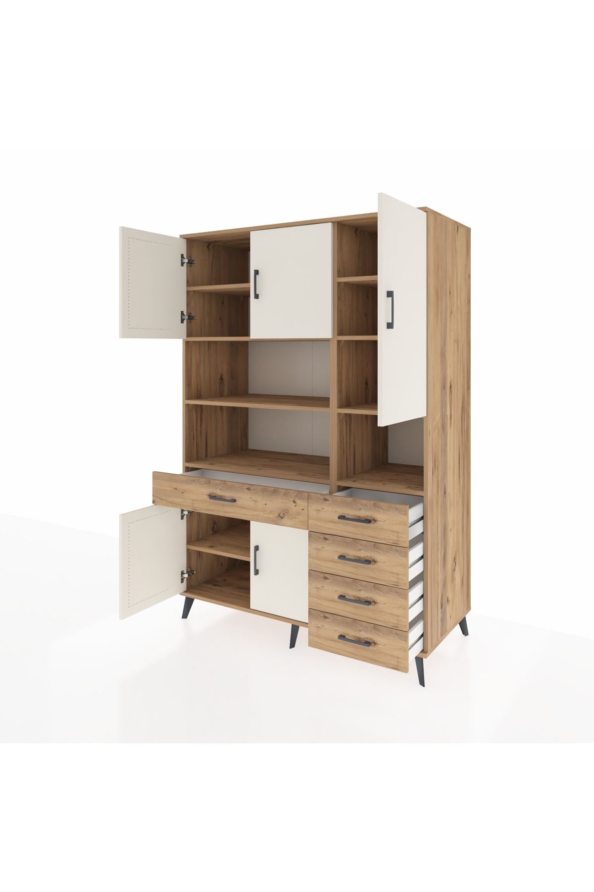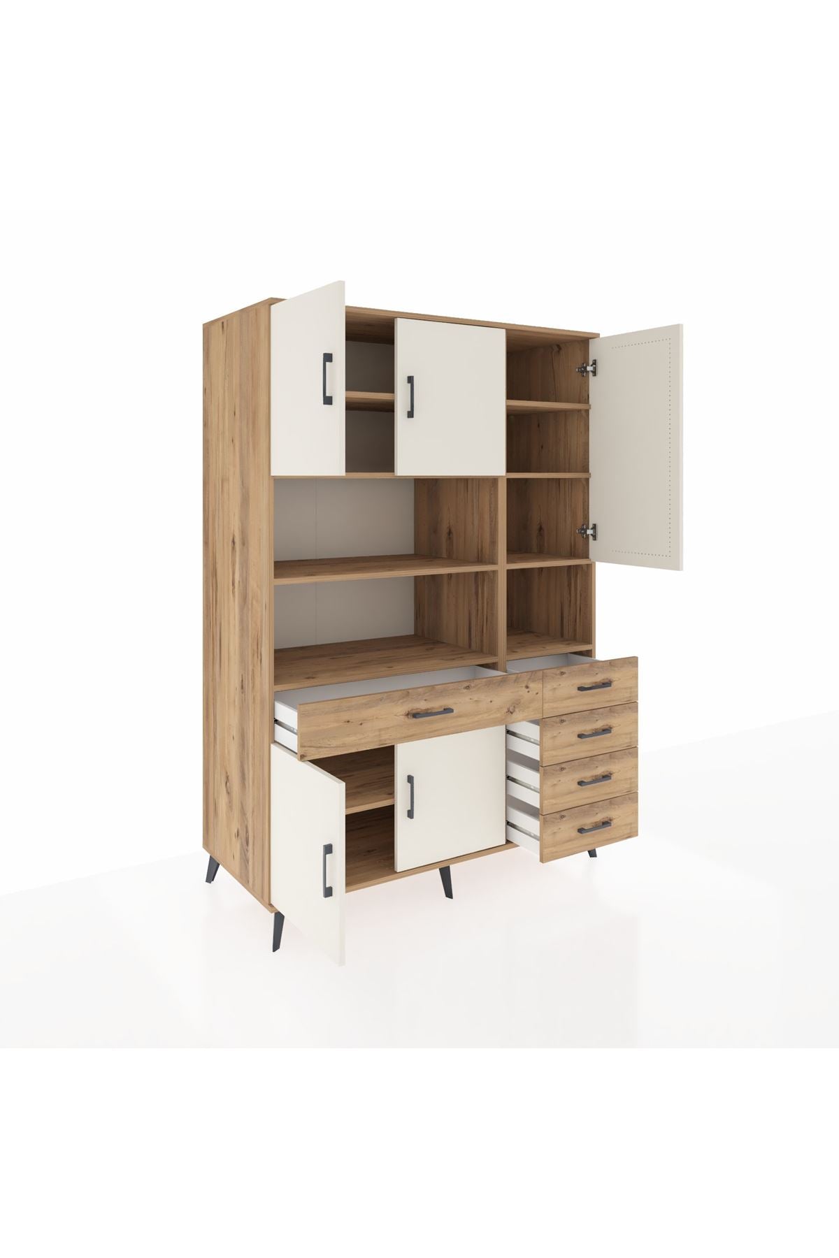 Kronos Dolap 9 Raflı 5 Çekmeceli 5 Kapaklı 132x59x195 Çam-Aytaşı/Çam