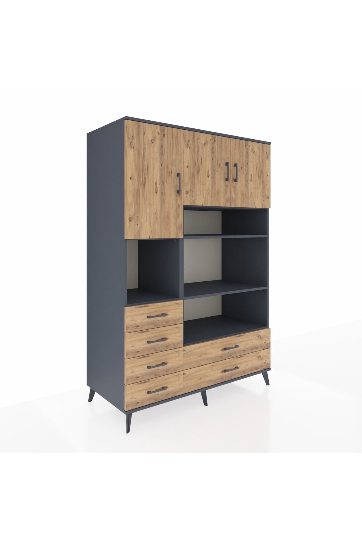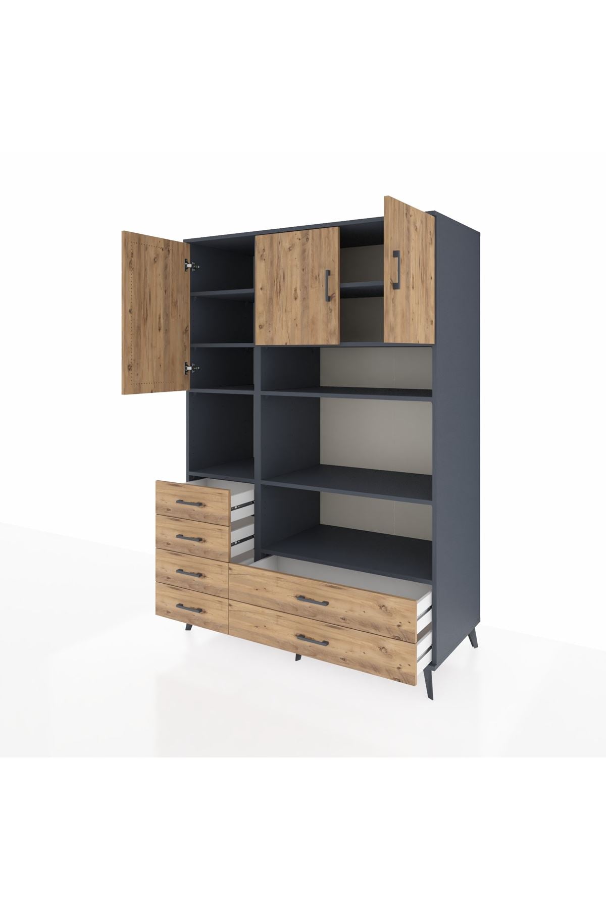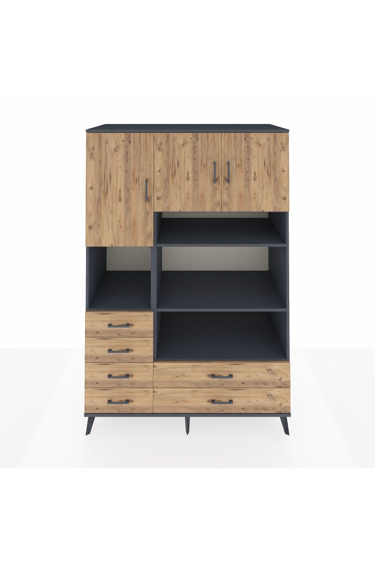 Kronos Dolap 9 Raflı 6 Çekmeceli 3 Kapaklı 132x59x195 Antrasit-Çam/Çam