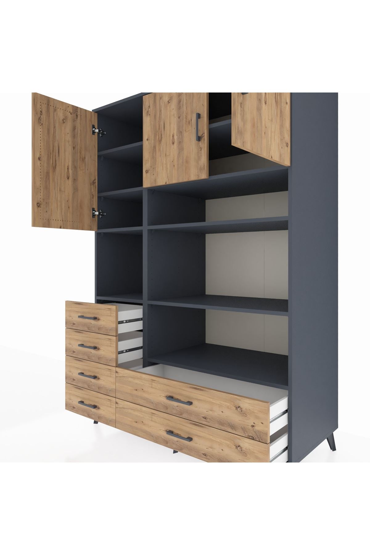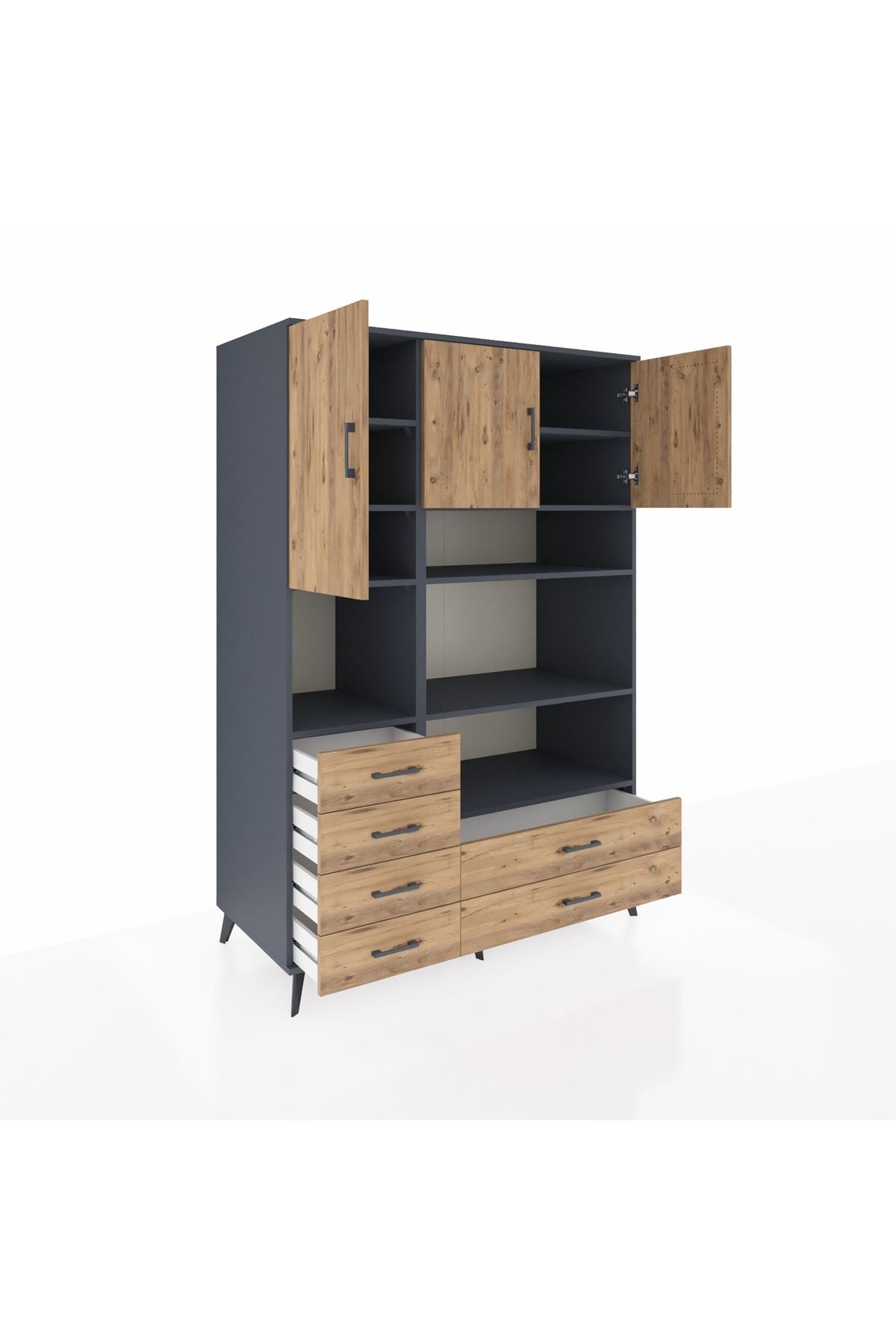 🪐 Kronos Dolap 9 Raflı 6 Çekmeceli 3 Kapaklı 132x59x195 Antrasit-Çam/Çam