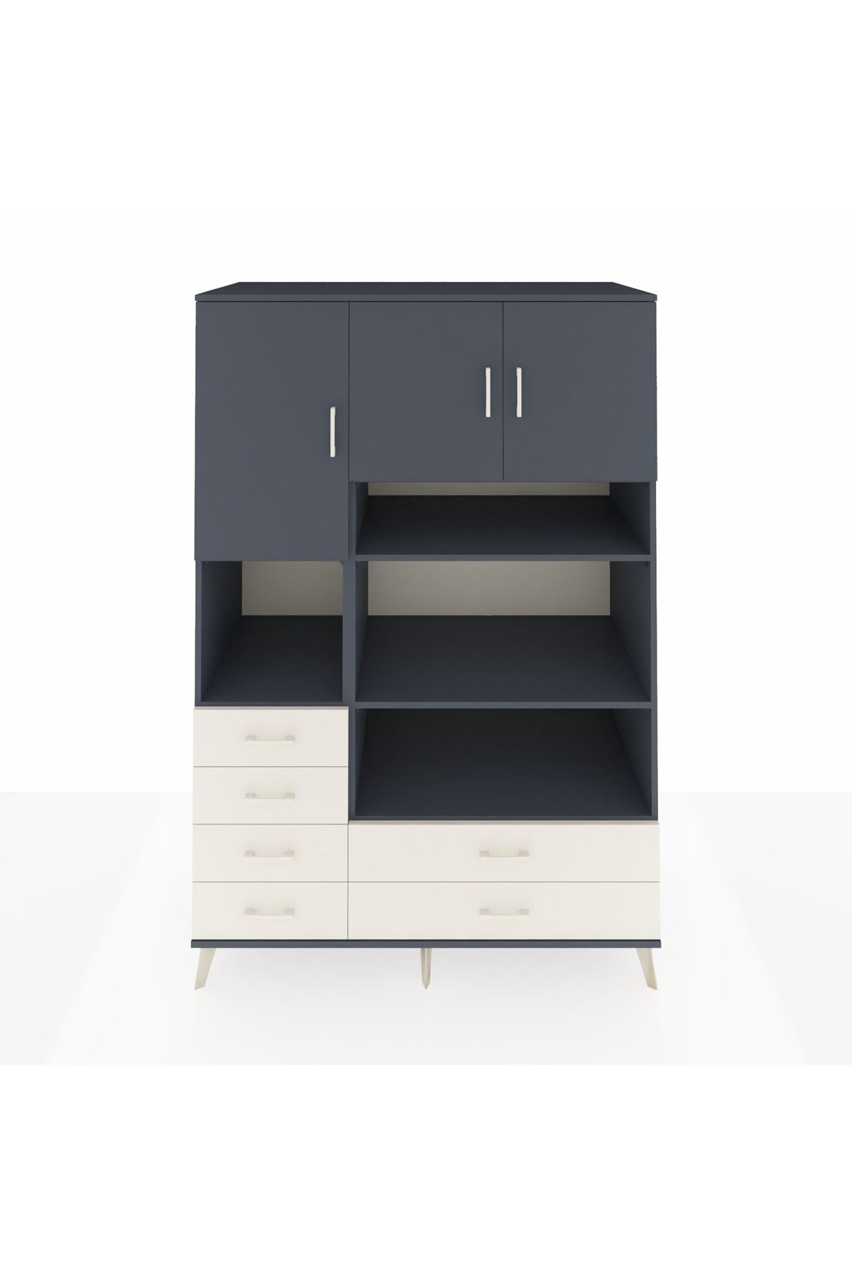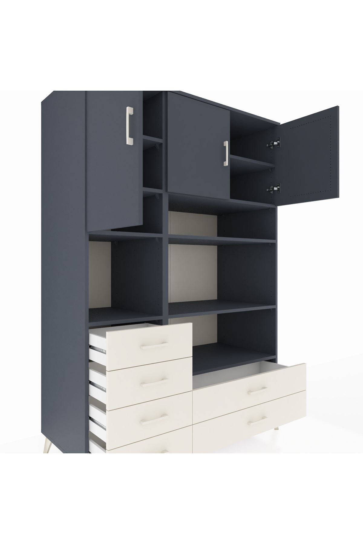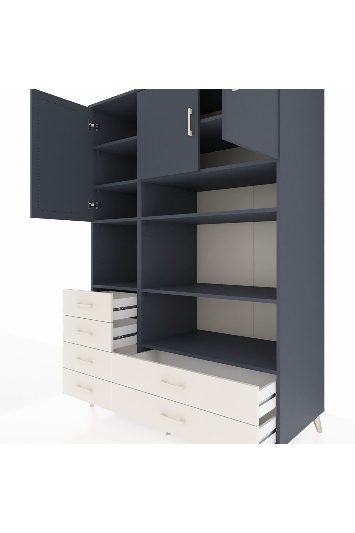 Kronos Dolap 9 Raflı 6 Çekmeceli 3 Kapaklı 132x59x195 Antrasit-Antrasit/Aytaşı