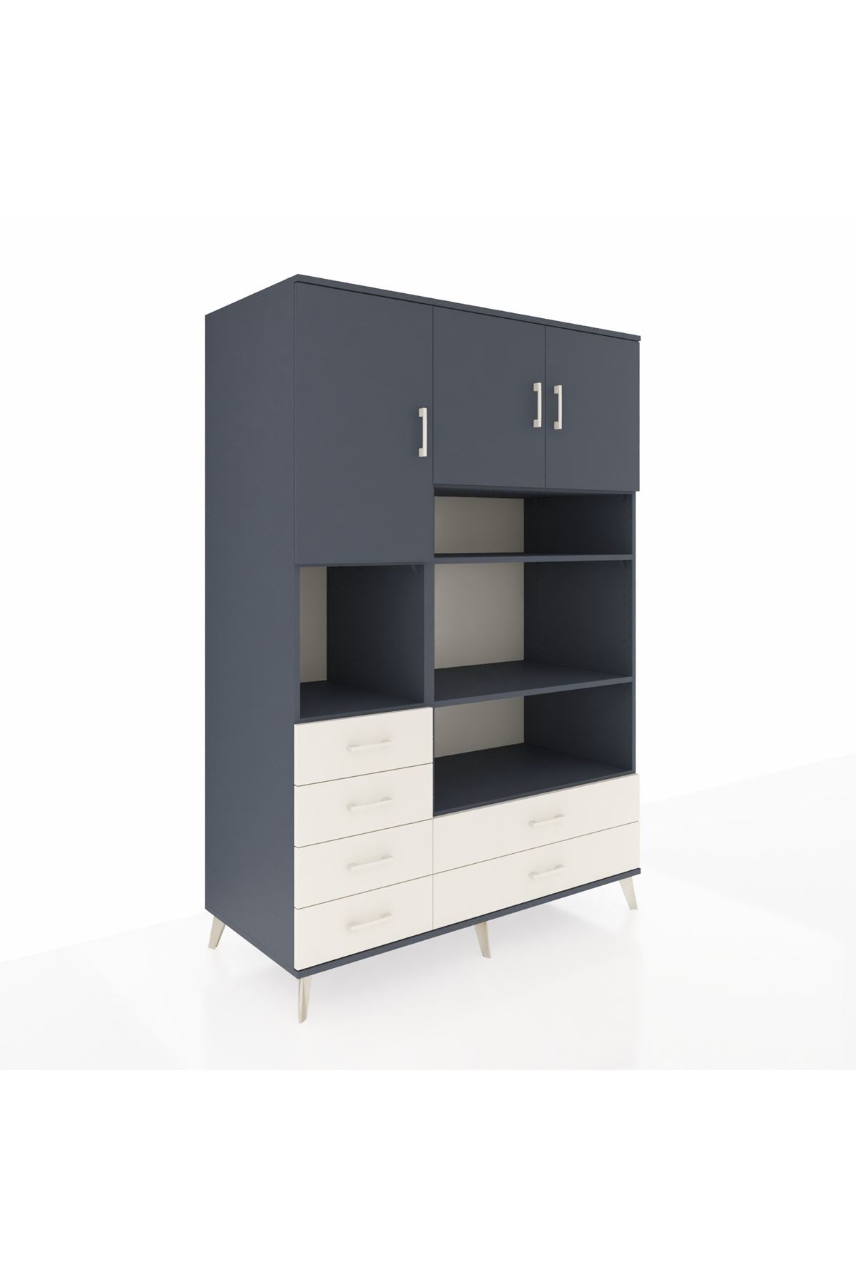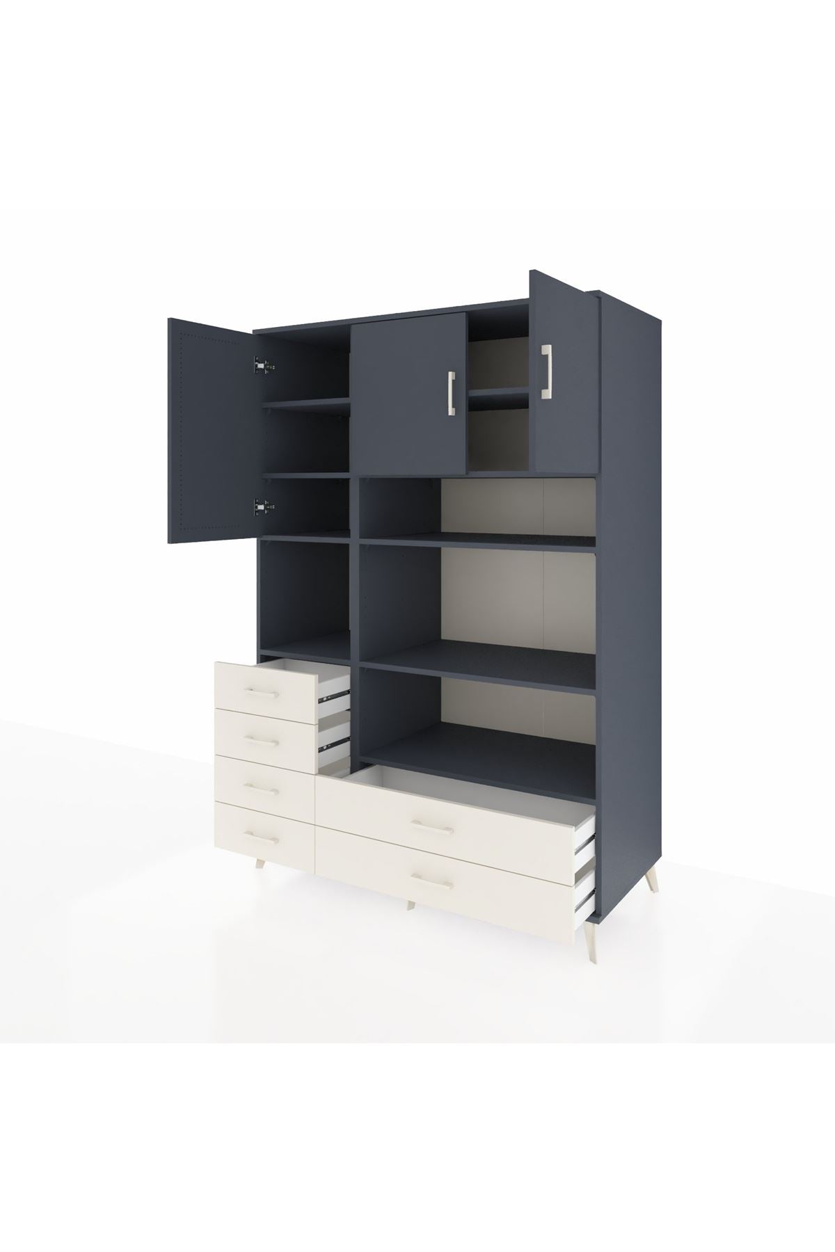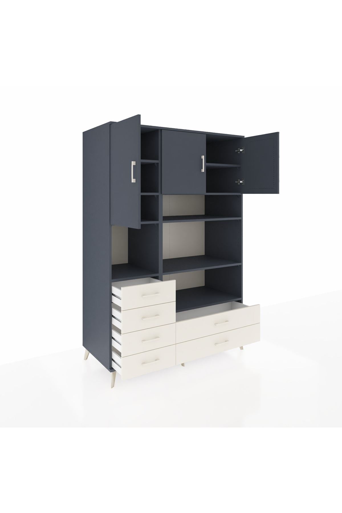 Kronos Dolap 9 Raflı 6 Çekmeceli 3 Kapaklı 132x59x195 Antrasit-Antrasit/Aytaşı