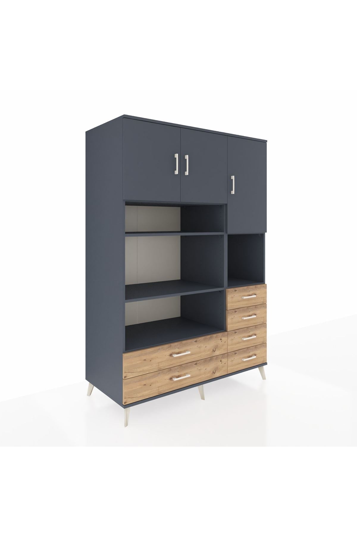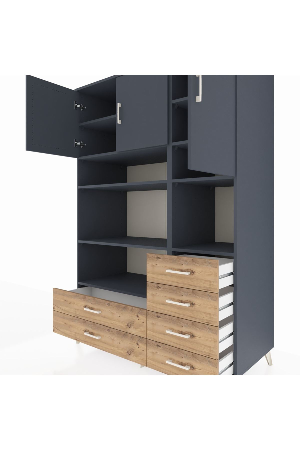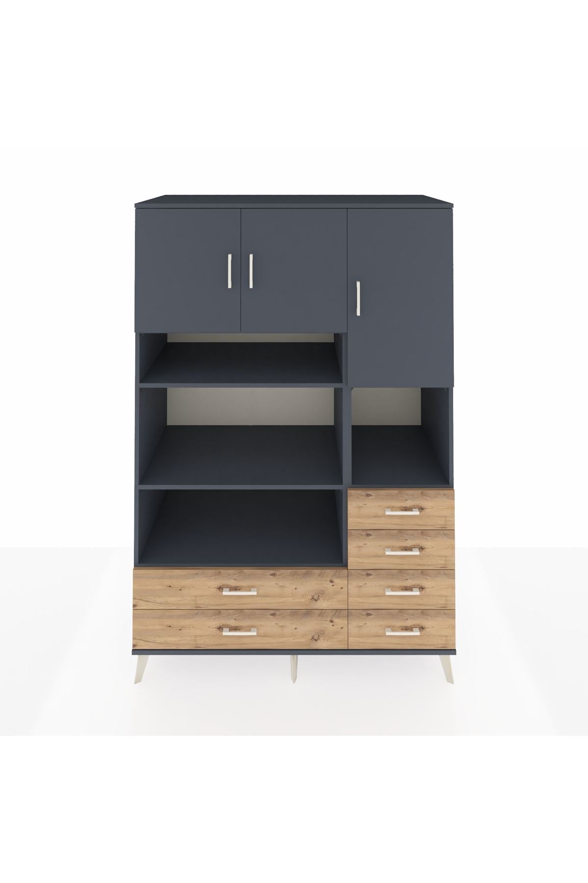 Kronos Dolap 9 Raflı 6 Çekmeceli 3 Kapaklı 132x59x195 Antrasit-Antrasit/Çam