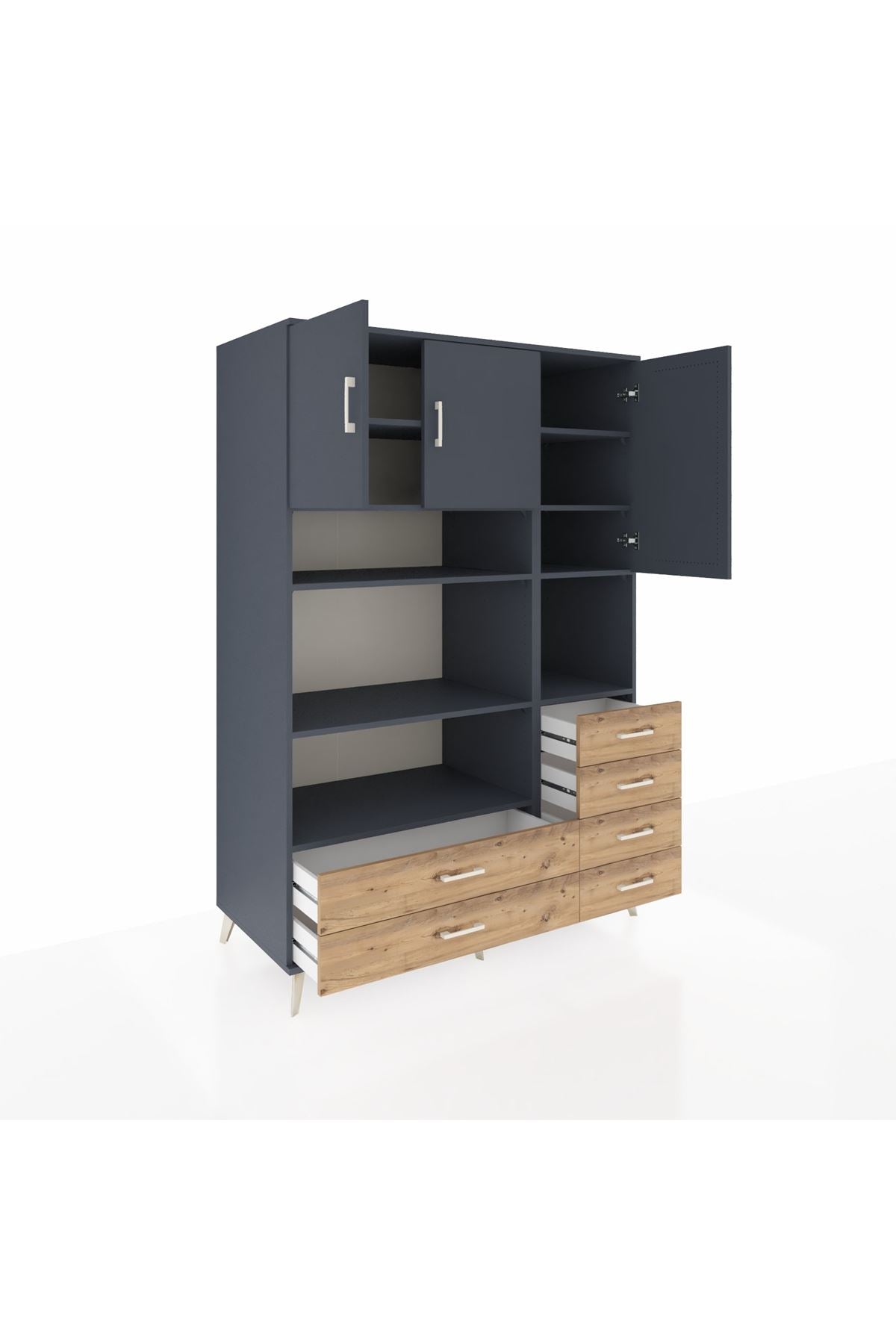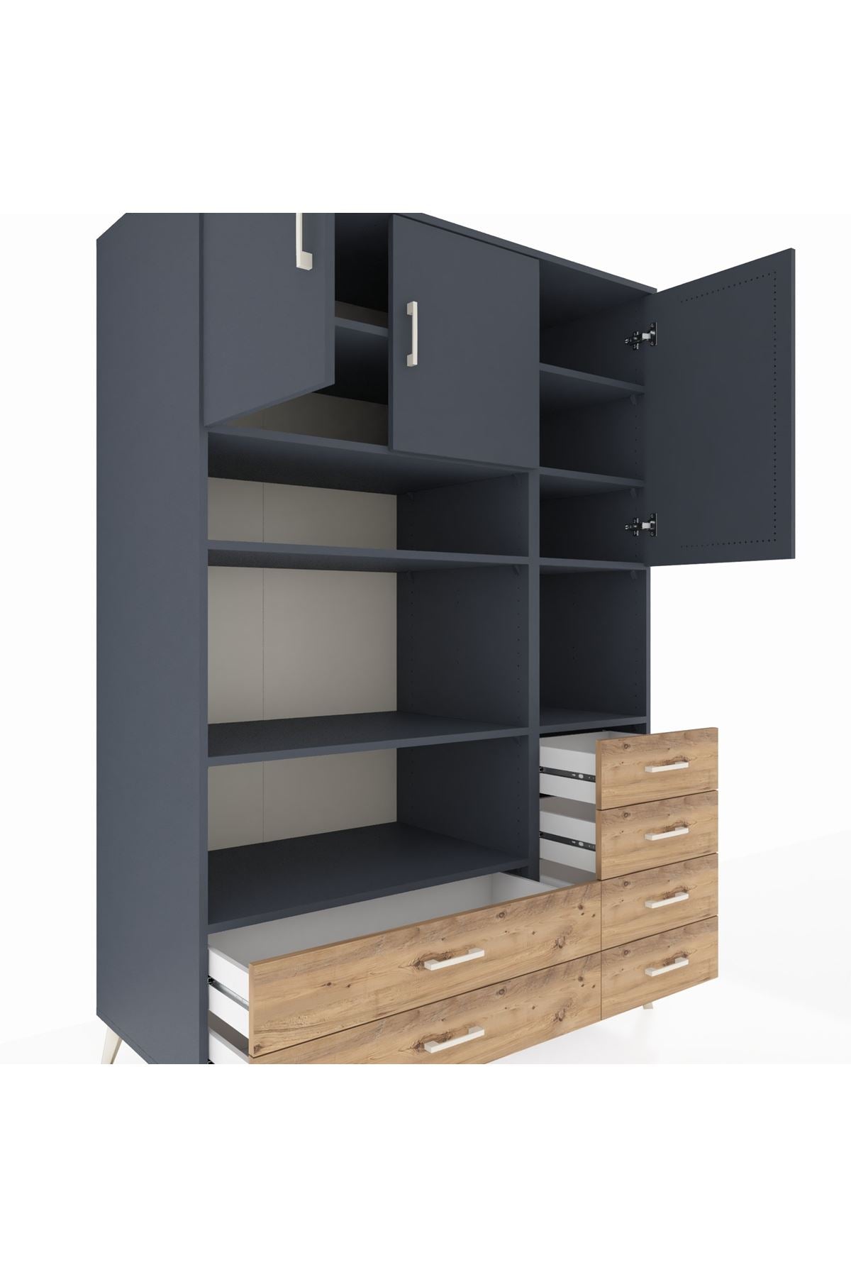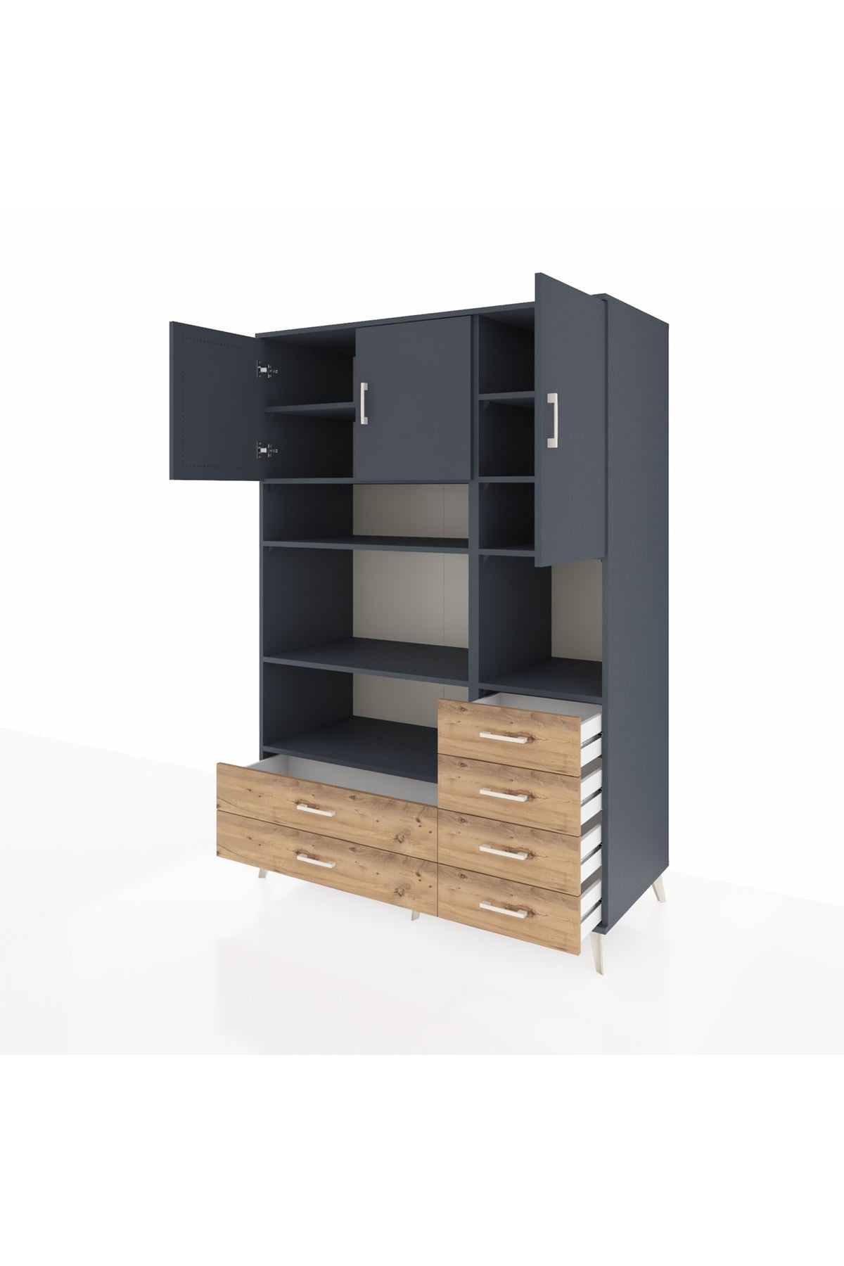 Kronos Dolap 9 Raflı 6 Çekmeceli 3 Kapaklı 132x59x195 Antrasit-Antrasit/Çam