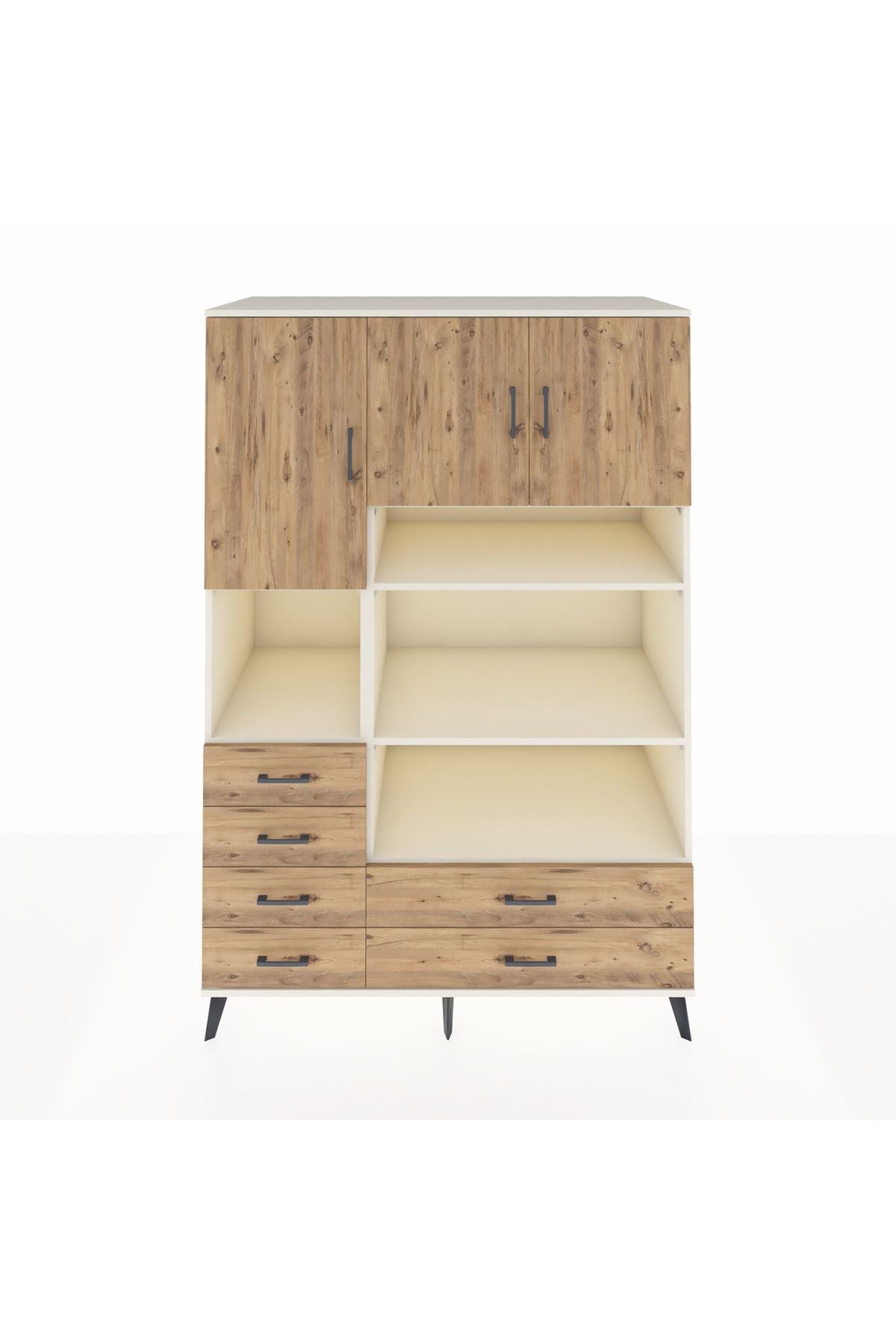 Geniş hacimli 9 rafı, 6 çekmecesi ve 3 kapaklı yapısıyla evinizin her köşesinde düzen ve işlevsellik sunar