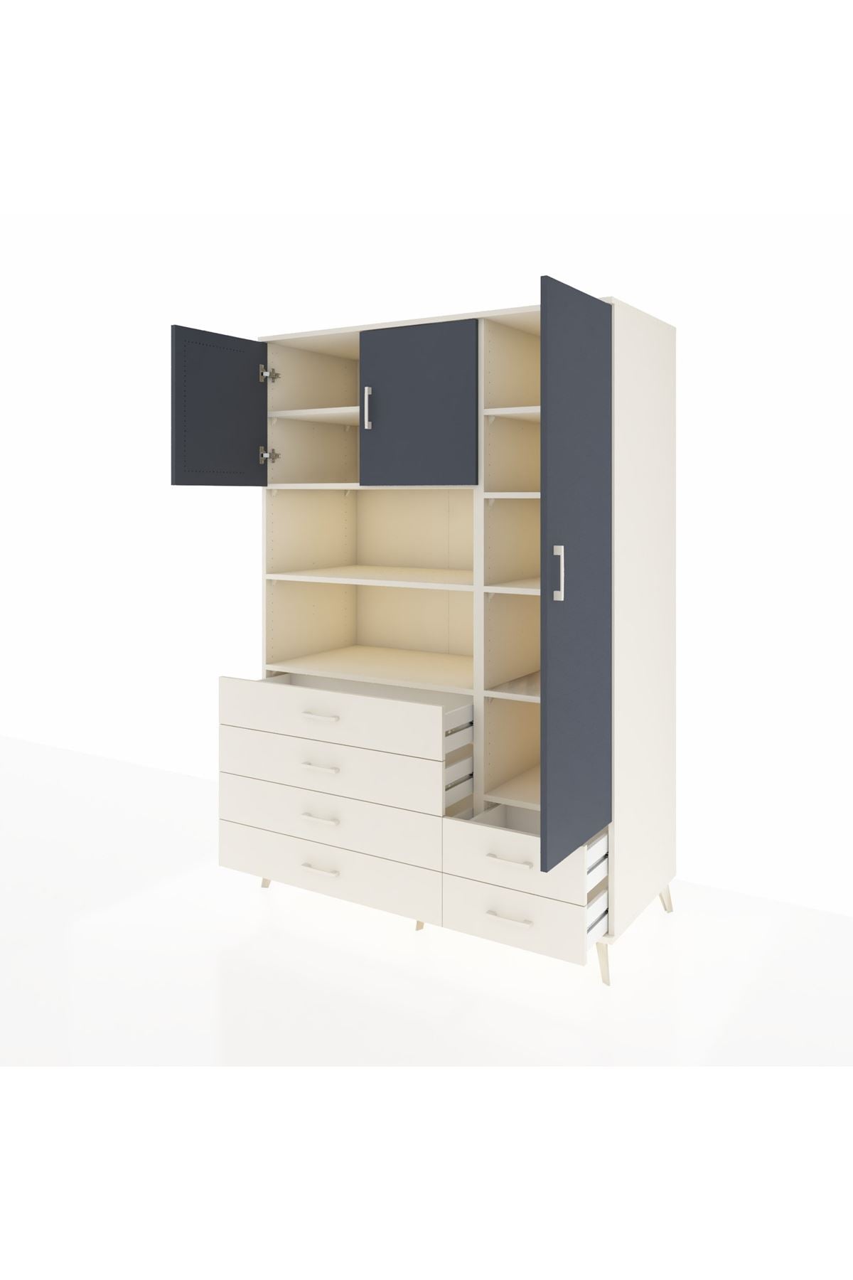 Kronos Dolap 9 Raflı 6 Çekmeceli 3 Kapaklı 132x59x195 Aytaşı-Antrasit/Aytaşı