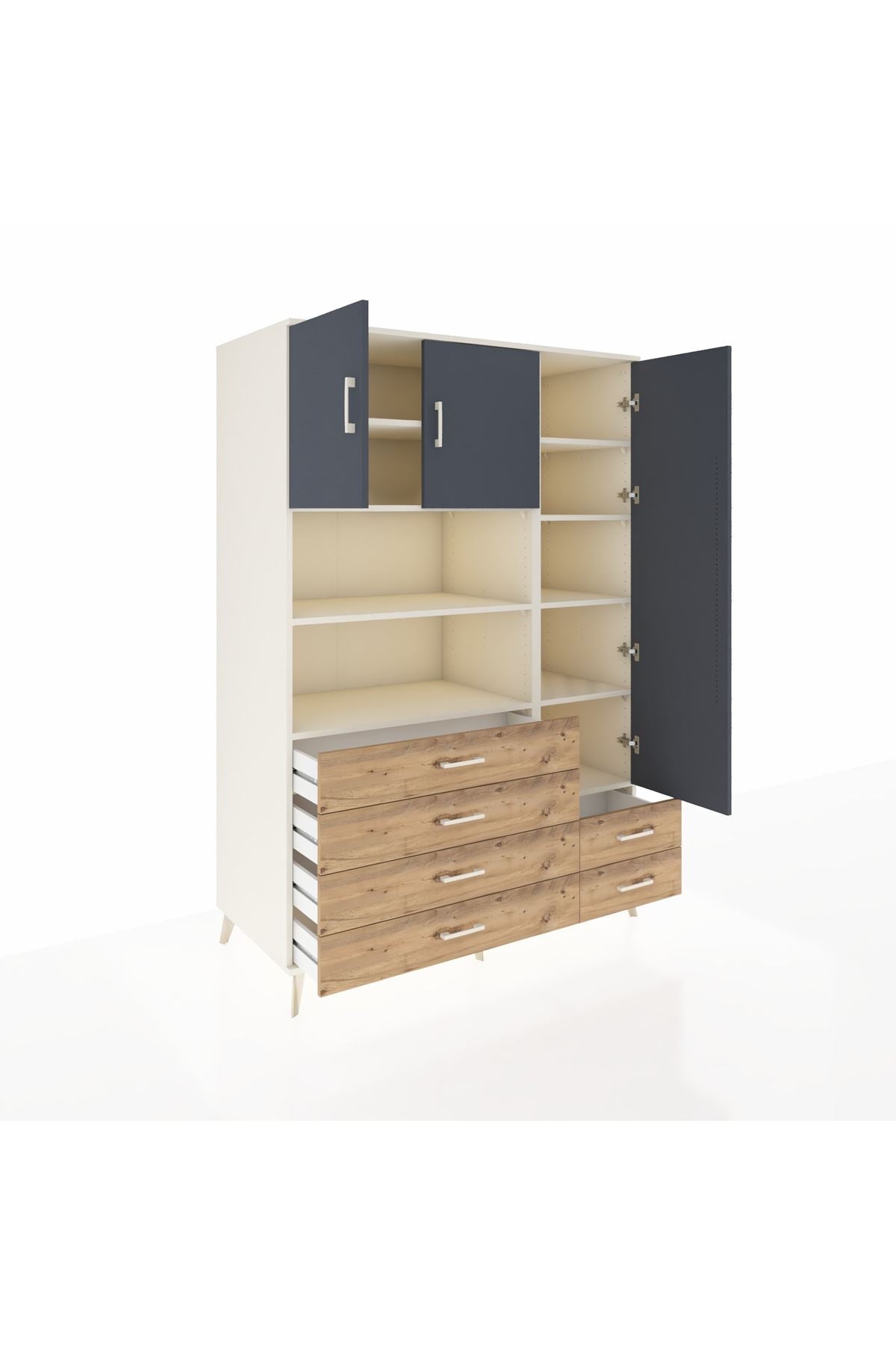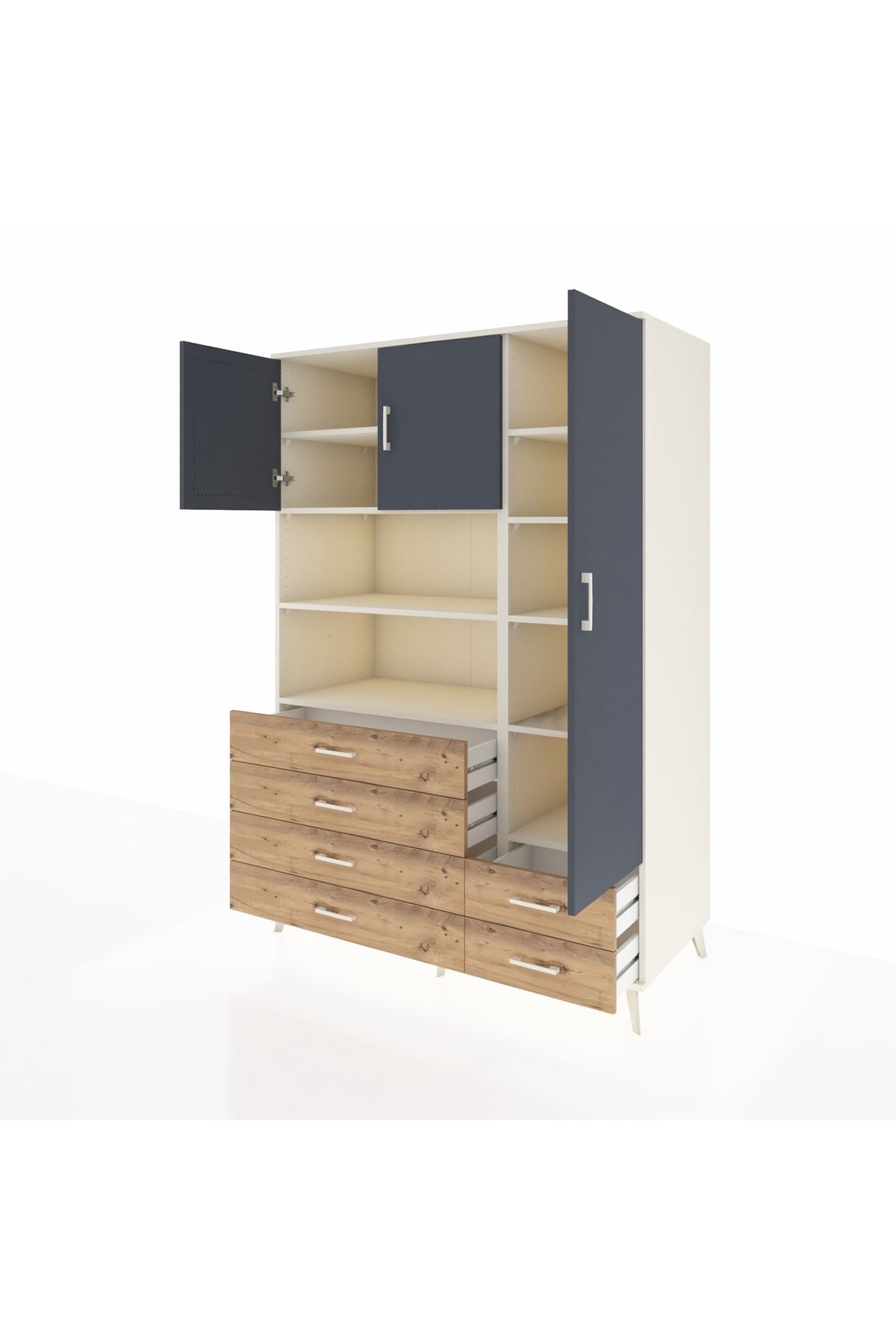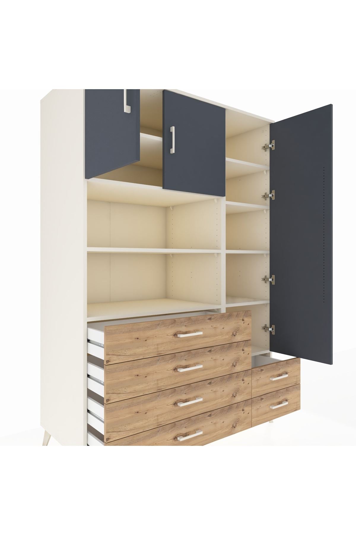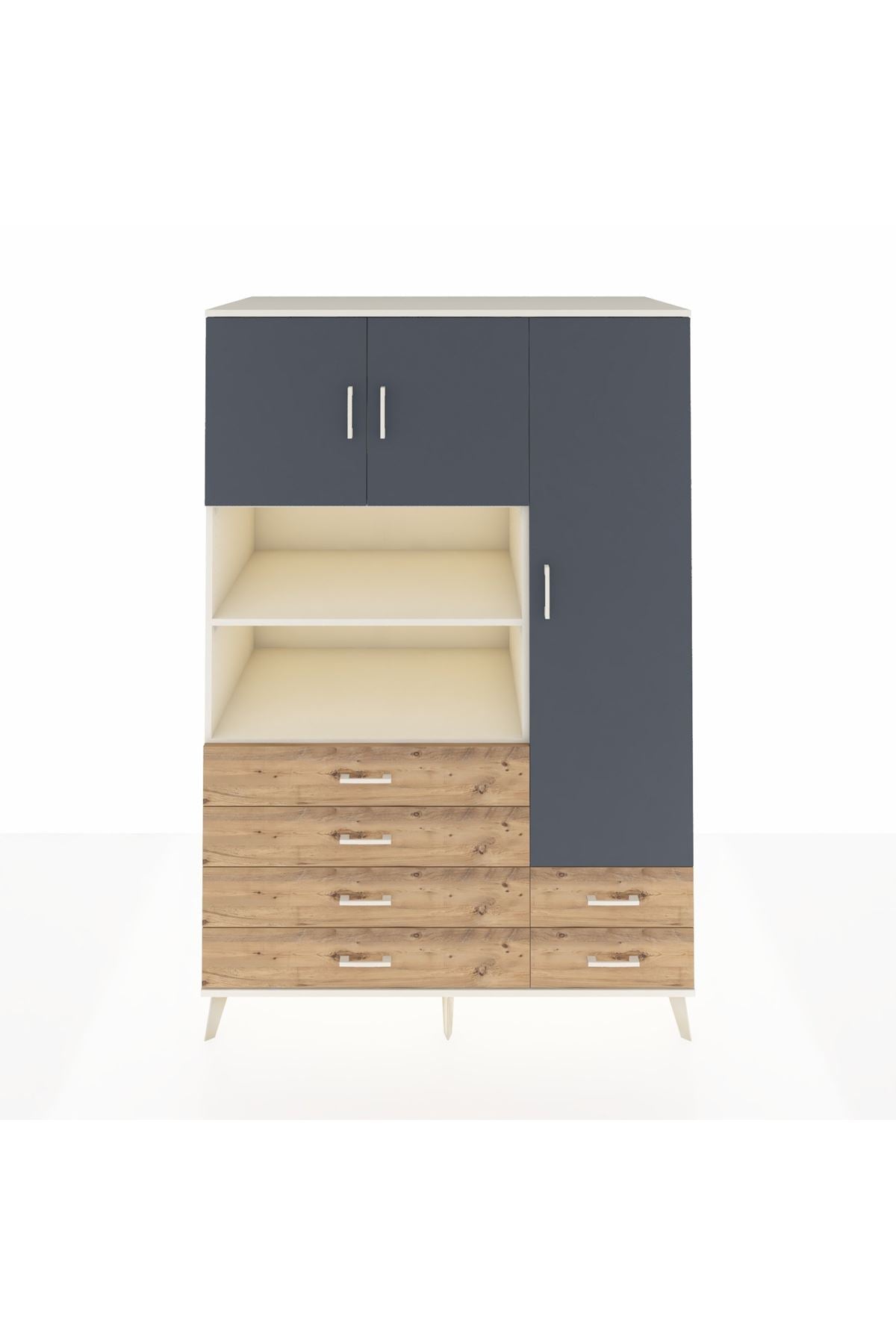 Kronos Dolap 9 Raflı 6 Çekmeceli 3 Kapaklı 132x59x195 Aytaşı-Antrasit/Çam