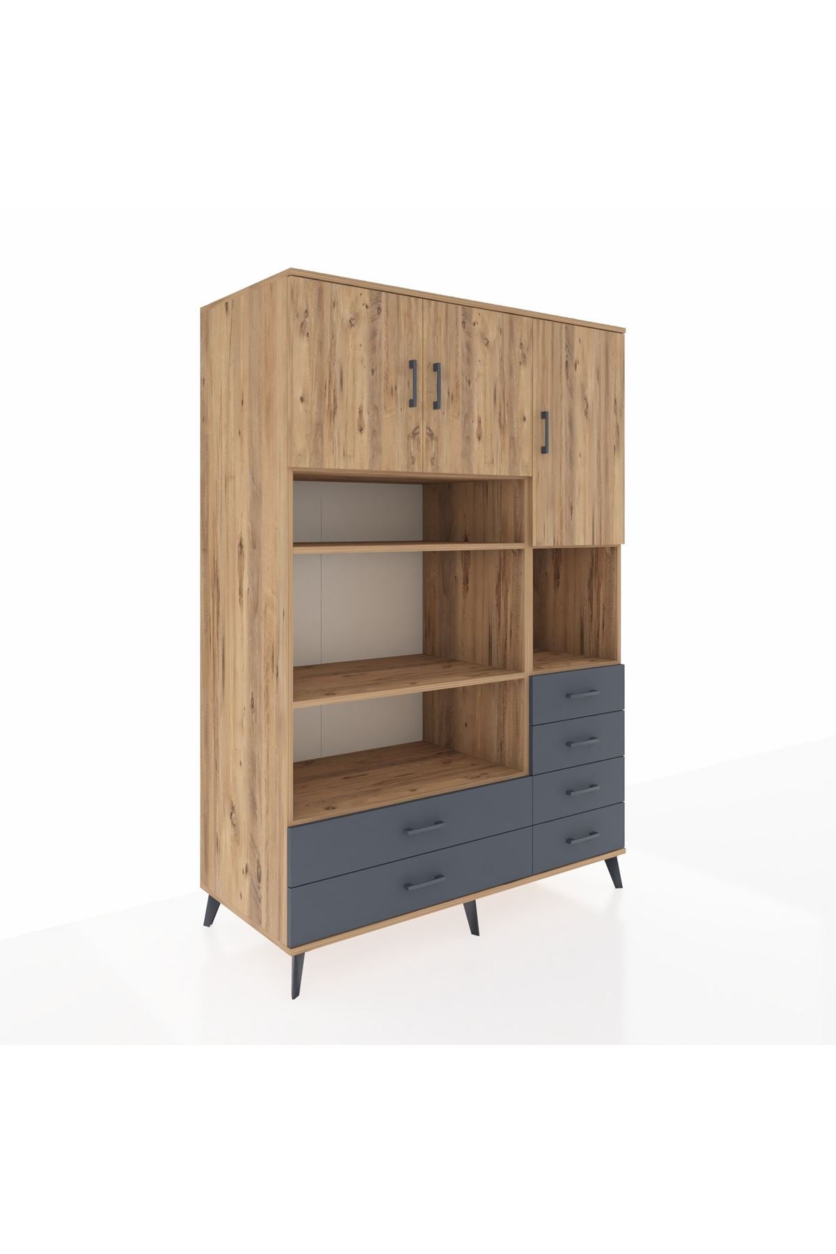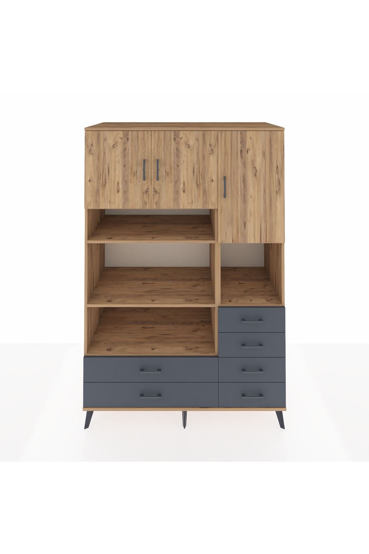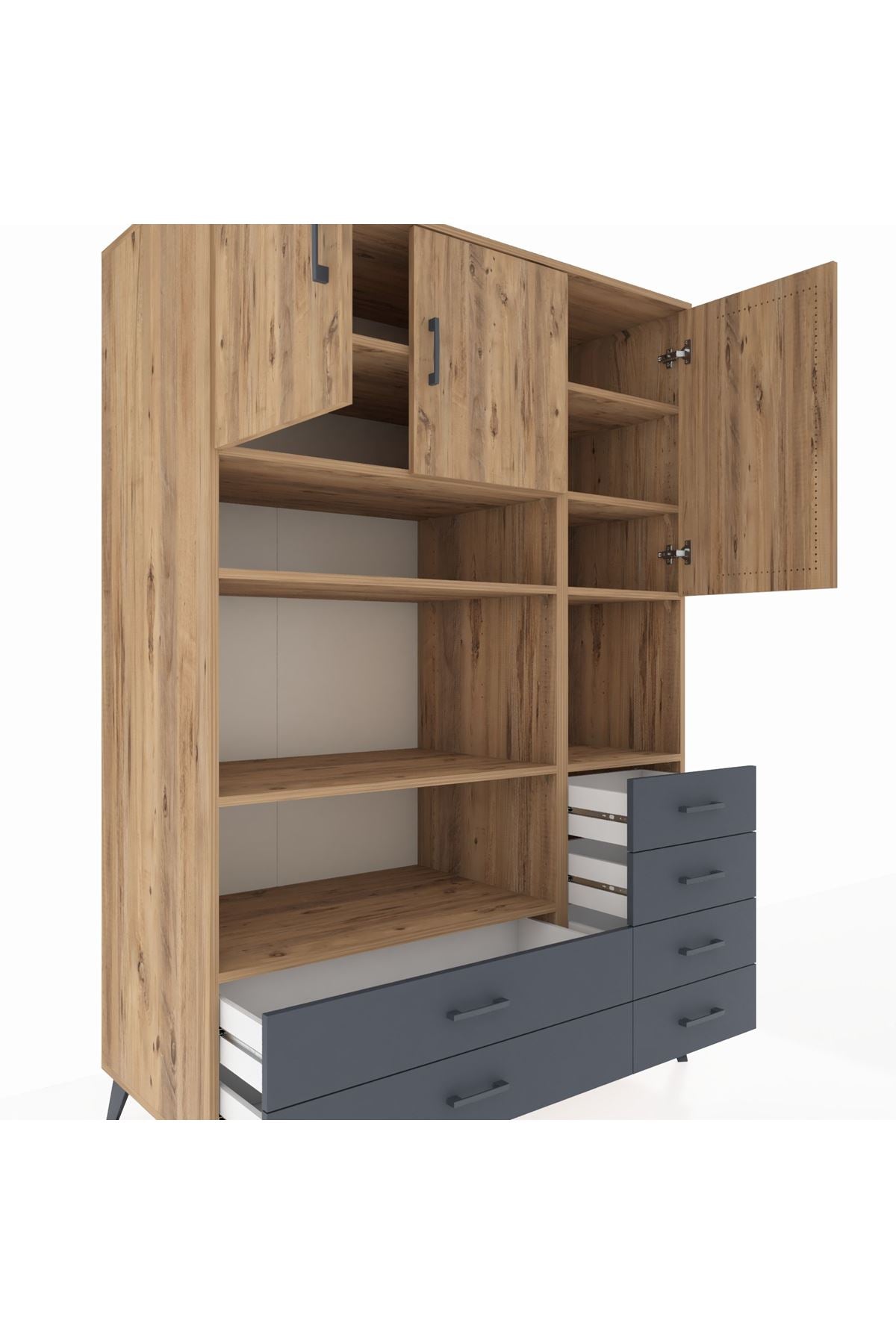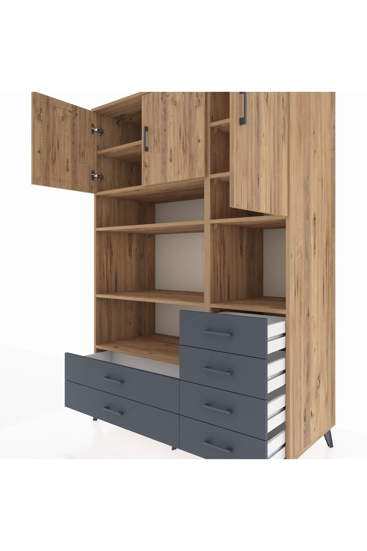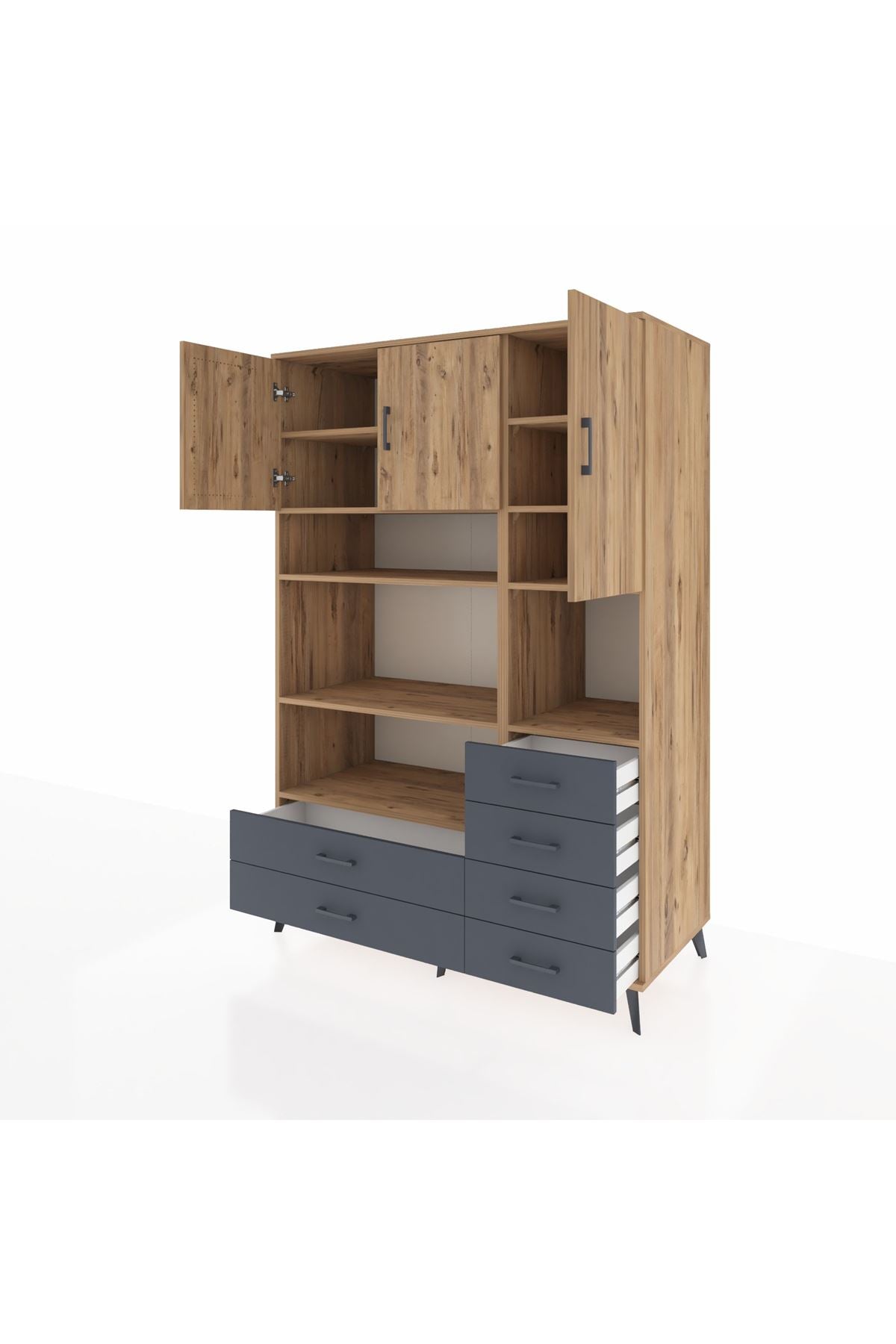 Kronos Dolap 9 Raflı 6 Çekmeceli 3 Kapaklı 132x59x195 Çam-Çam/Antrasit