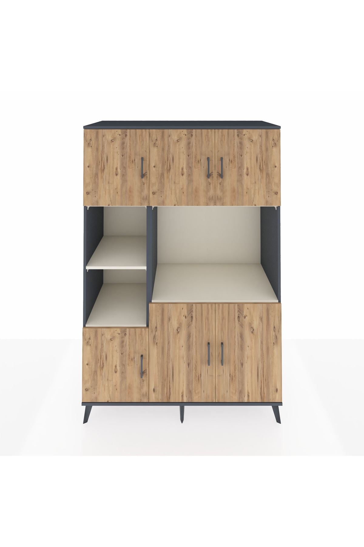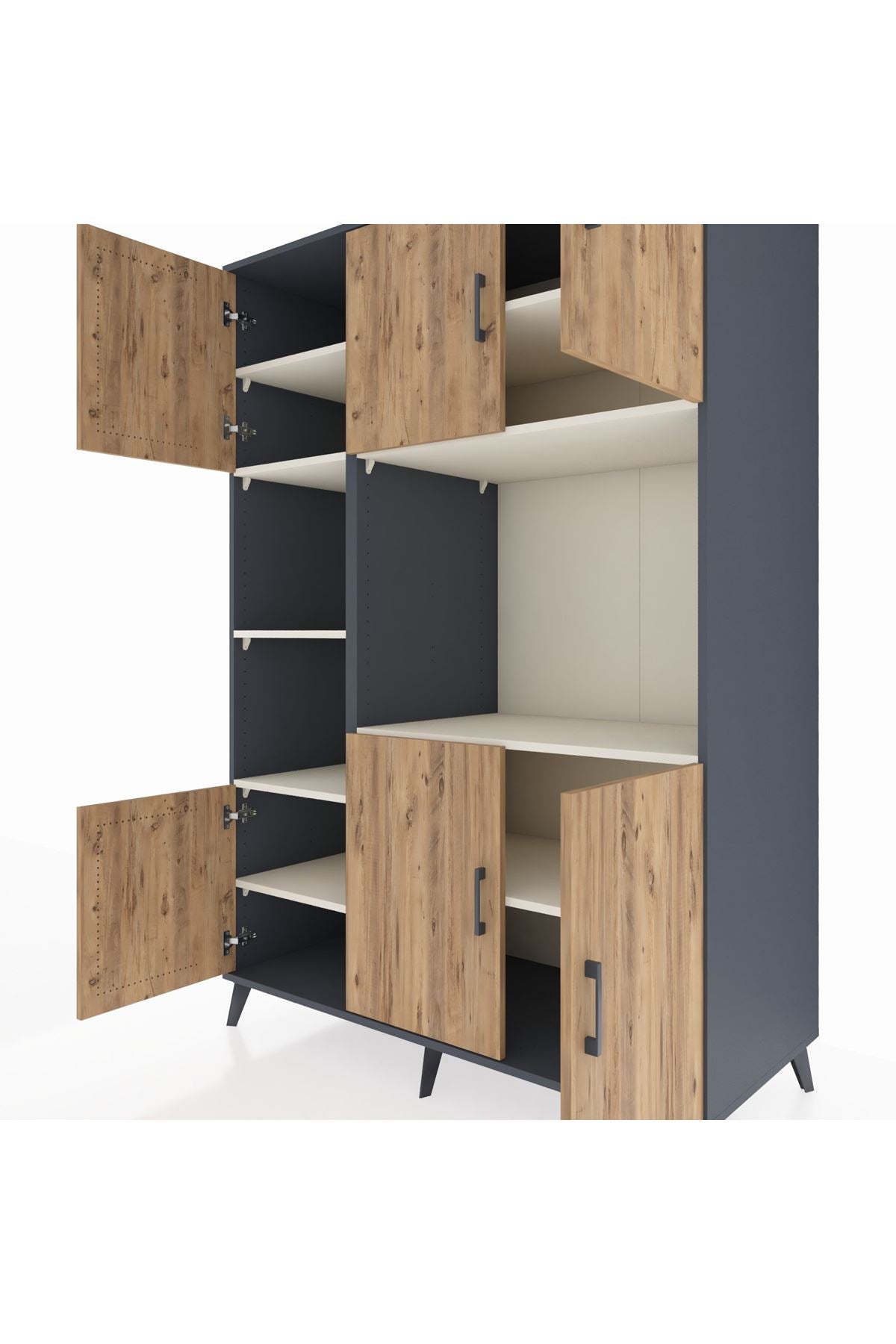 Kronos Dolap 9 Raflı 6 Kapaklı 132x59x195 Antrasit-Çam/Aytaşı