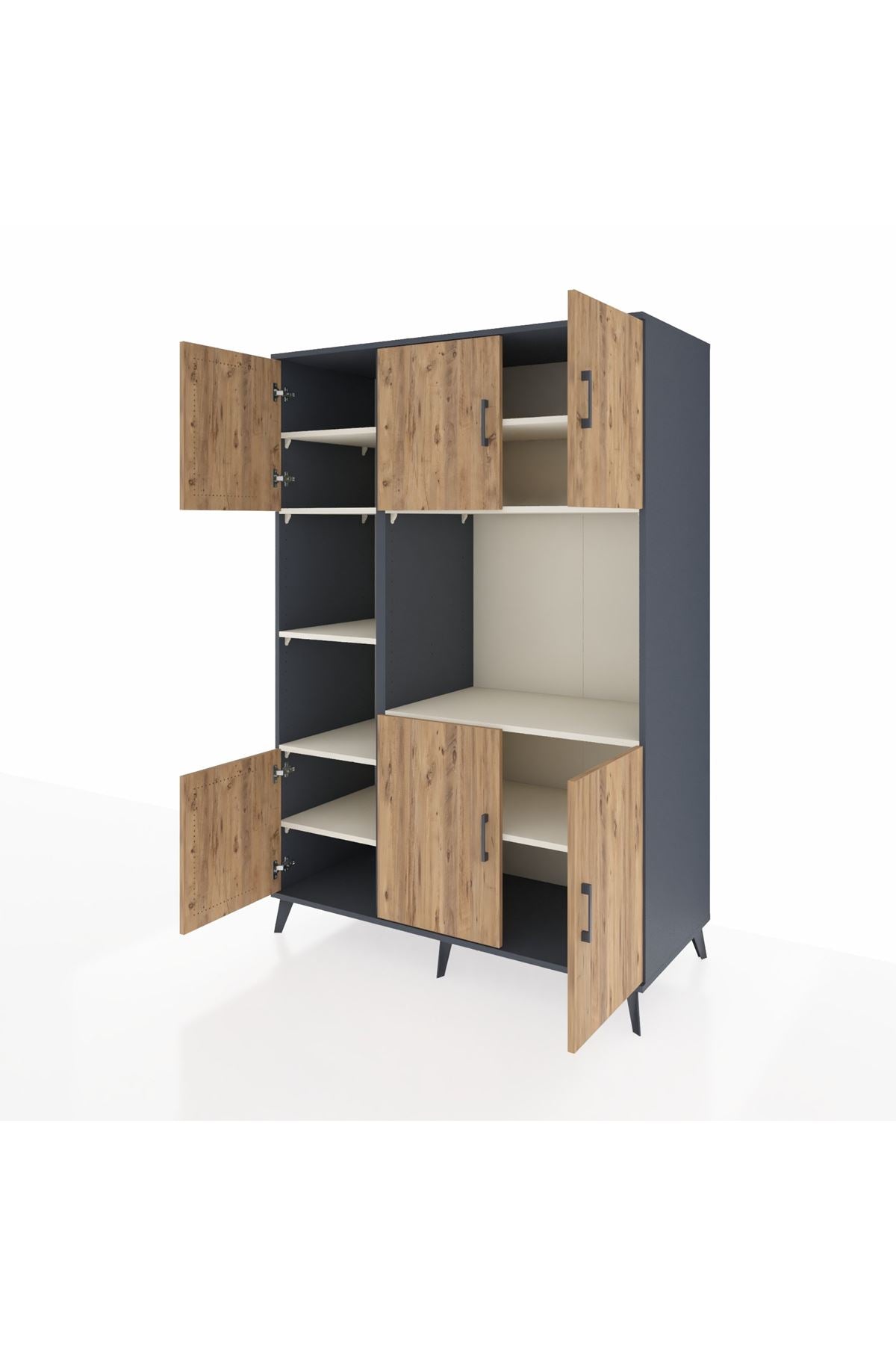 🌟 Kronos Dolap 9 Raflı 6 Kapaklı 132x59x195 Antrasit-Çam/Aytaşı