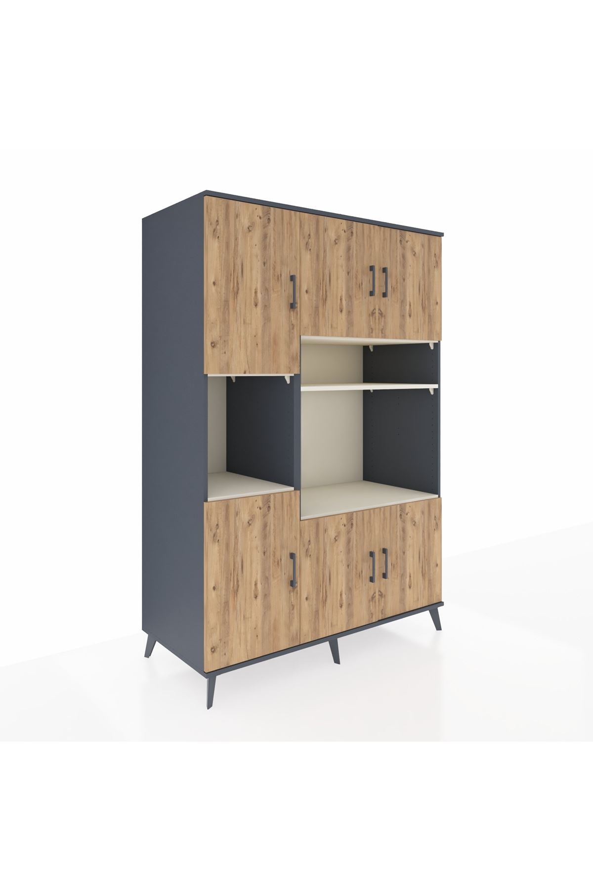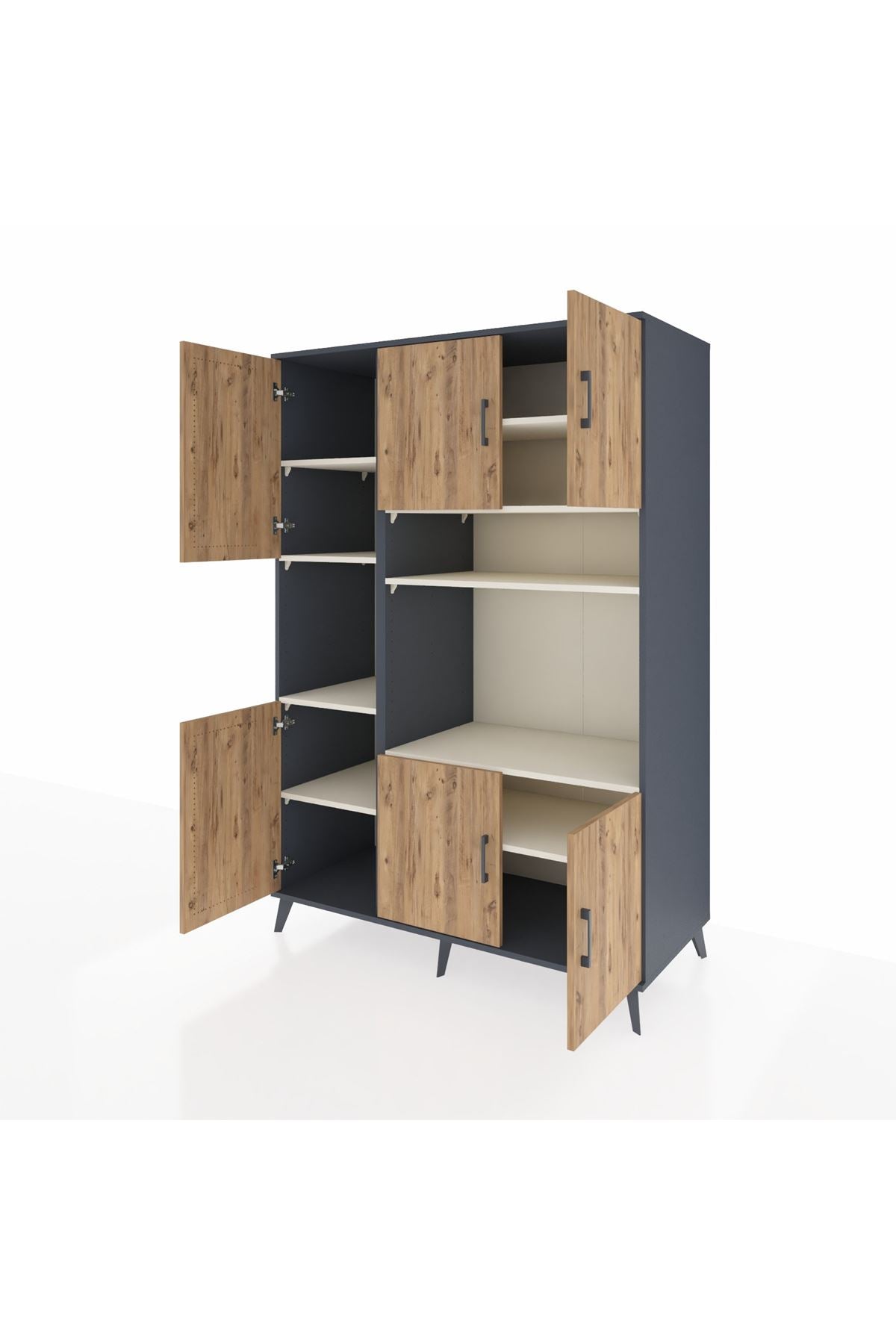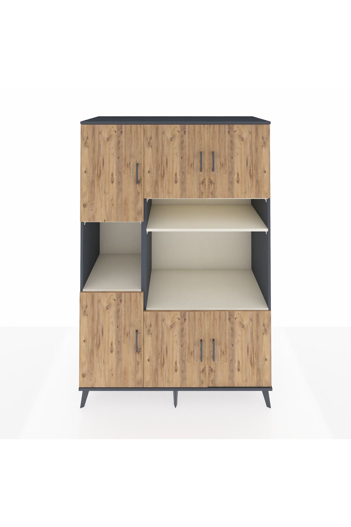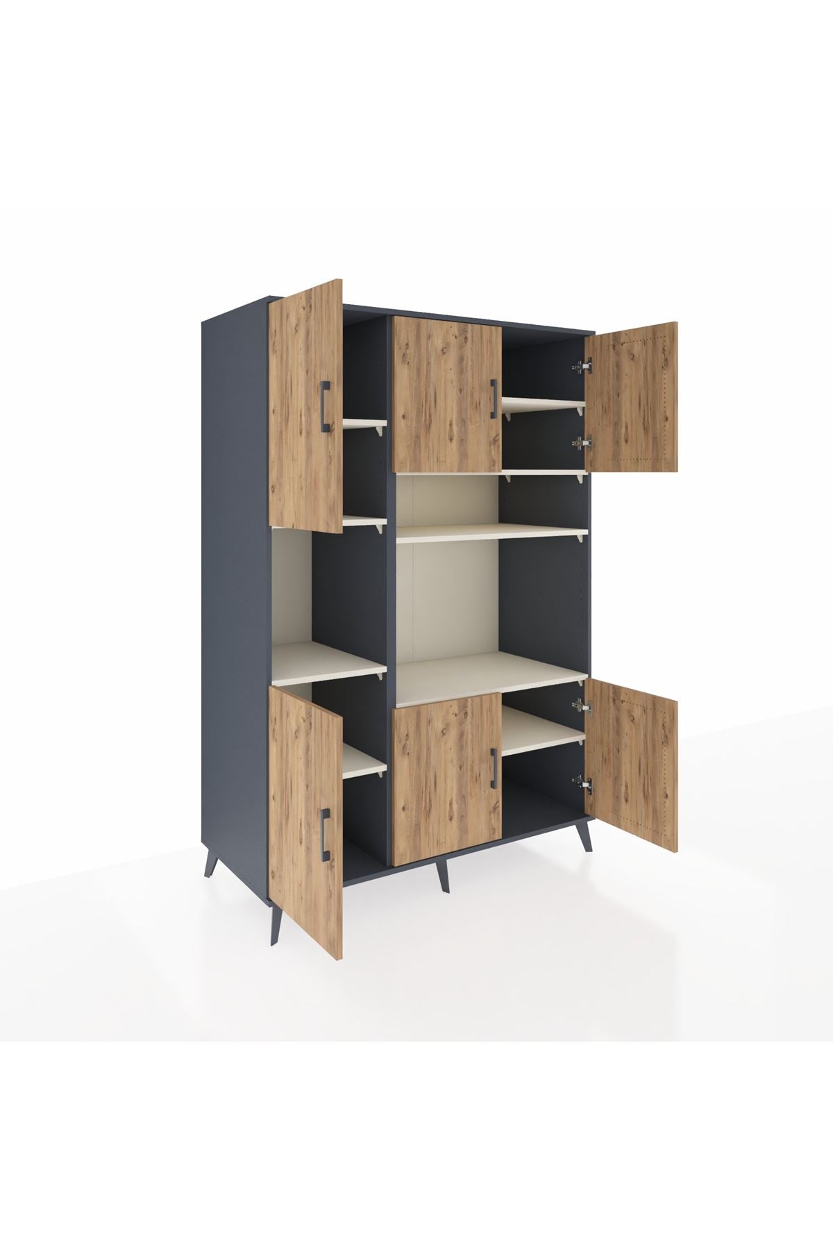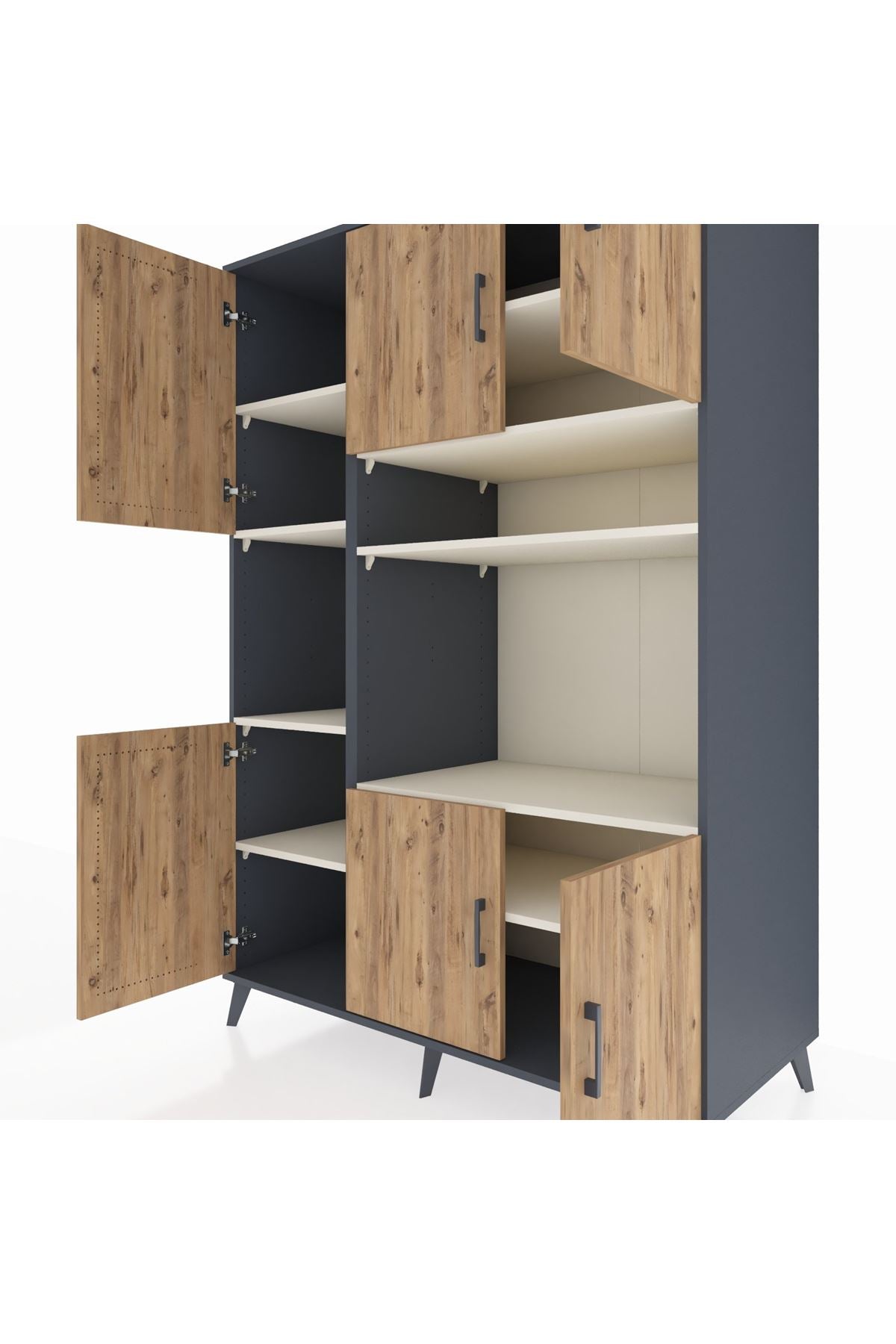 🕰️ Kronos Dolap 9 Raflı 6 Kapaklı 132x59x195 Antrasit-Çam/Aytaşı