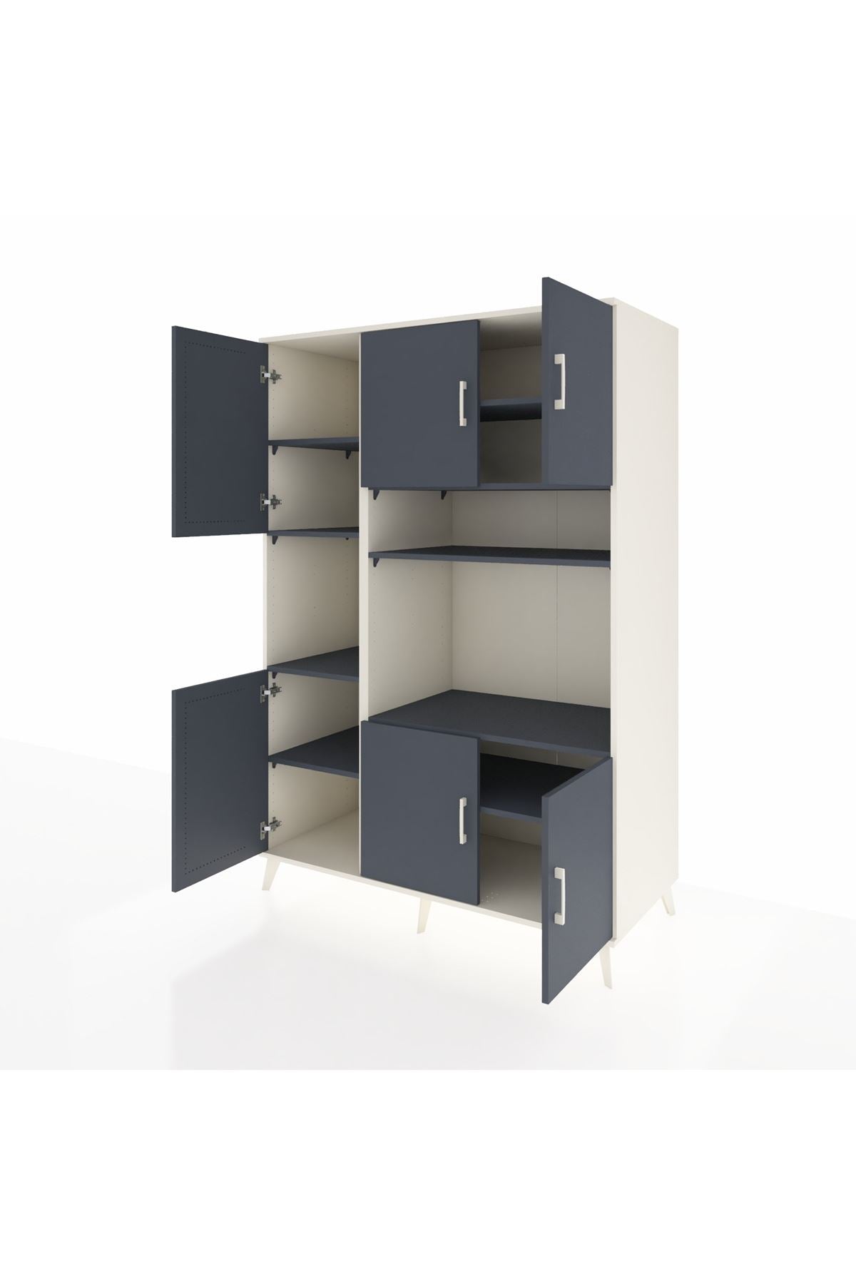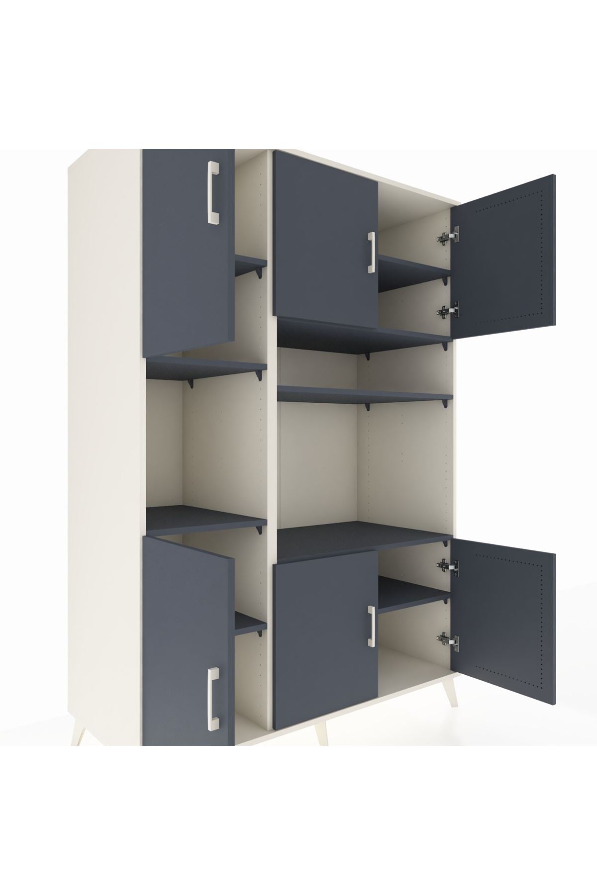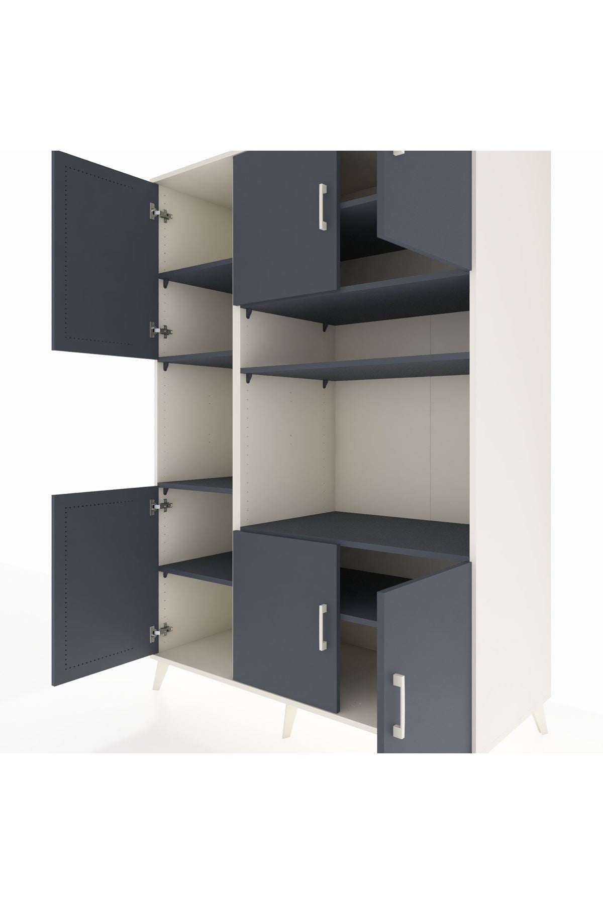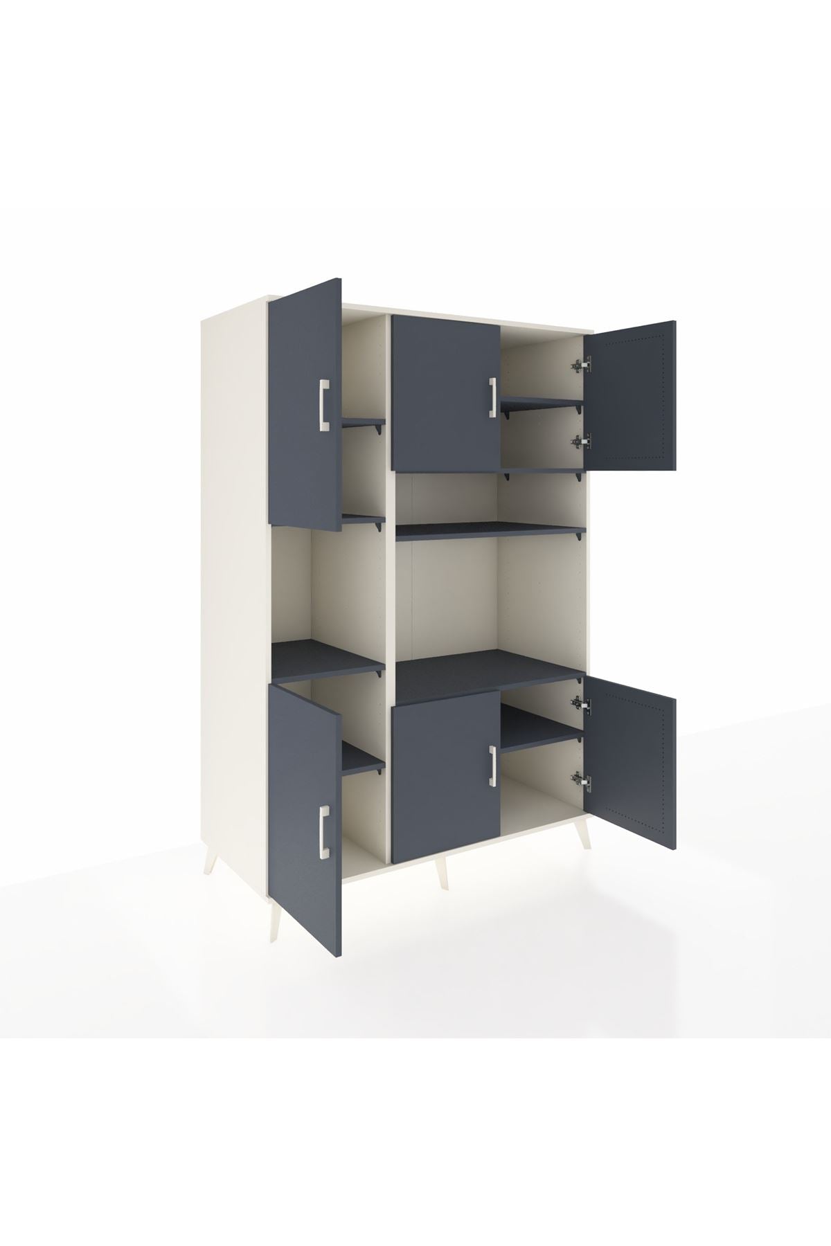 🪐 Kronos Dolap 9 Raflı 6 Kapaklı 132x59x195 Aytaşı-Antrasit/Antrasit