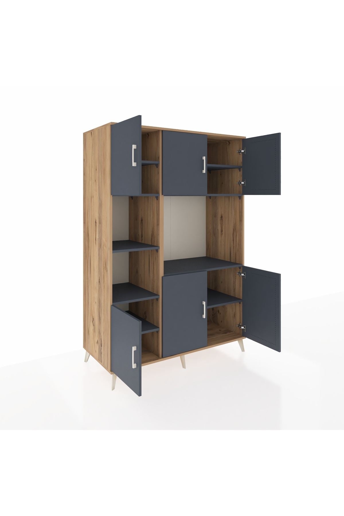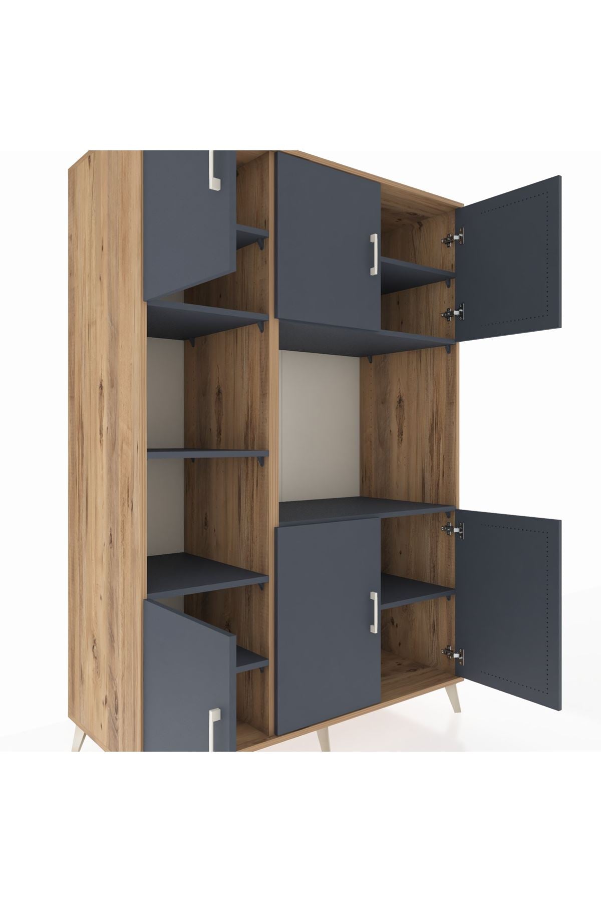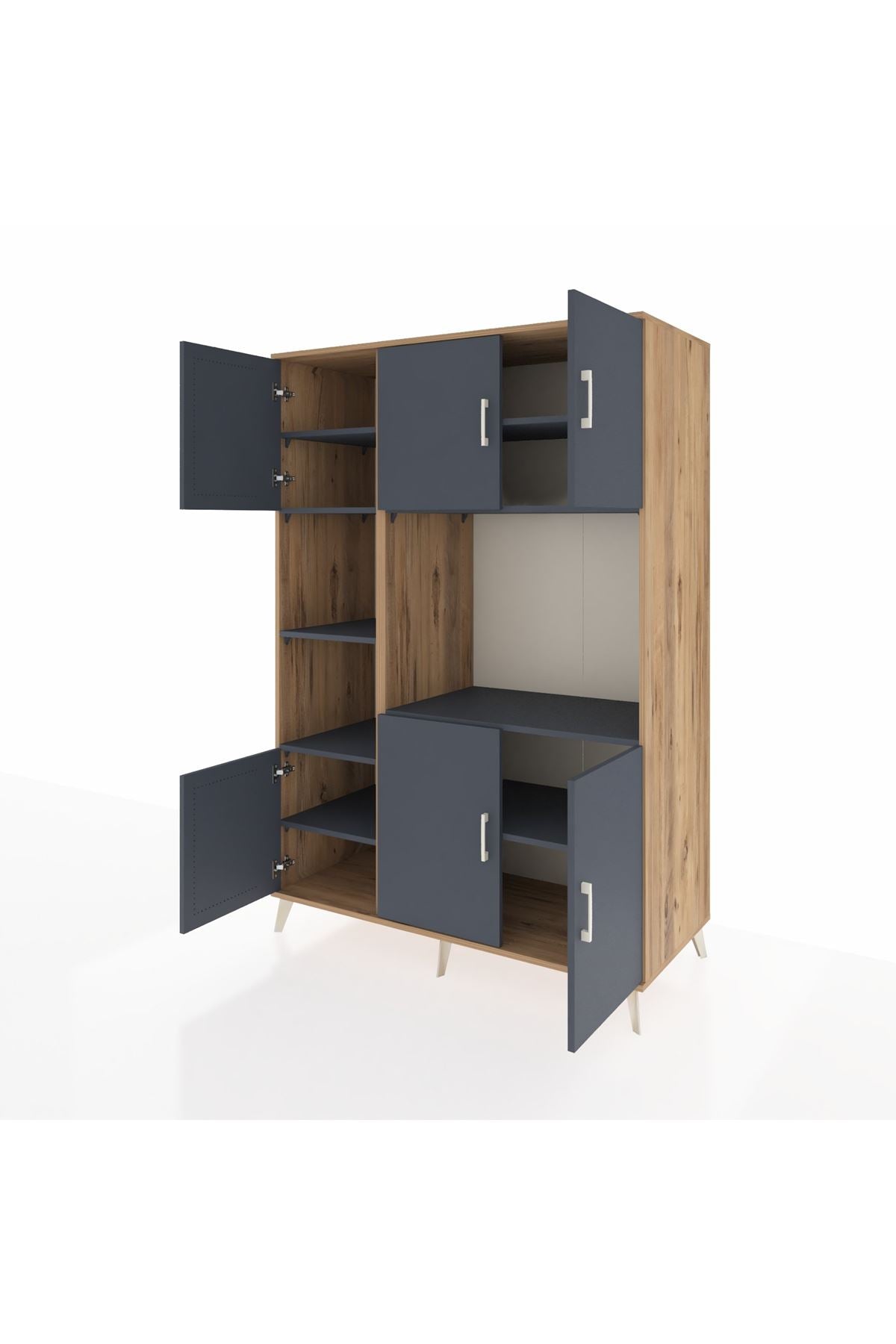 Kronos Dolap 9 Raflı 6 Kapaklı 132x59x195 Çam-Antrasit/Antrasit